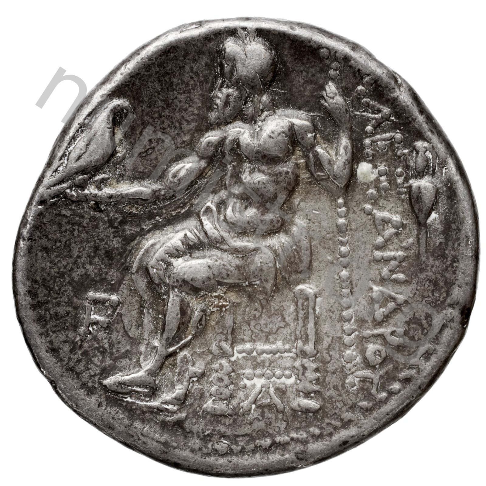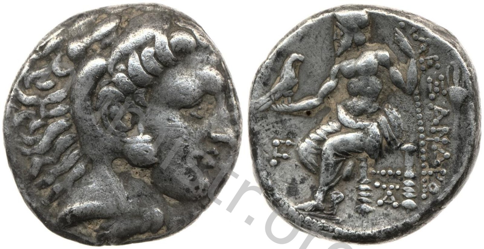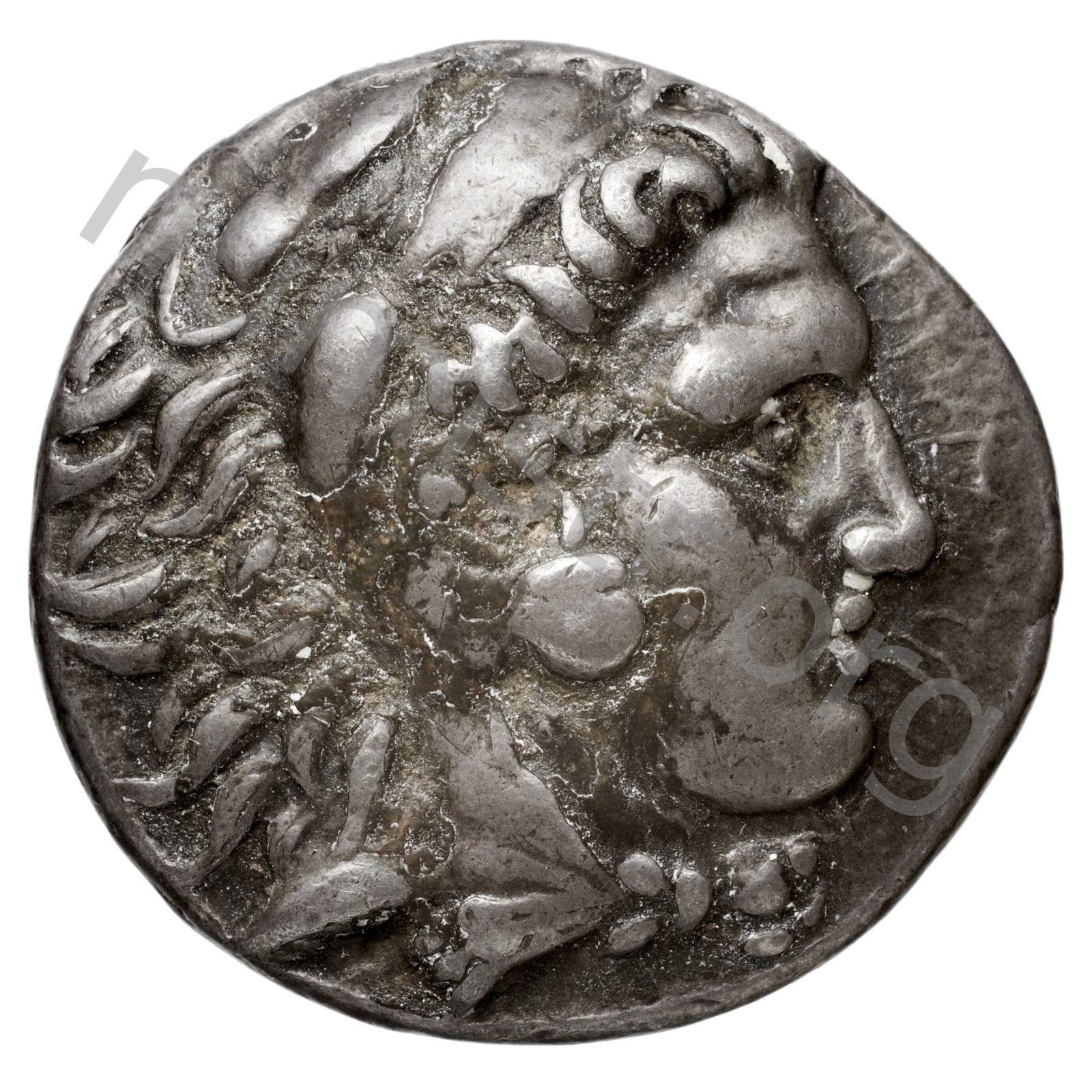 Head of beardless Heracles right wearing lion skin headdress -[en]