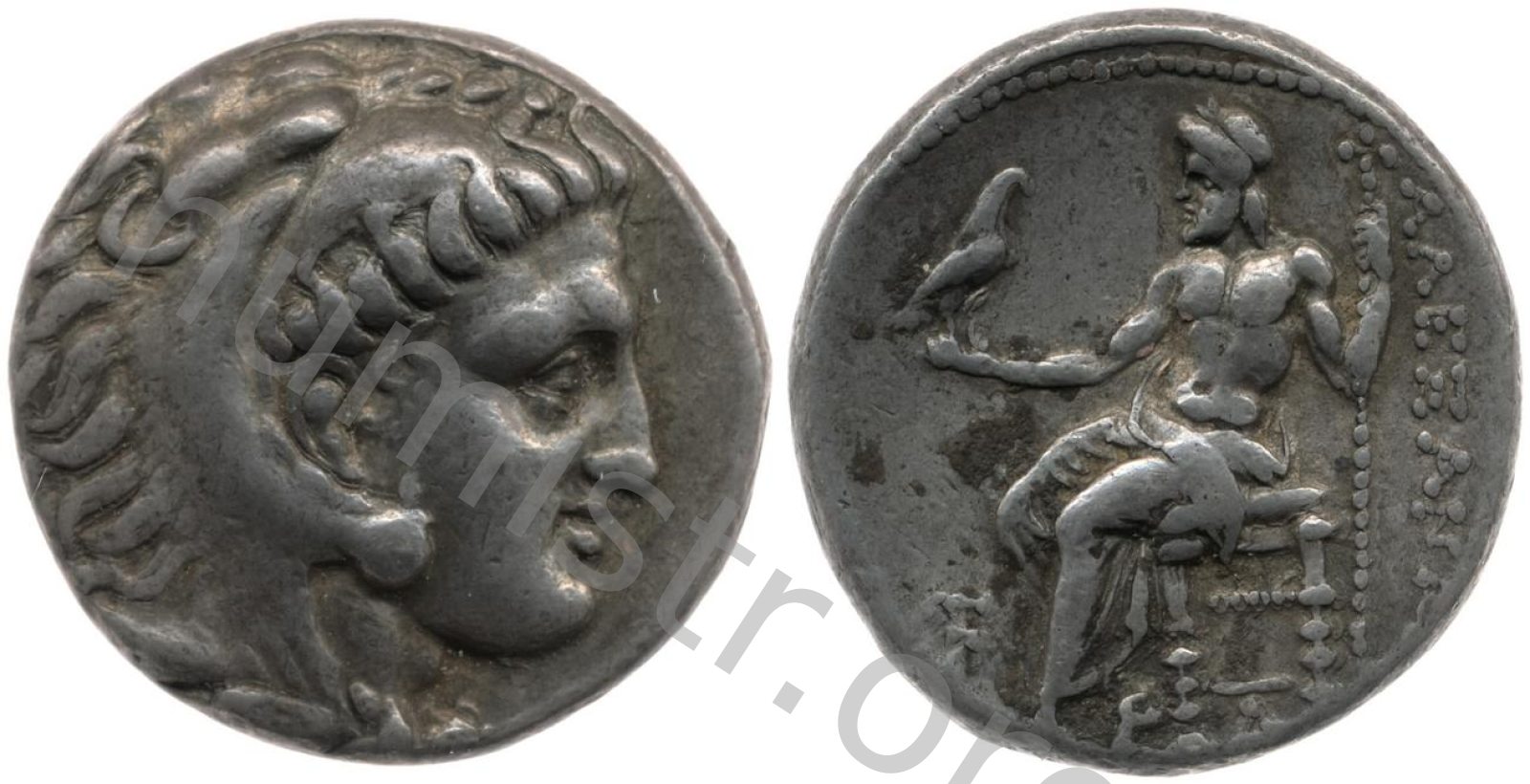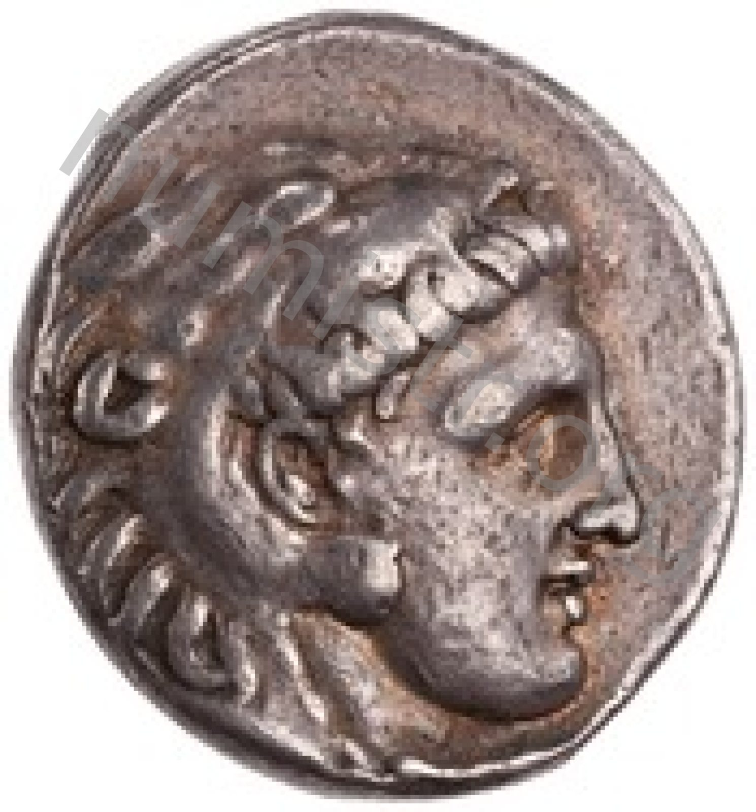 Head of beardless Heracles right wearing lion skin headdress -[en]