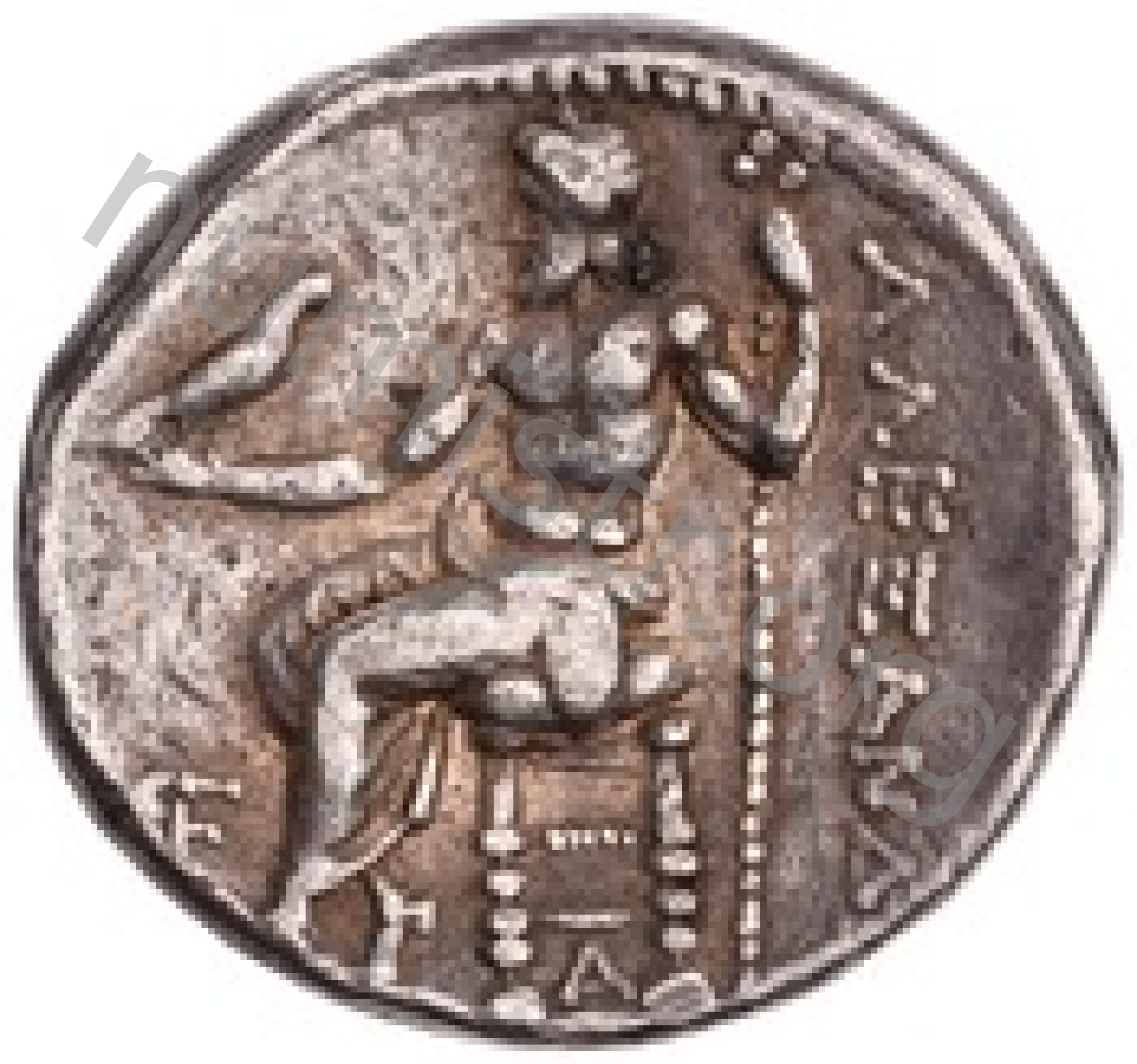 Zeus tabure-tahtta oturuyor sol elinde kartal sağ elinde asa var.