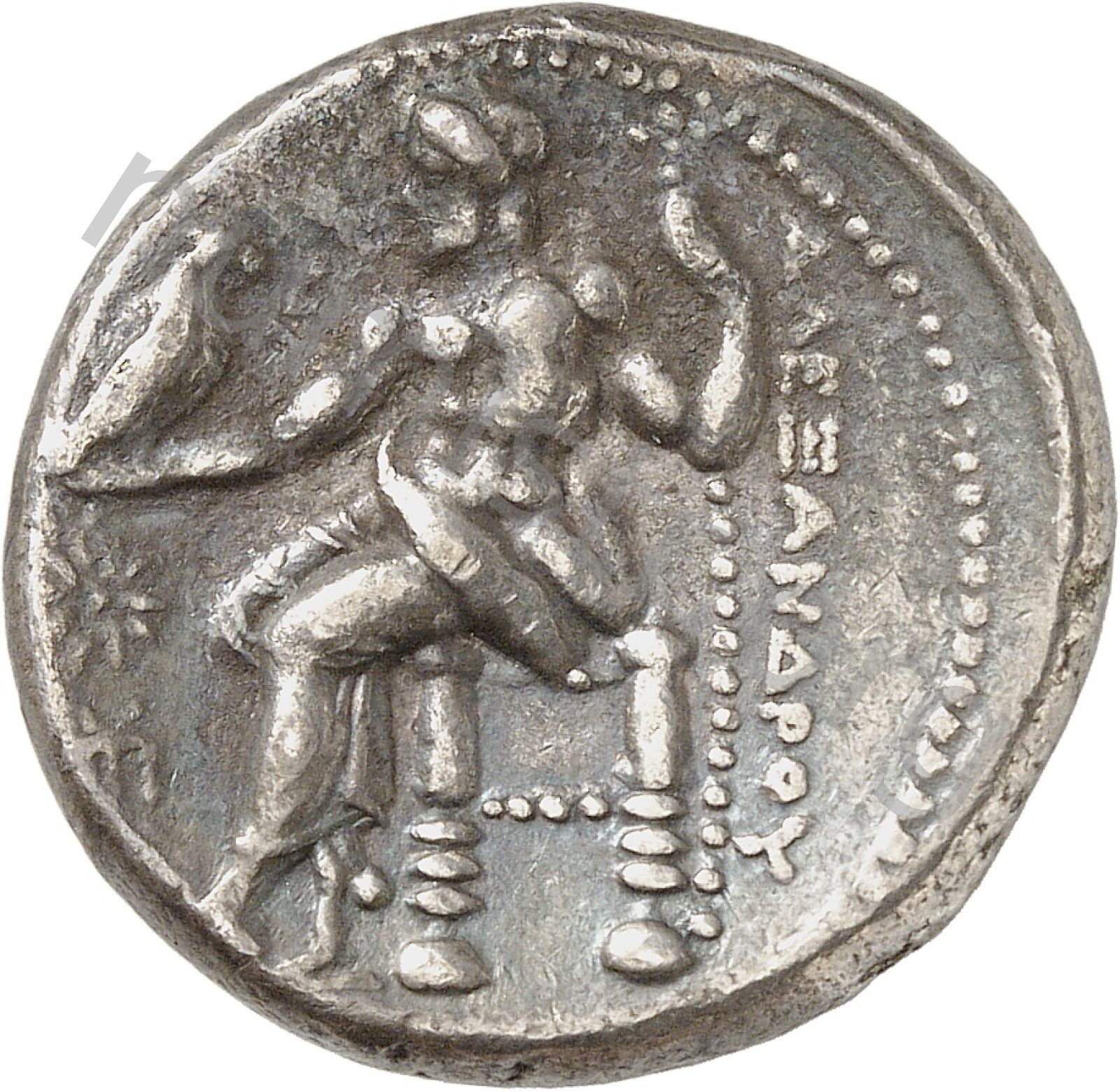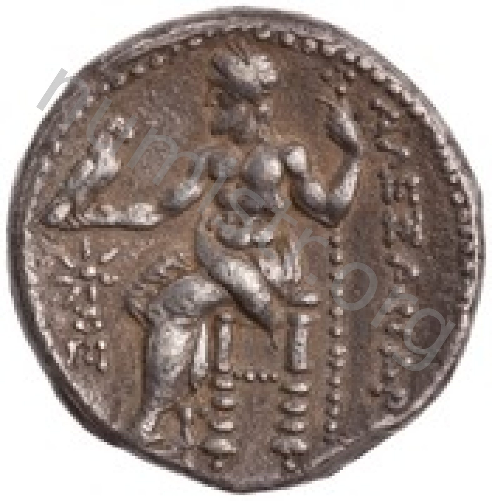 Zeus seated on stool-throne left eagle on outstretched right hand sceptre in left hand -[en]