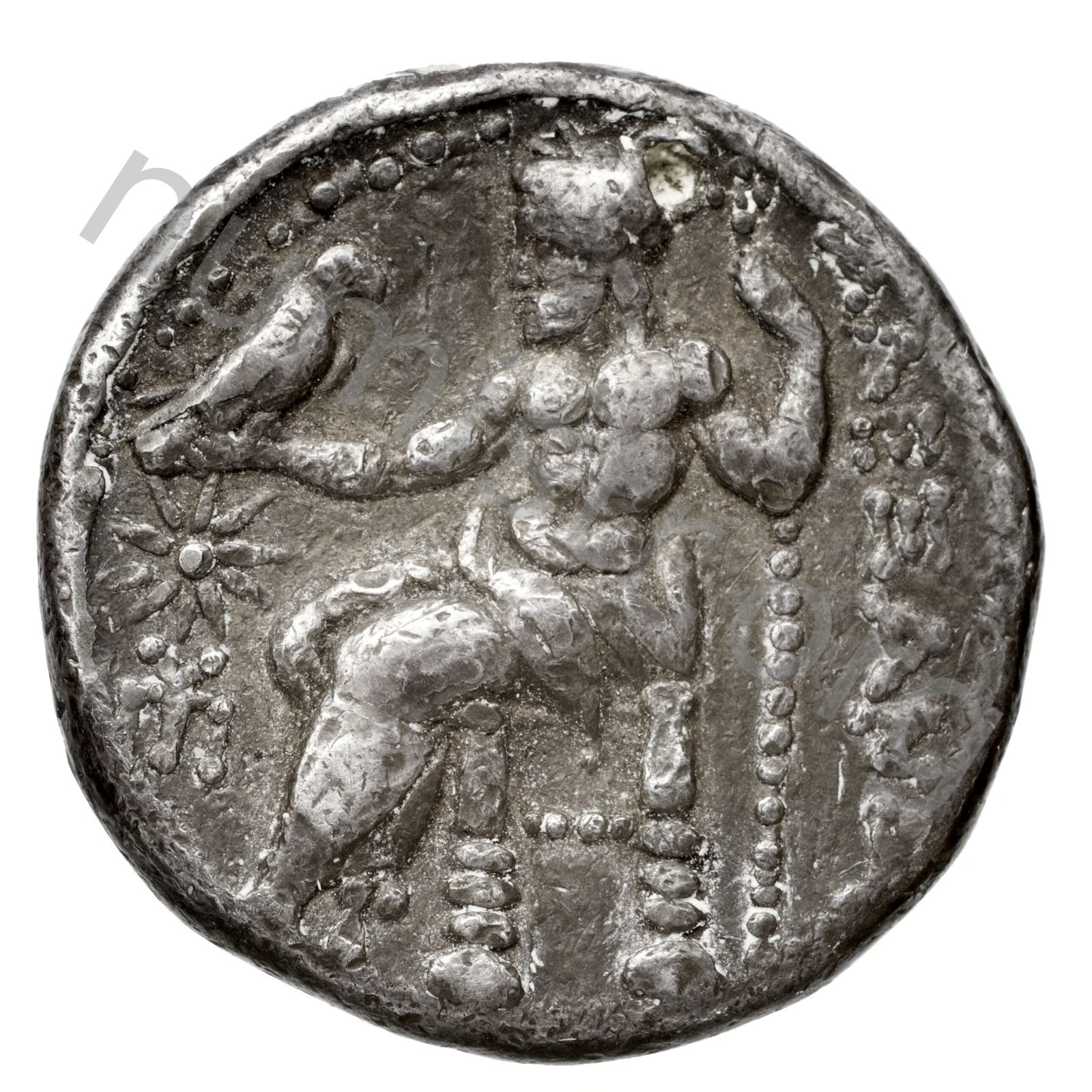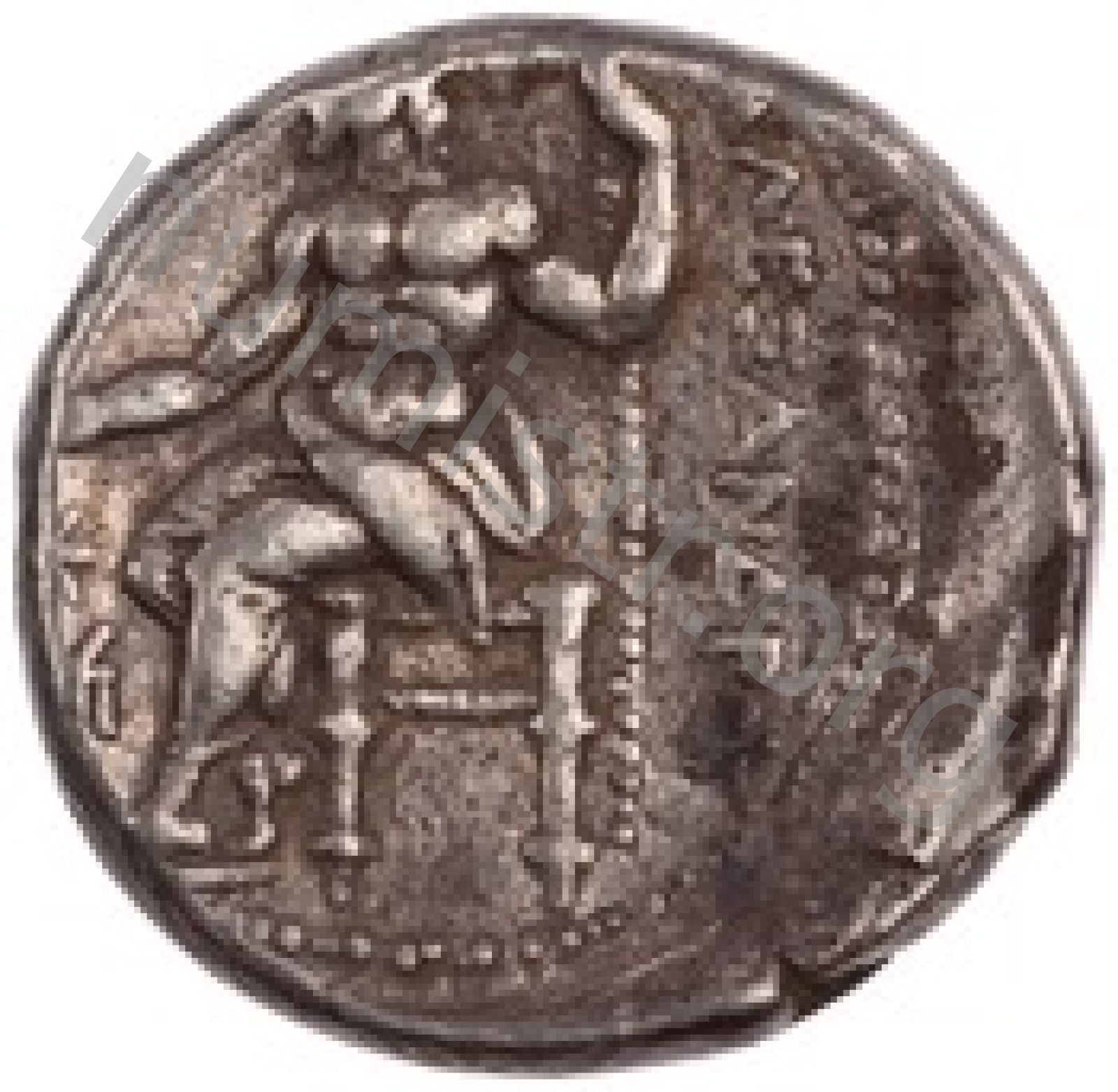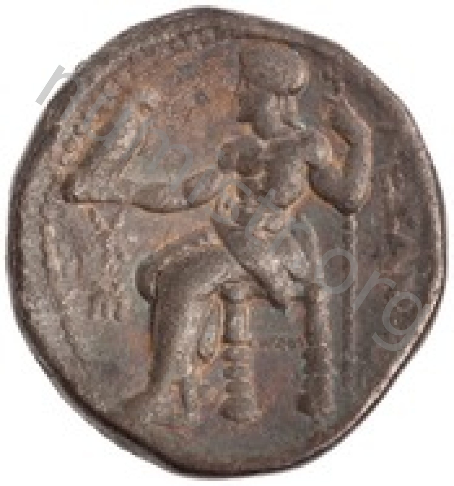 Zeus tabure-tahtta oturuyor sol elinde kartal sağ elinde asa var.