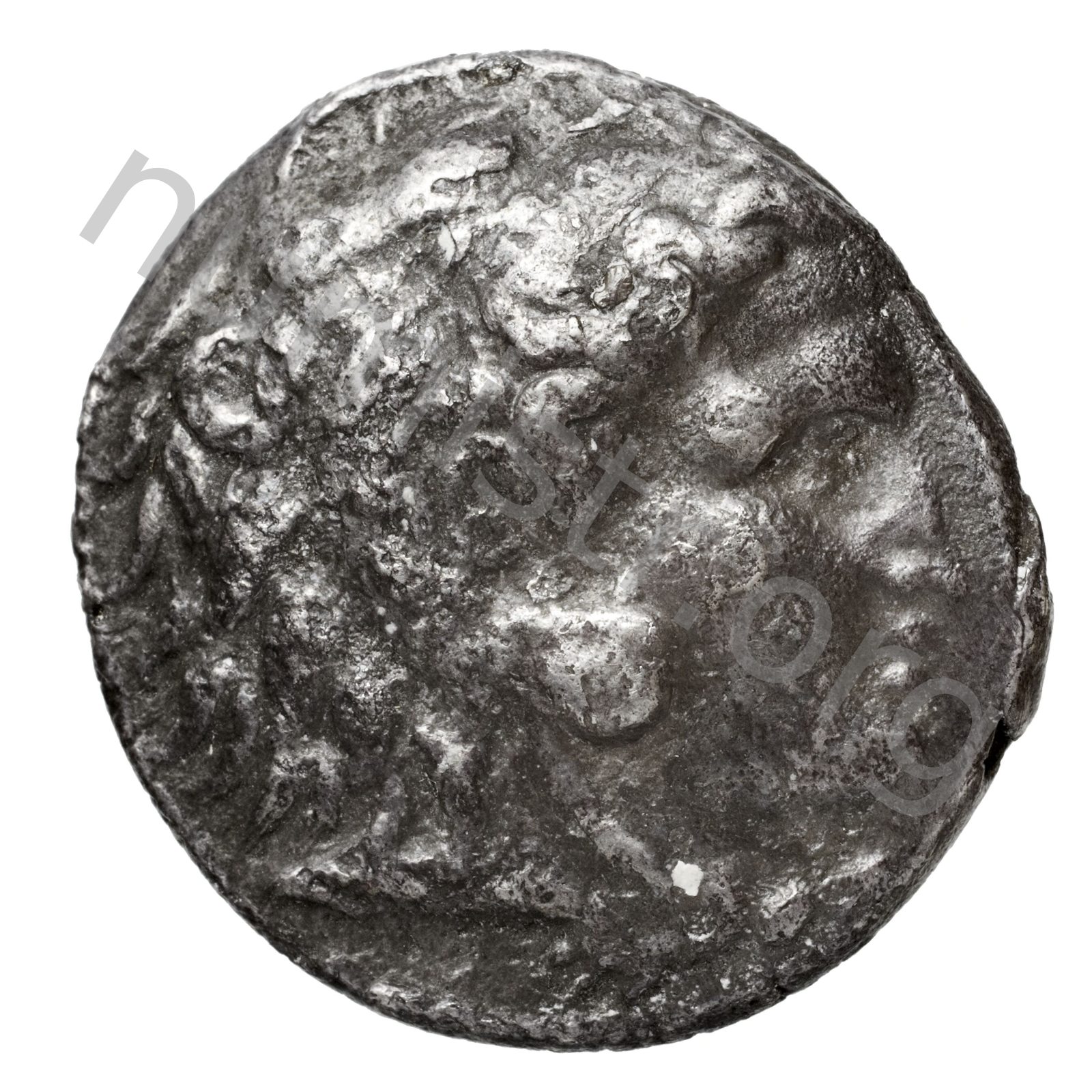 Head of beardless Heracles right wearing lion skin headdress -[en]