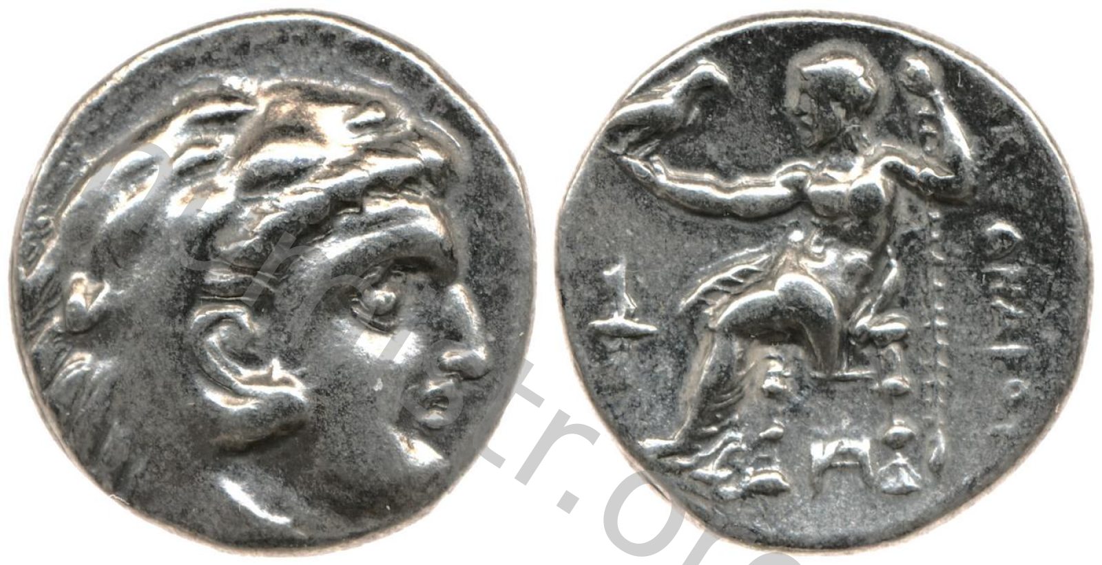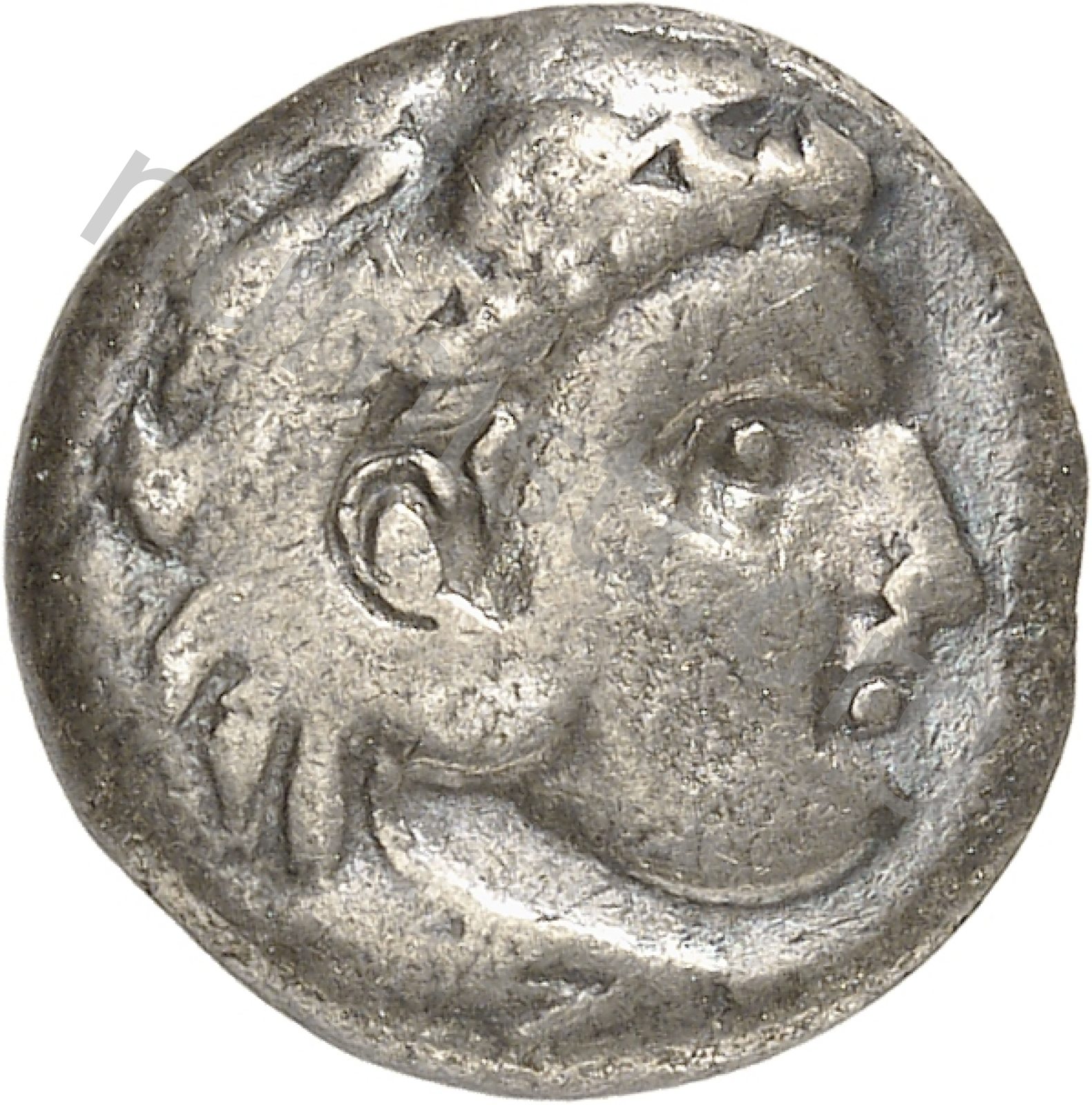 Head of beardless Heracles right wearing lion skin headdress -[en]