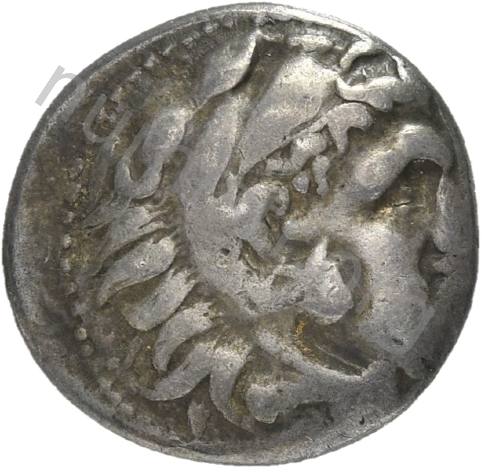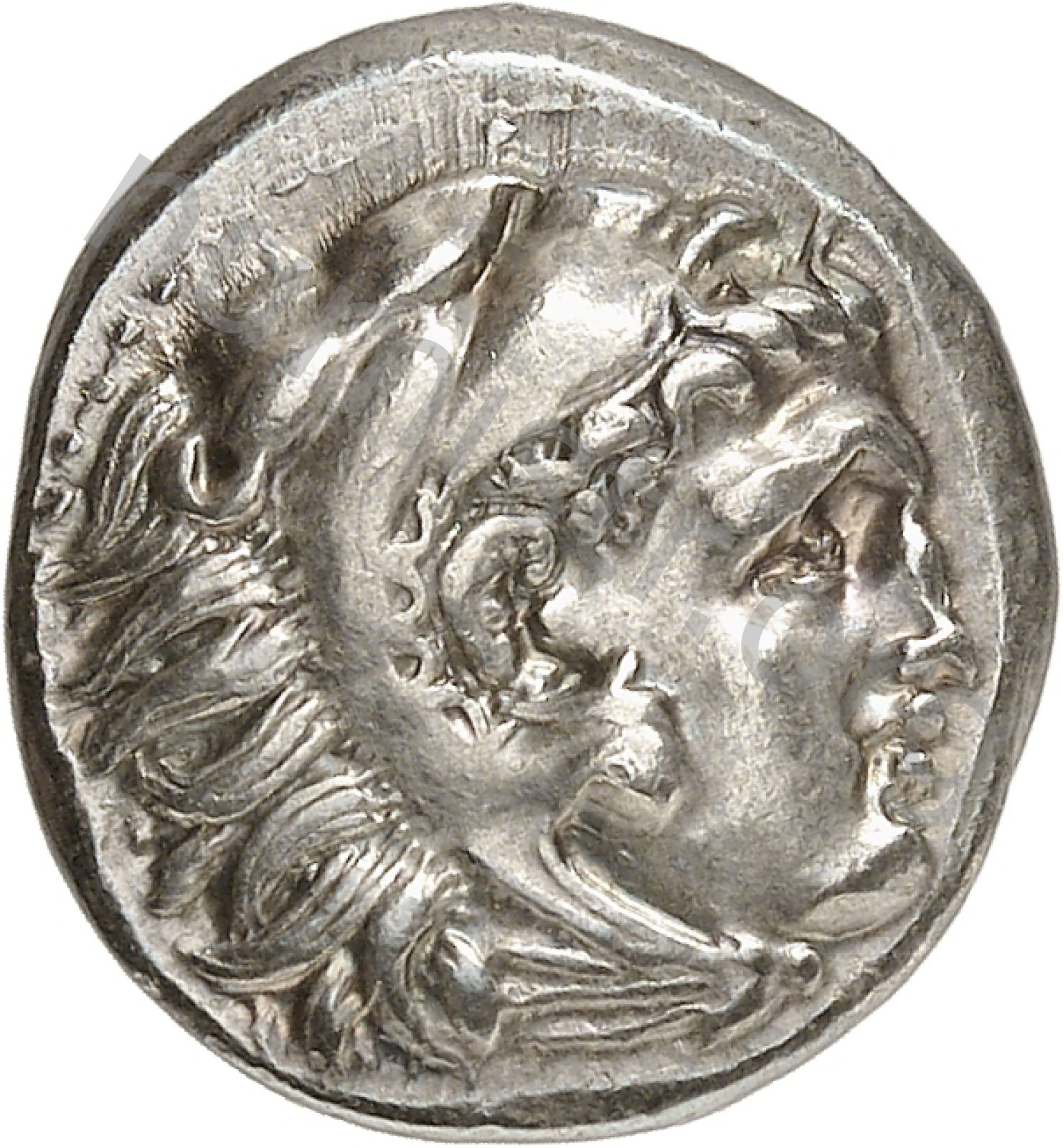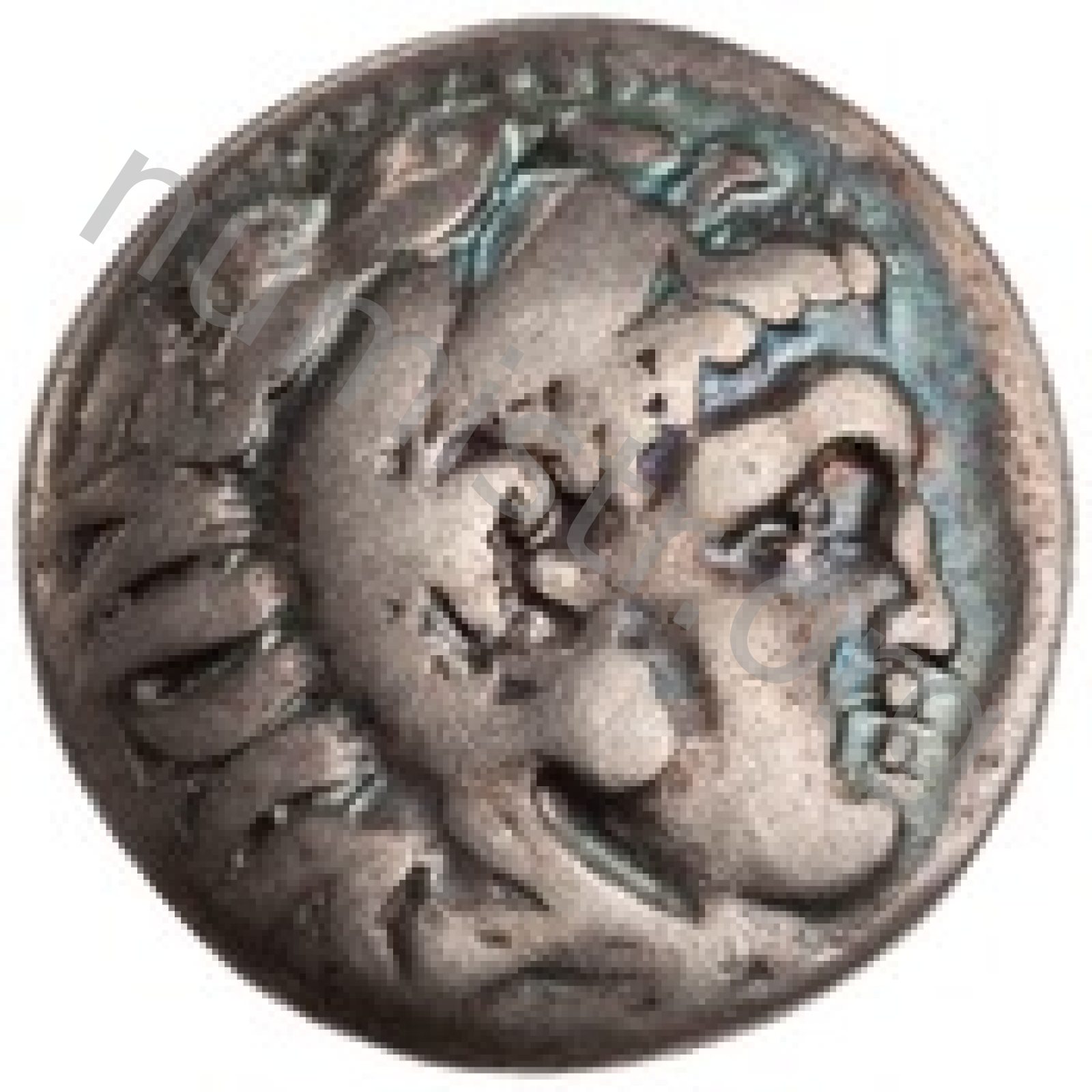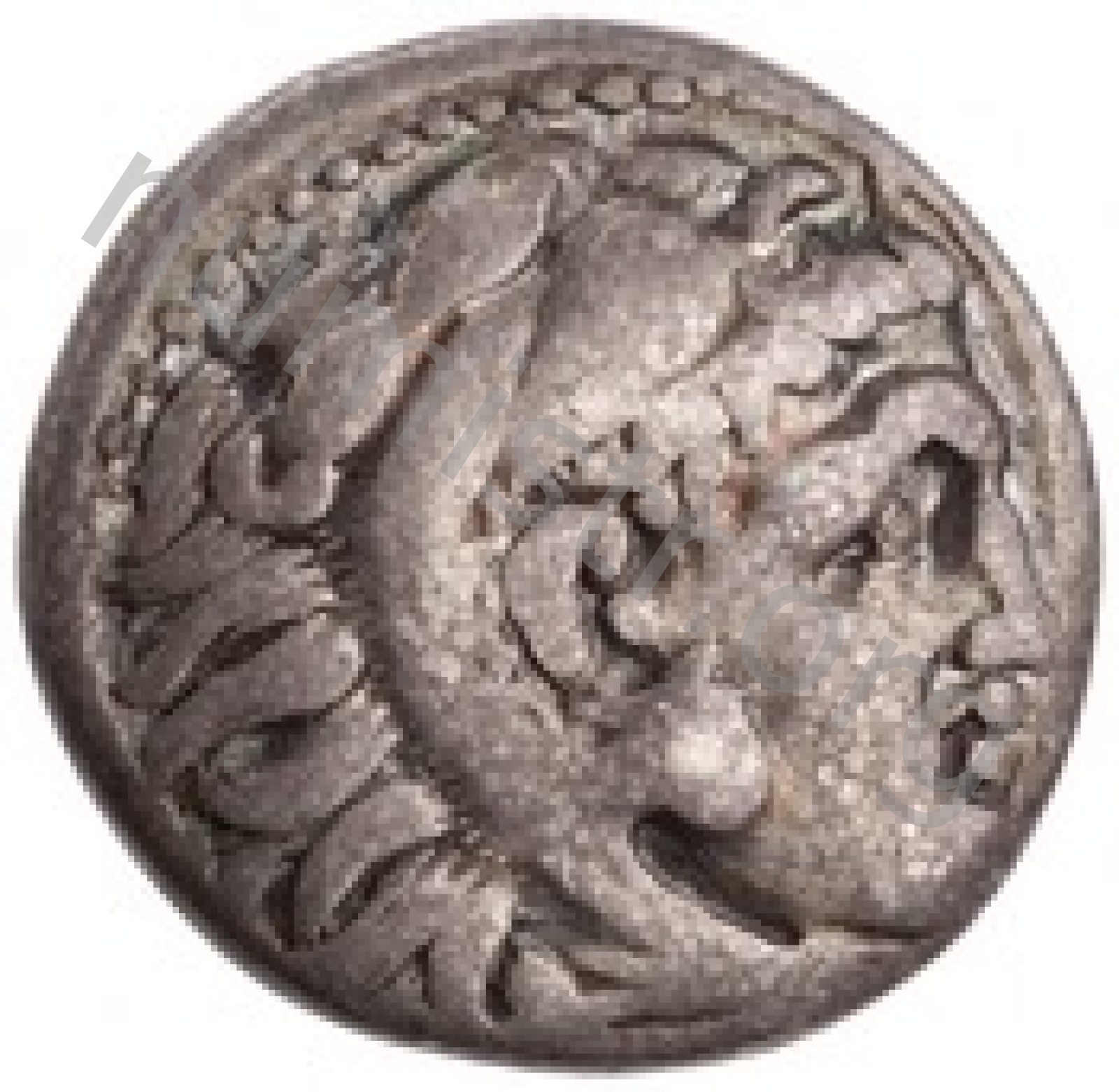 Head of beardless Heracles right wearing lion skin headdress -[en]
