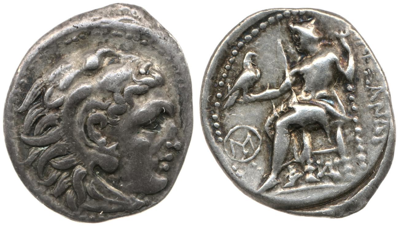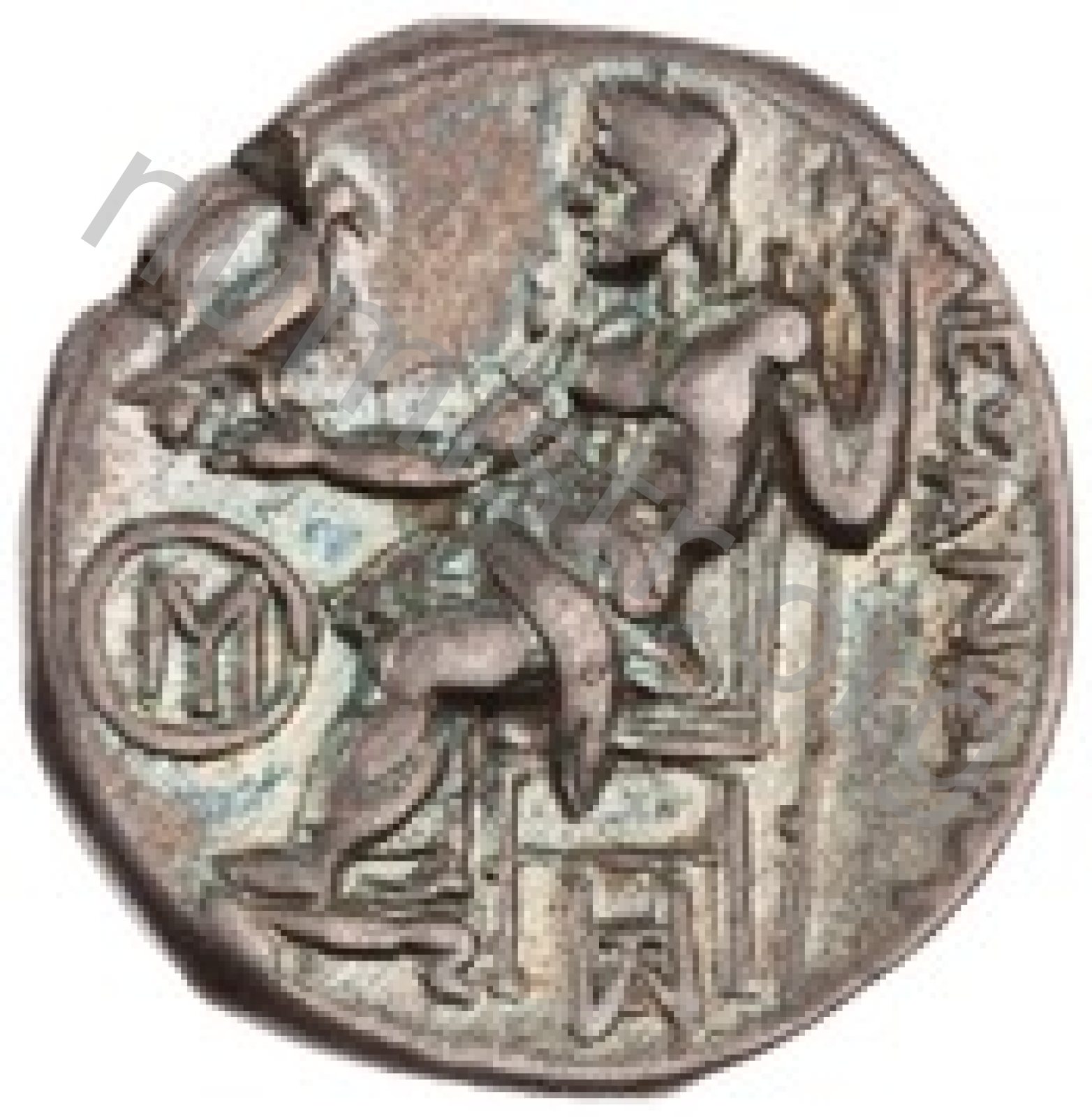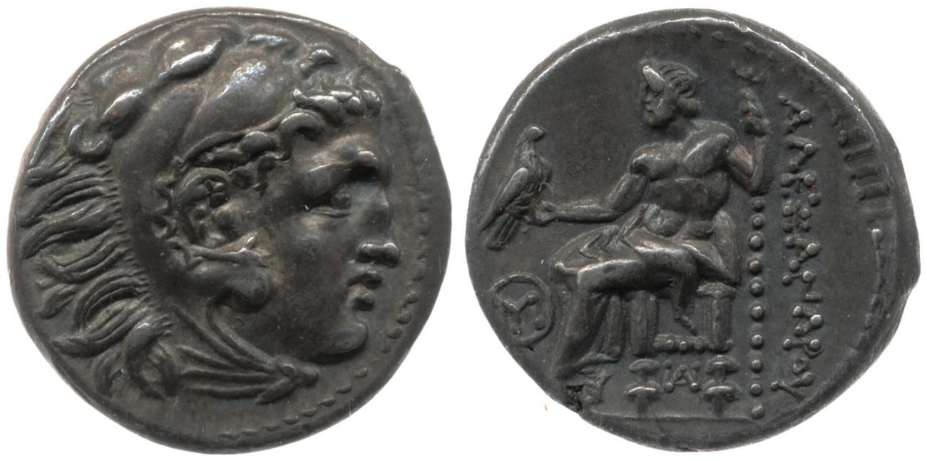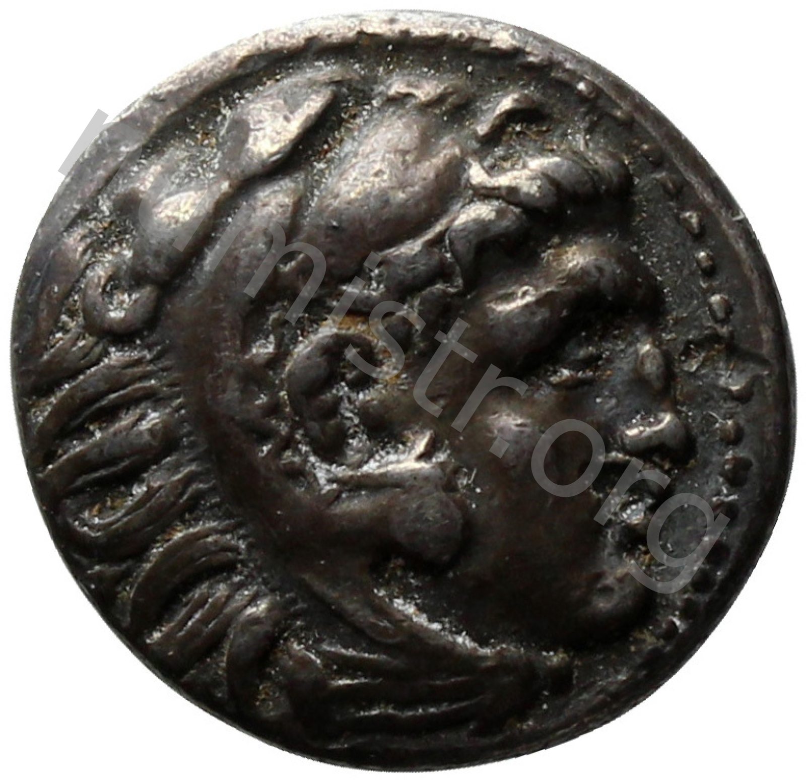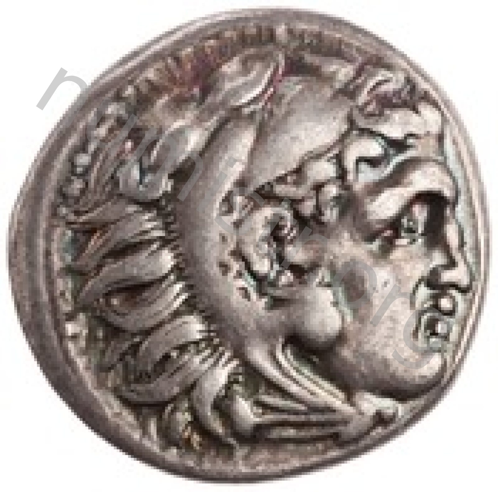 Head of beardless Heracles right wearing lion skin headdress -[en]
