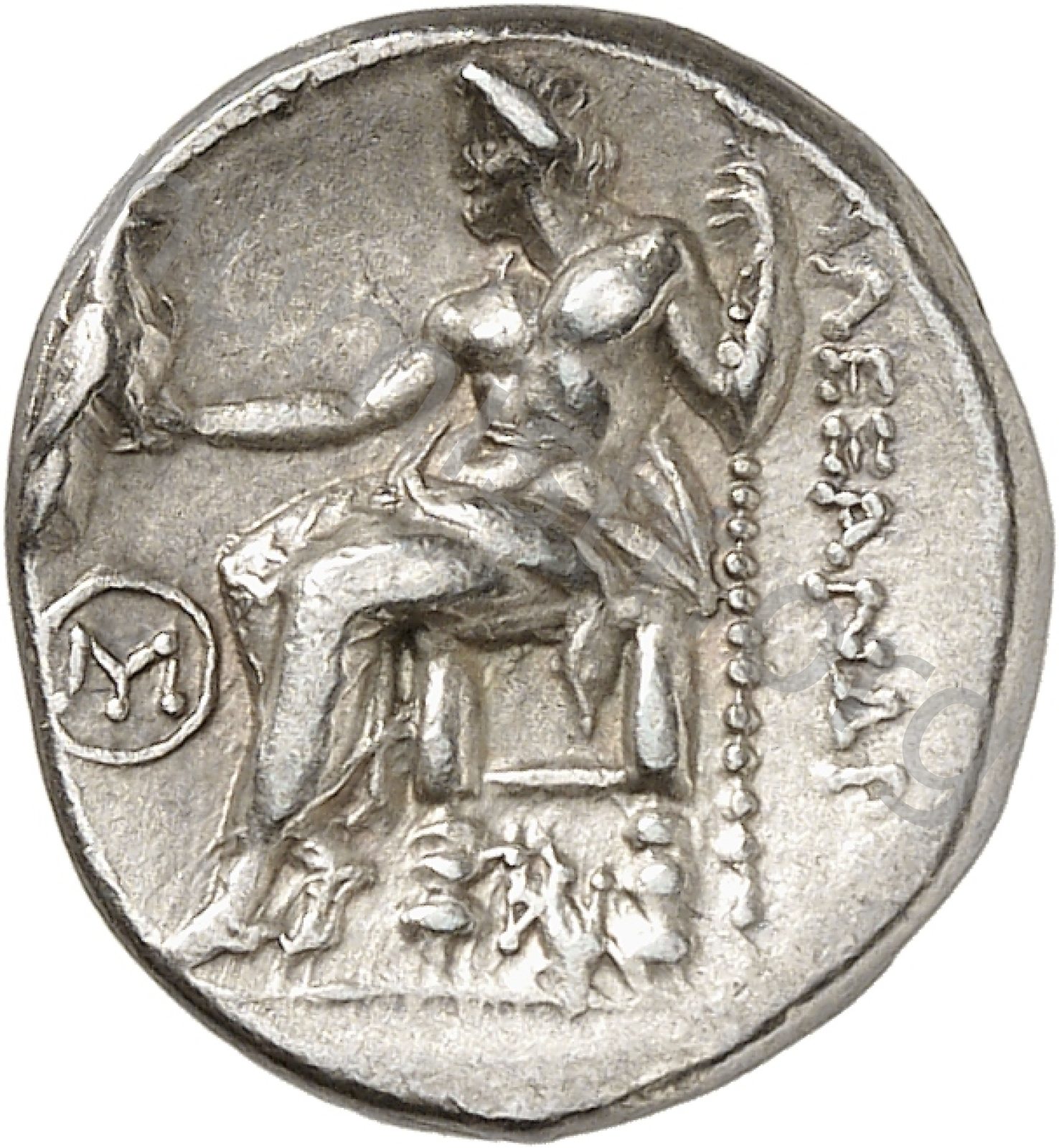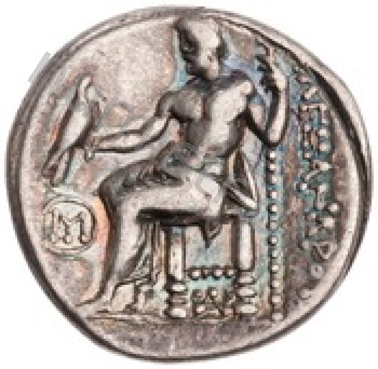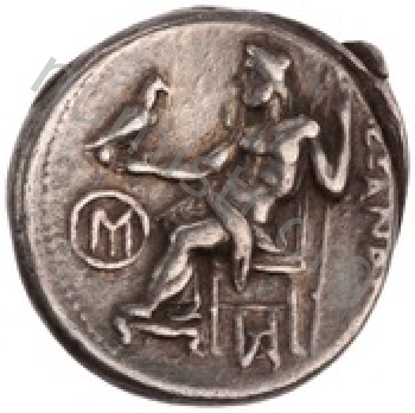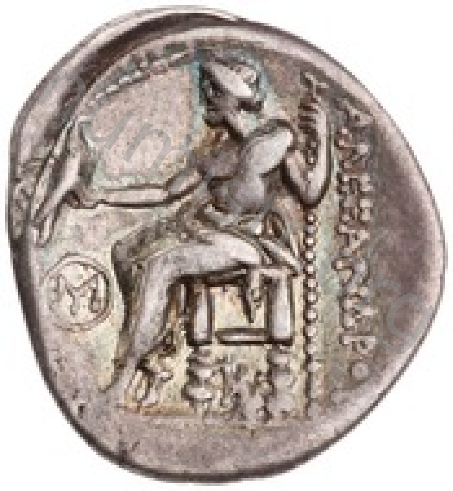 Zeus tabure-tahtta oturuyor sol elinde kartal sağ elinde asa var.