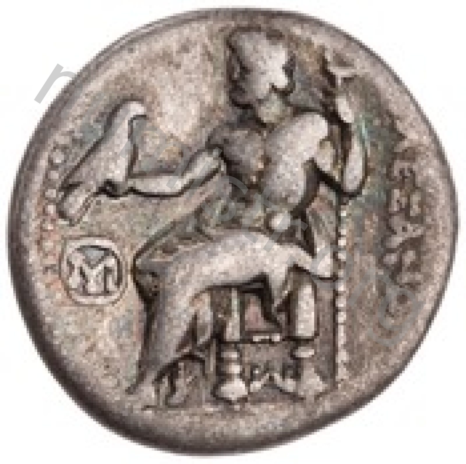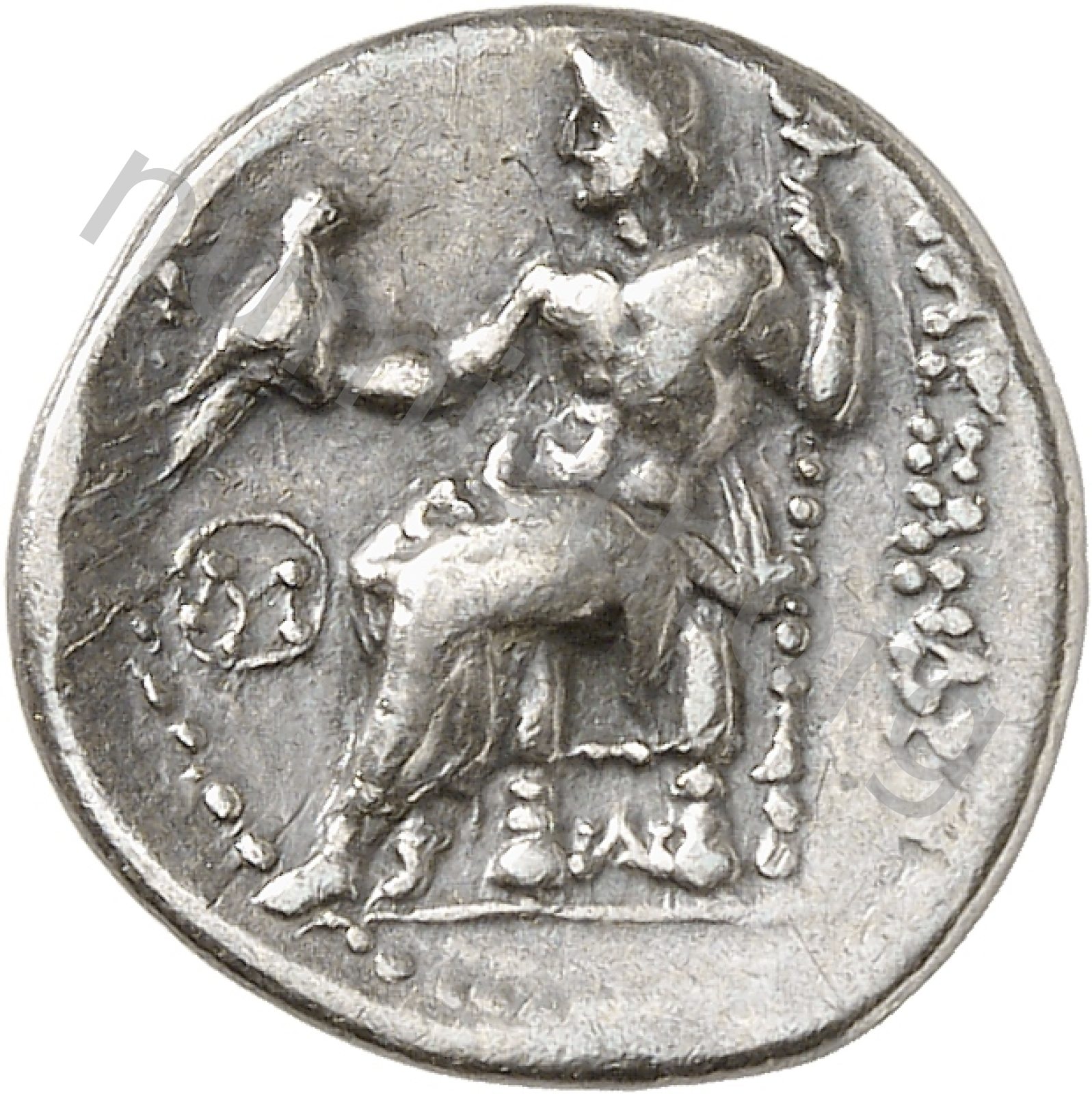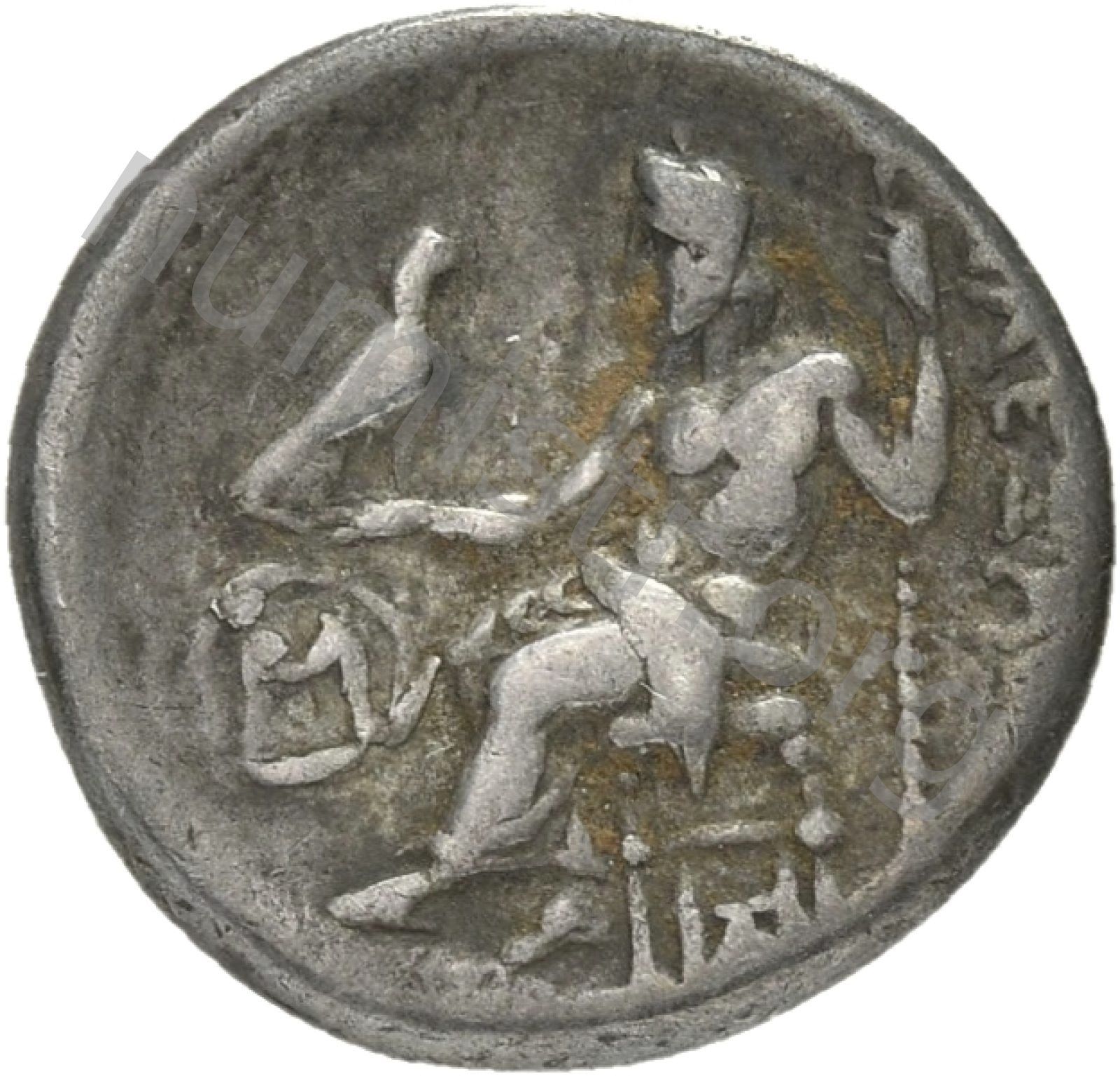 Zeus seated on stool-throne left eagle on outstretched right hand sceptre in left hand -[en]