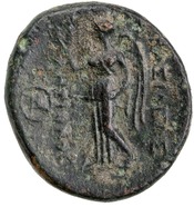 Nike standing left holding wreath and palm branch -[en]