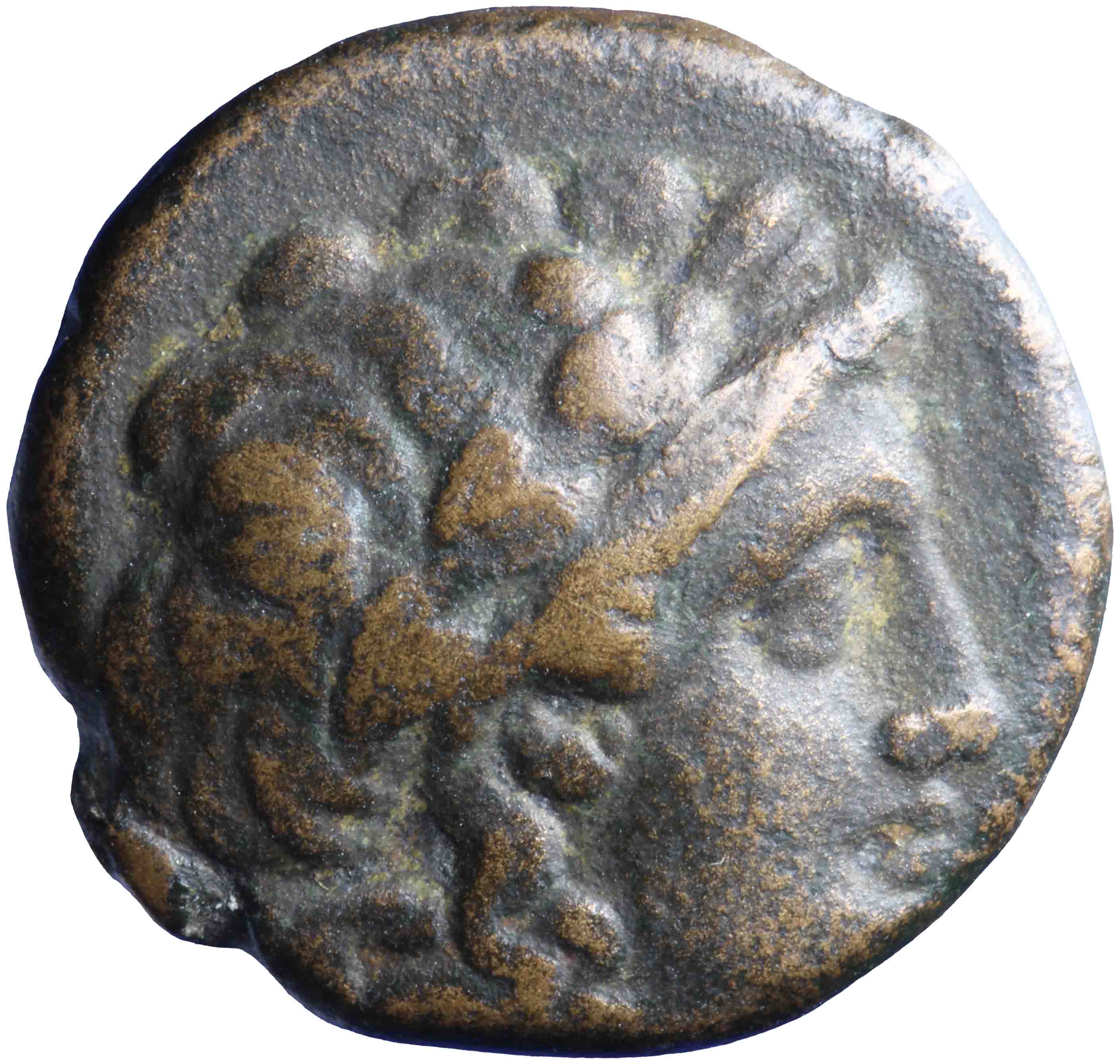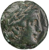 Kısa saçlı sağa bakan defne başlı Apollon heykeli
