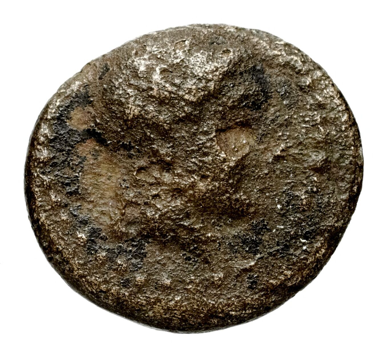 Laureate head of Apollo right with wavy locks or loose spiral curls -[en]