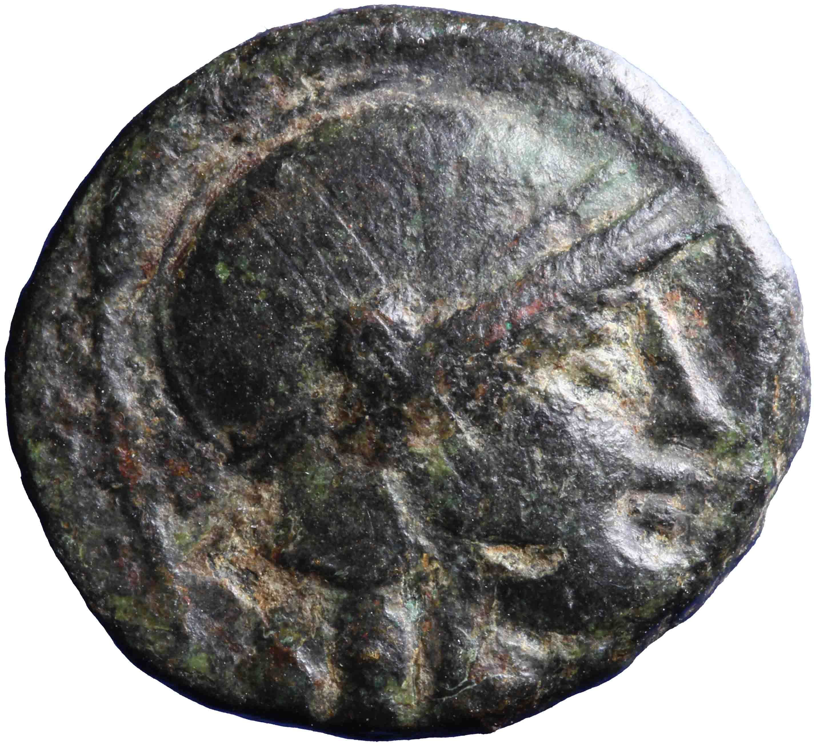 Head of Athena right in crested Attic helmet -[en]
