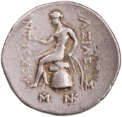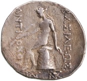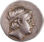 Sağda Antiochus Hierax'ın (ya da Antiochus II'nin?) diademli başı