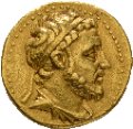 Sağda Achaeus'un taçlı ve örtülü büstü