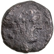 Apollon'un defne taçlı başı sağa doğru kıvrılmış buklelerle