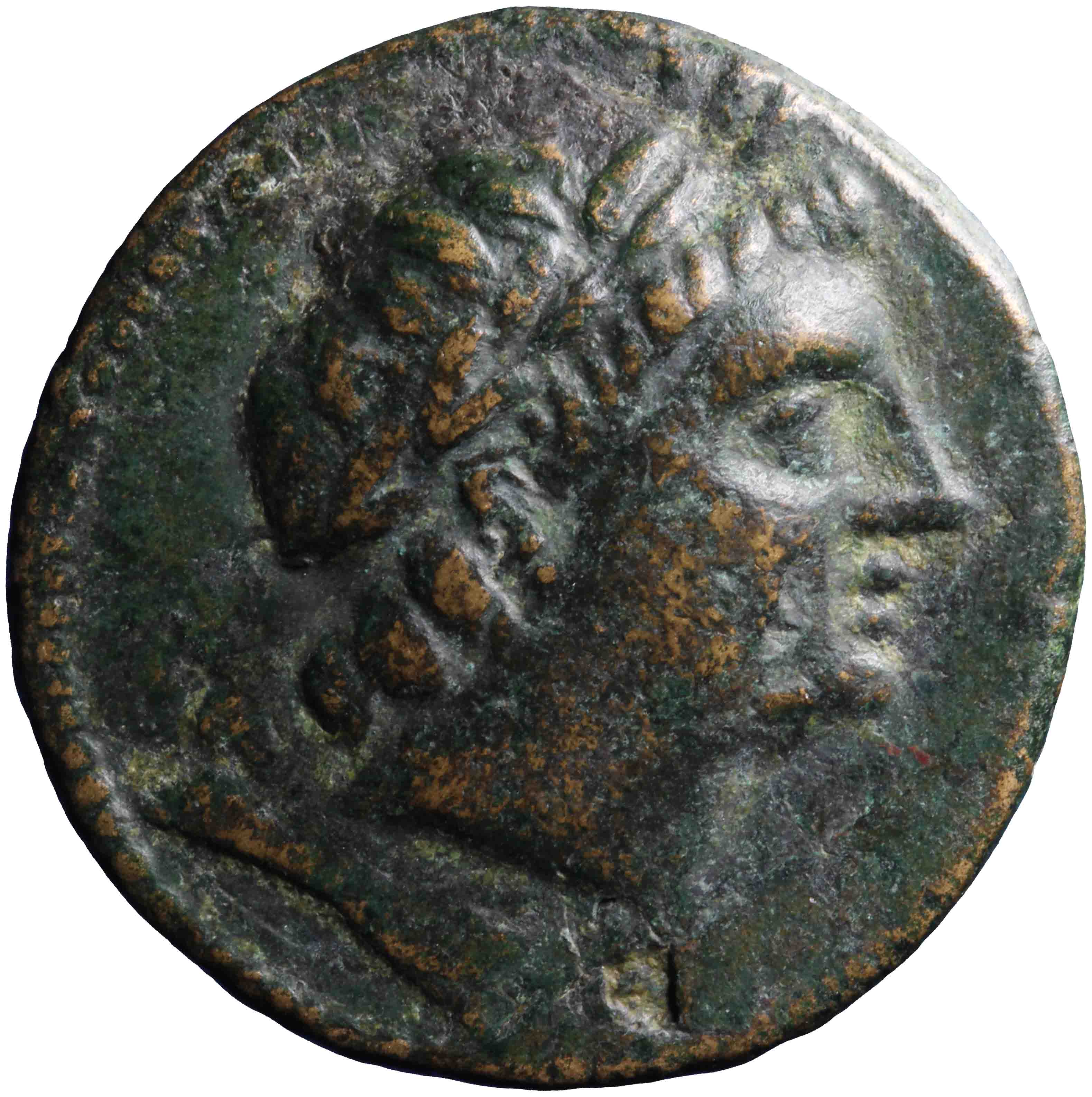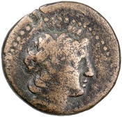 Laureate head of Apollo right with short hair -[en]