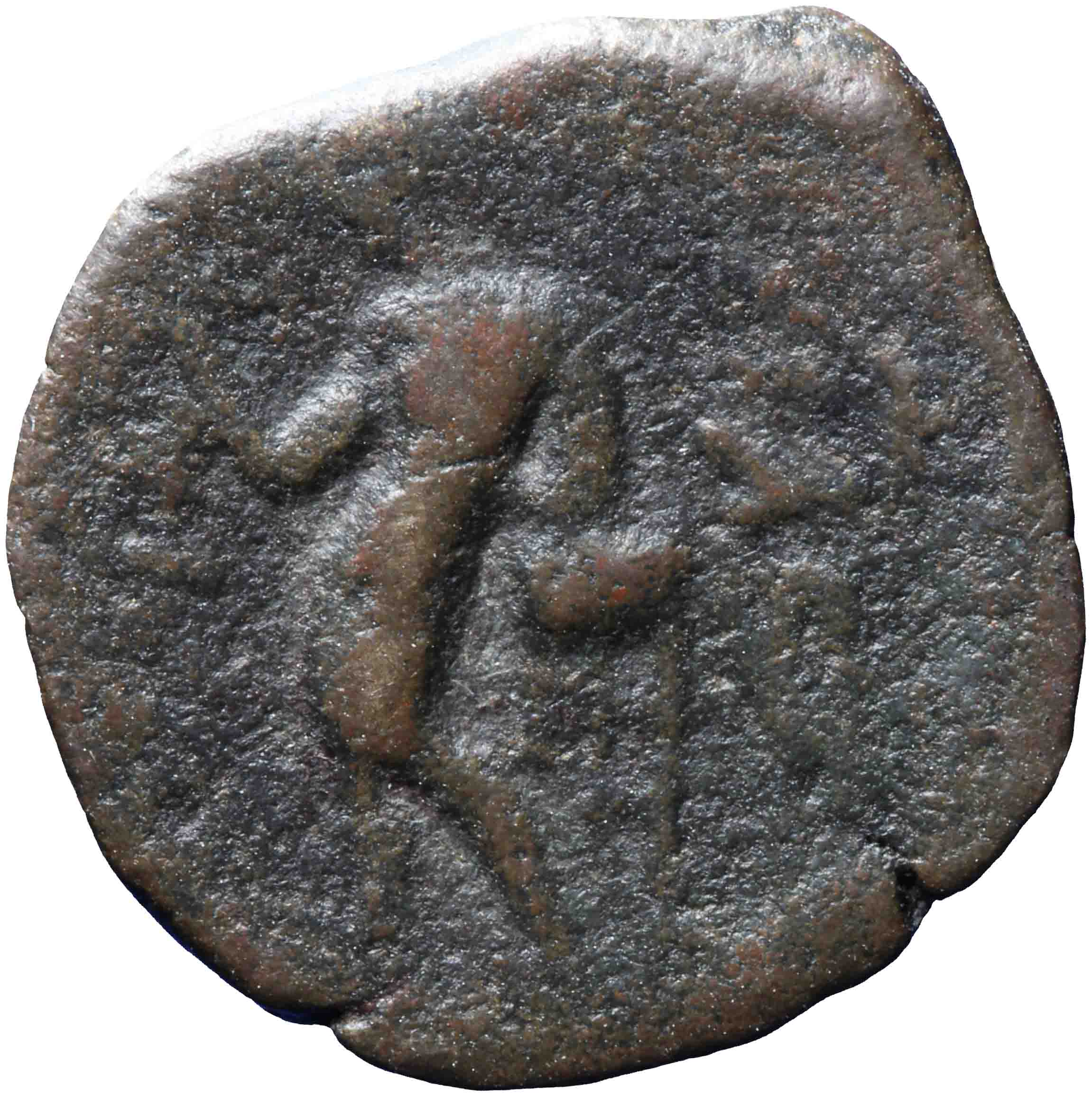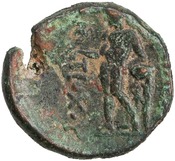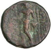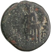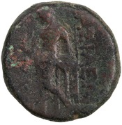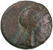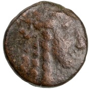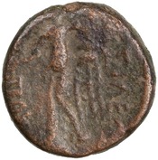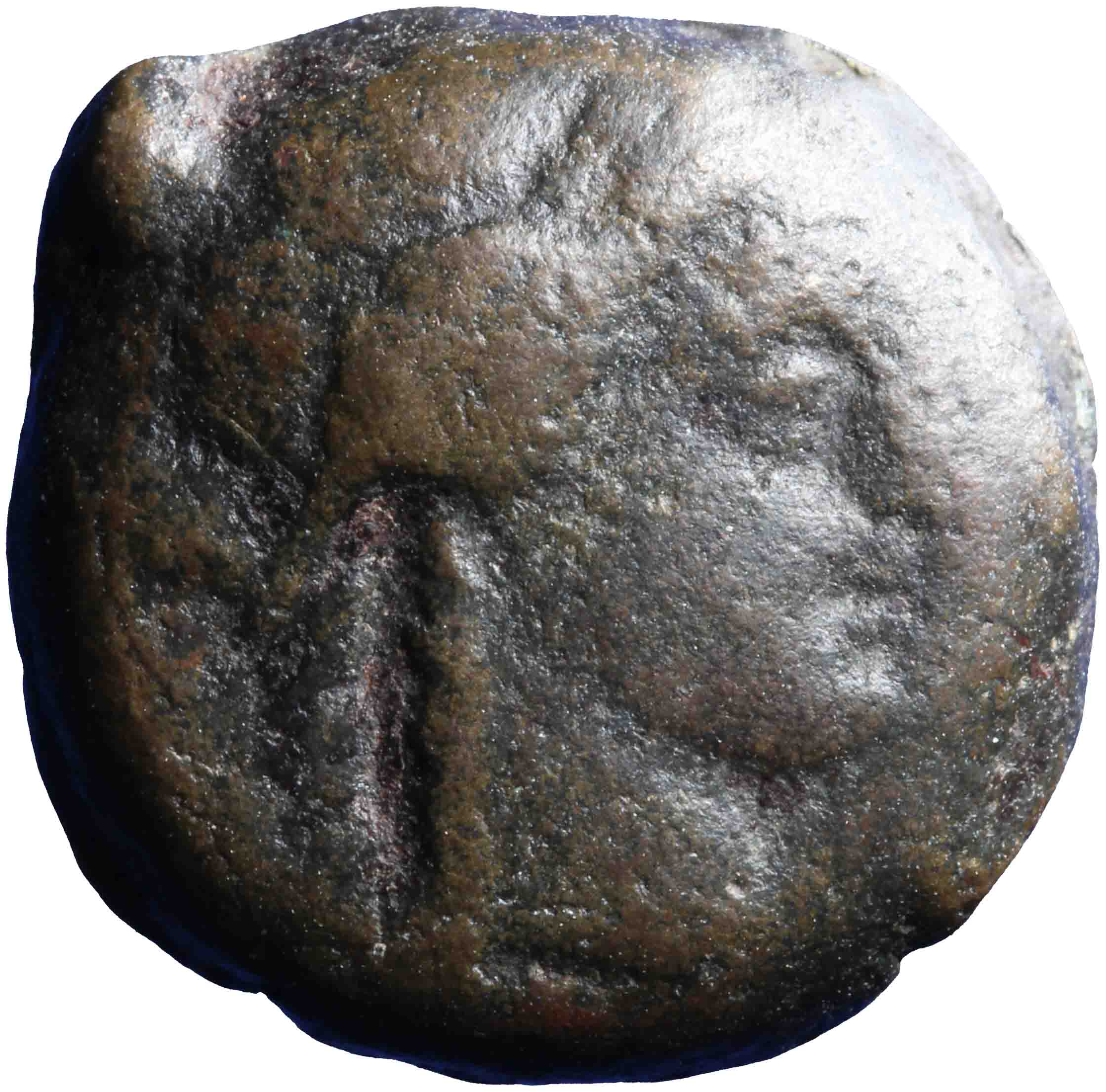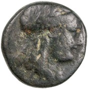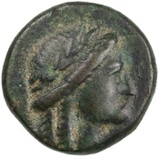 Apollon'un defne taçlı başı sağa doğru kıvrılmış buklelerle