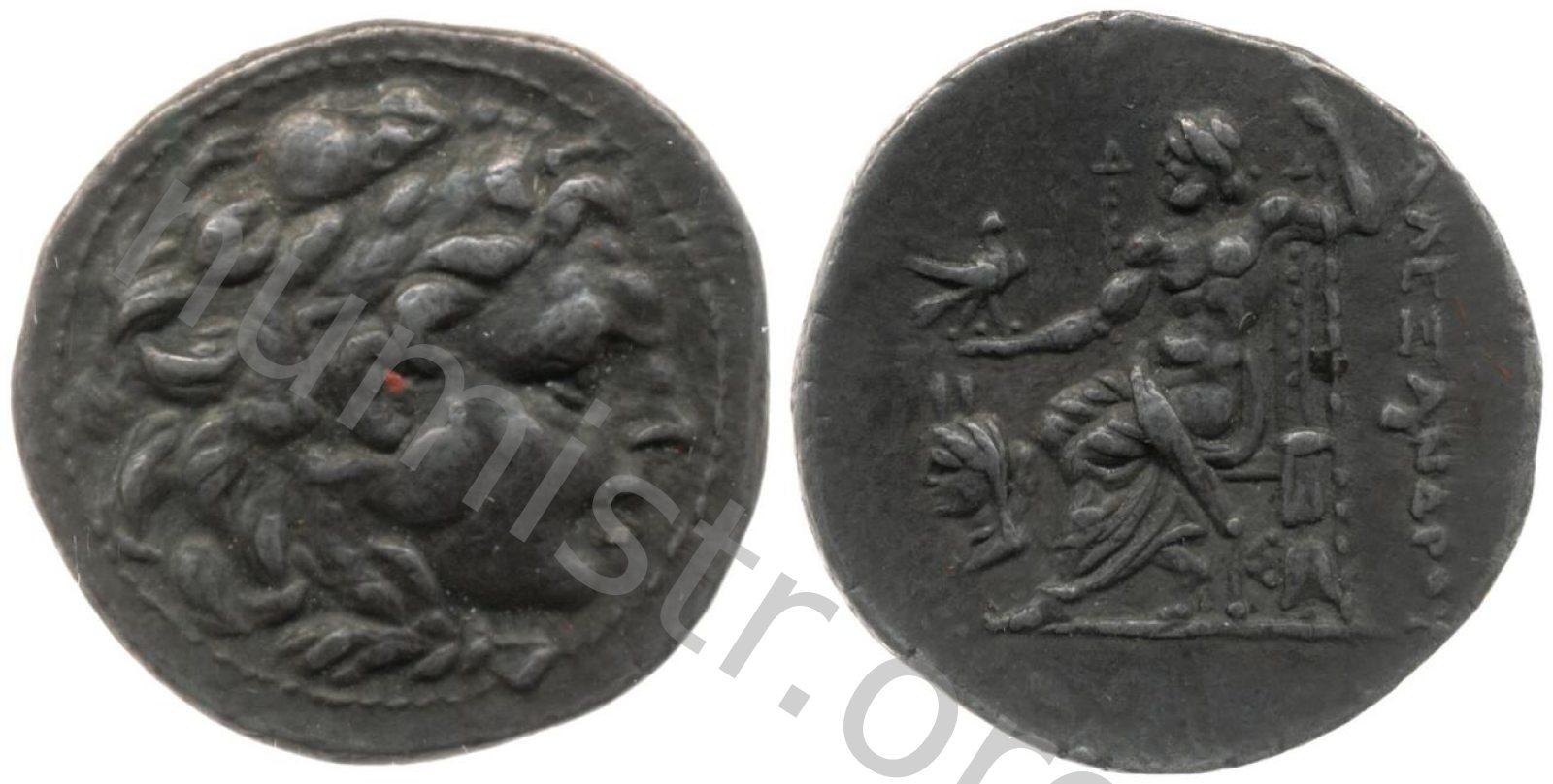 Head of beardless Heracles right wearing lion skin headdress -[en]
