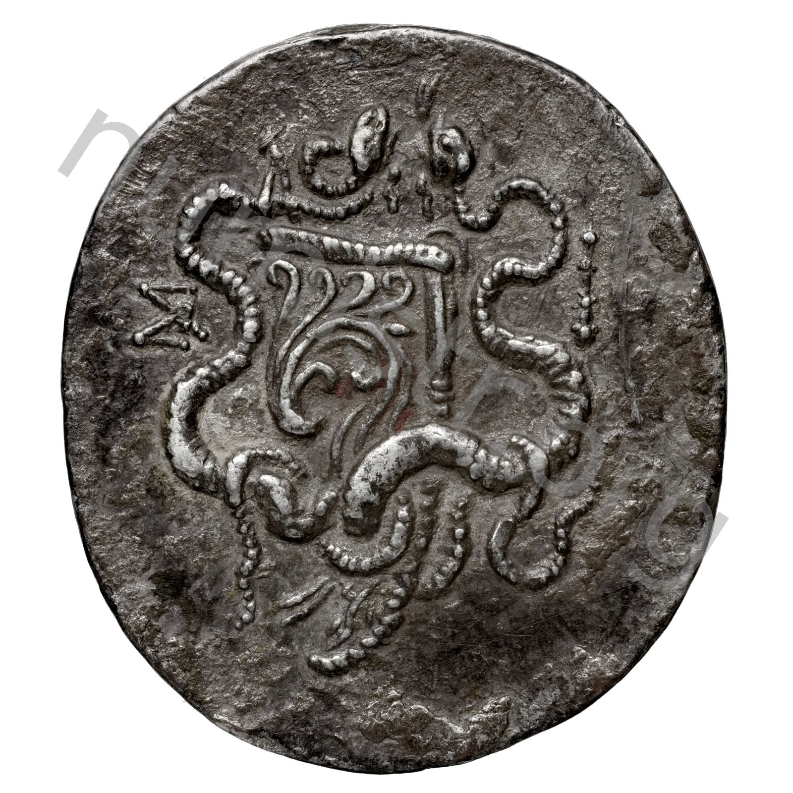 Gorytos (yay kılıfı) bir artı işareti ile süslenmiş ve iki iç içe geçmiş yılan arasında bir yay içeren; yan kulübe