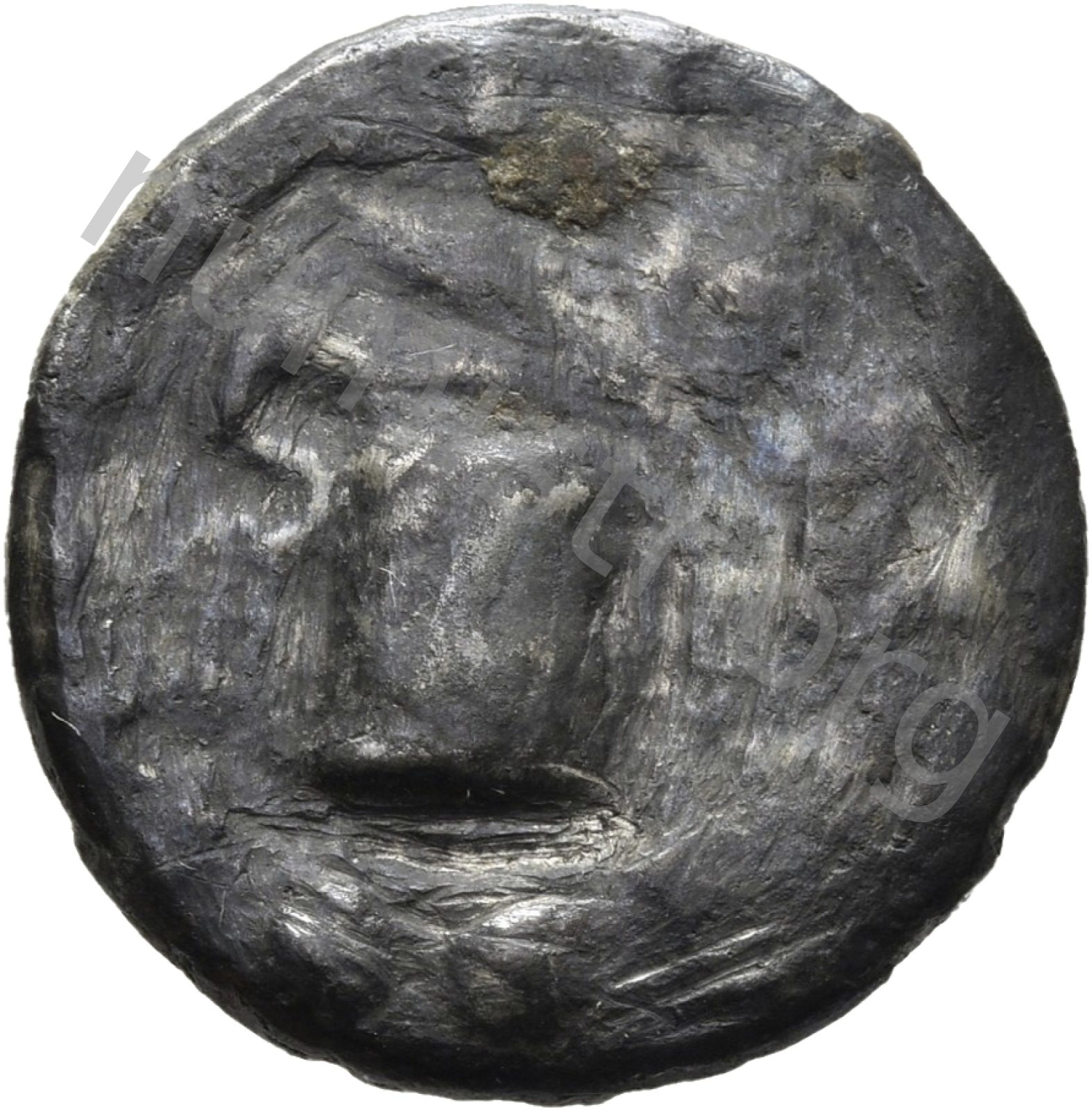 Gorytos (yay kılıfı) bir artı işaretiyle süslenmiş ve iki iç içe geçmiş yılan arasında bir yay bulunan; yan tarafta haşhaş başlı ve mısır koçanı bulunan