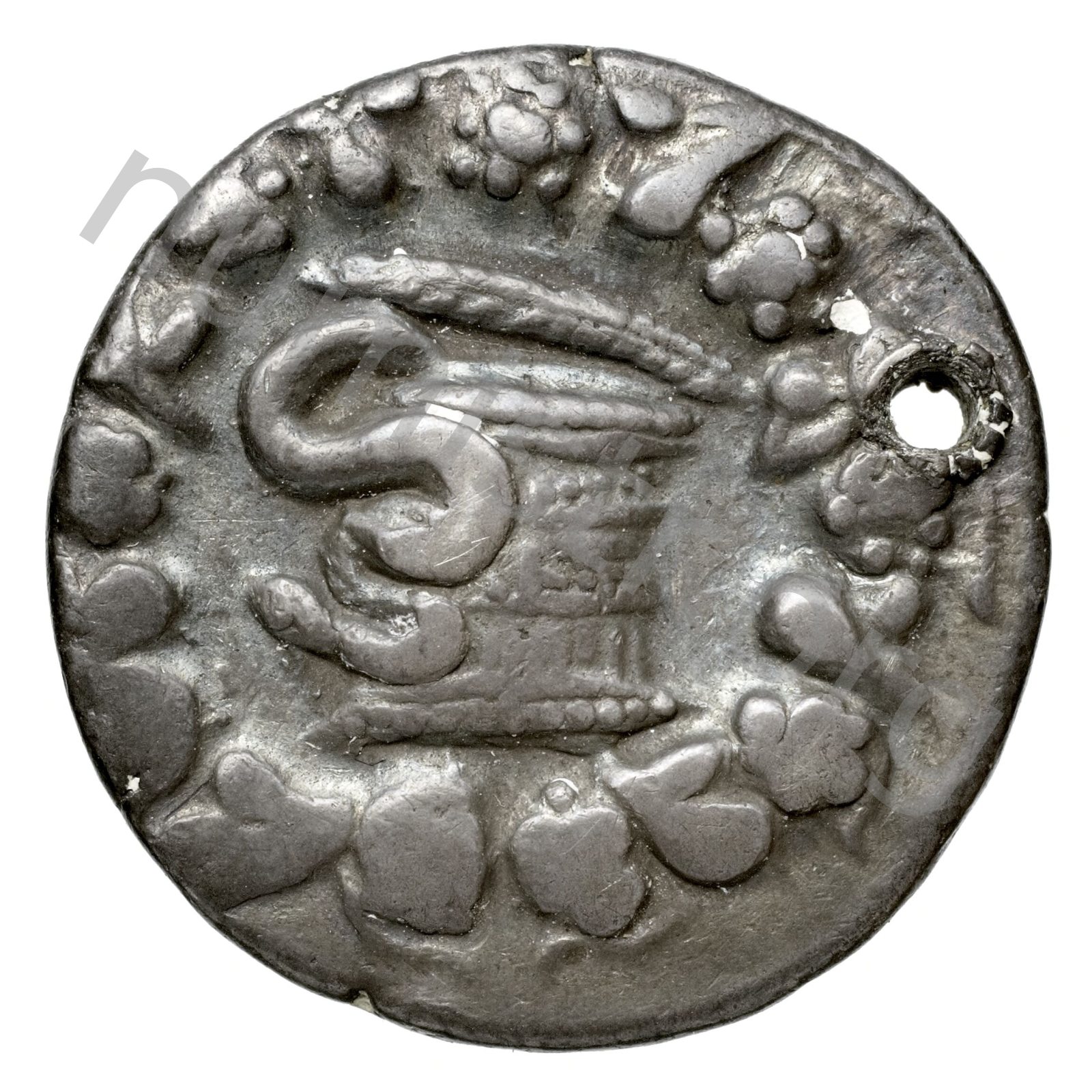 Gorytos (yay kılıfı) bir artı işaretiyle süslenmiş ve iki iç içe geçmiş yılan arasında bir yay bulunan; yan tarafta haşhaş başlı ve mısır koçanı bulunan