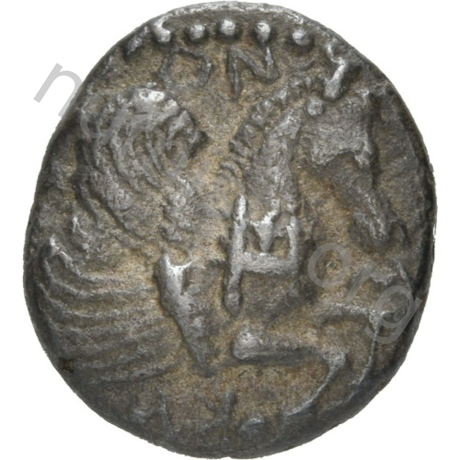 Sağda kanatlı atın ön kısmı. Boyunda bir sembol.