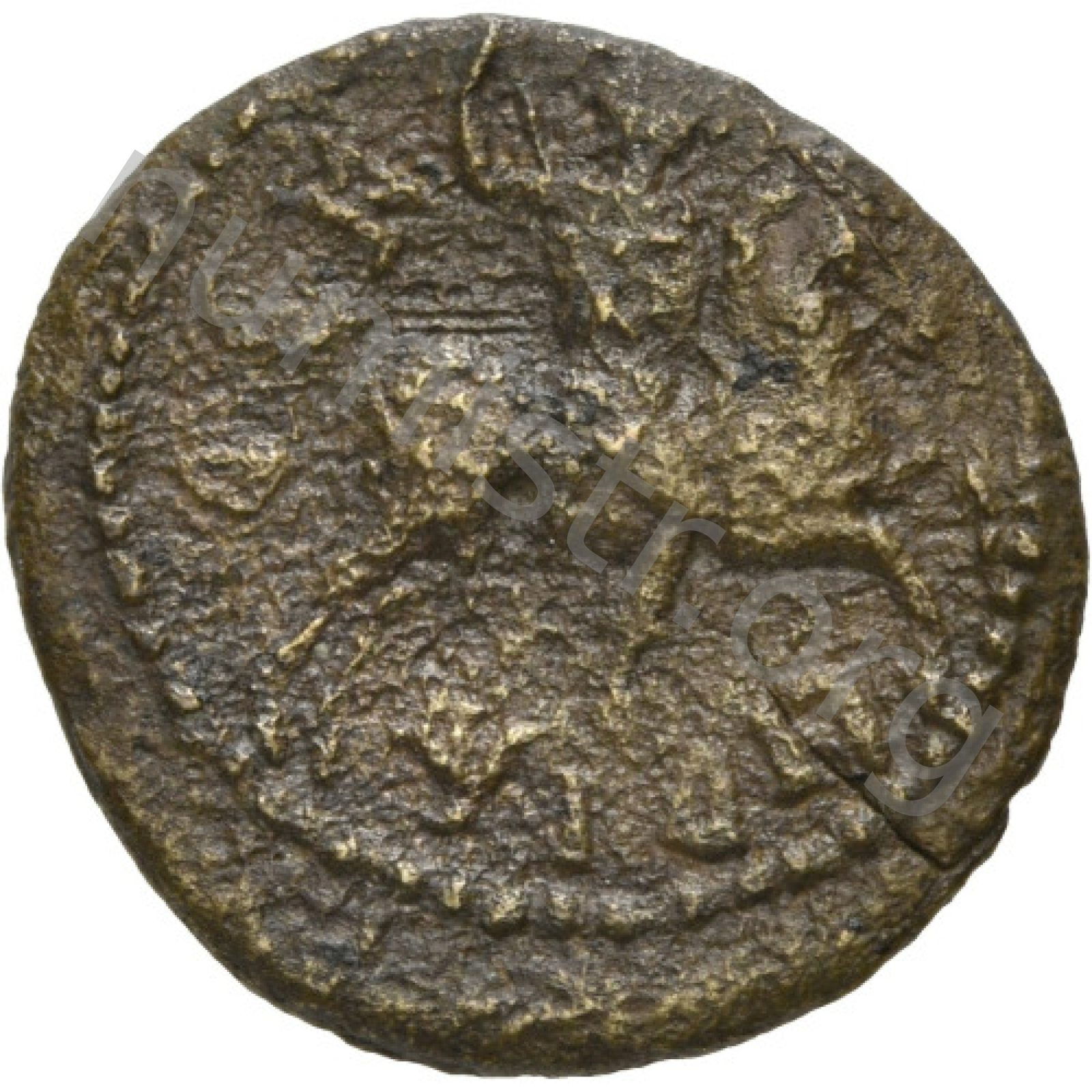 Draped bearded bust of Dionysus right wearing ivy wreath and kalathos; holding kantharos in his right hand. -[en]