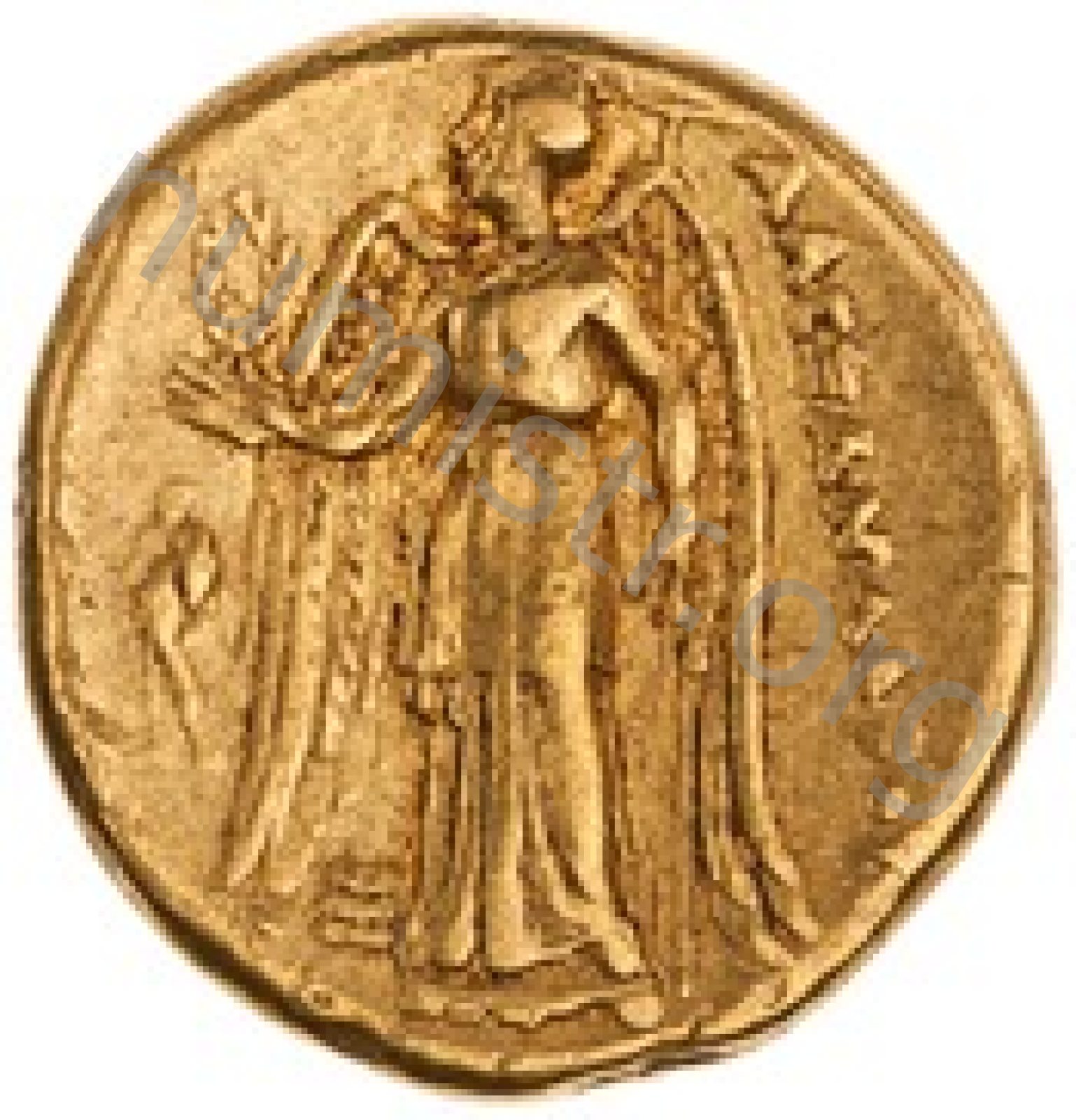 Nike standing left holding wreath in right hand and stylis in her left hand -[en]