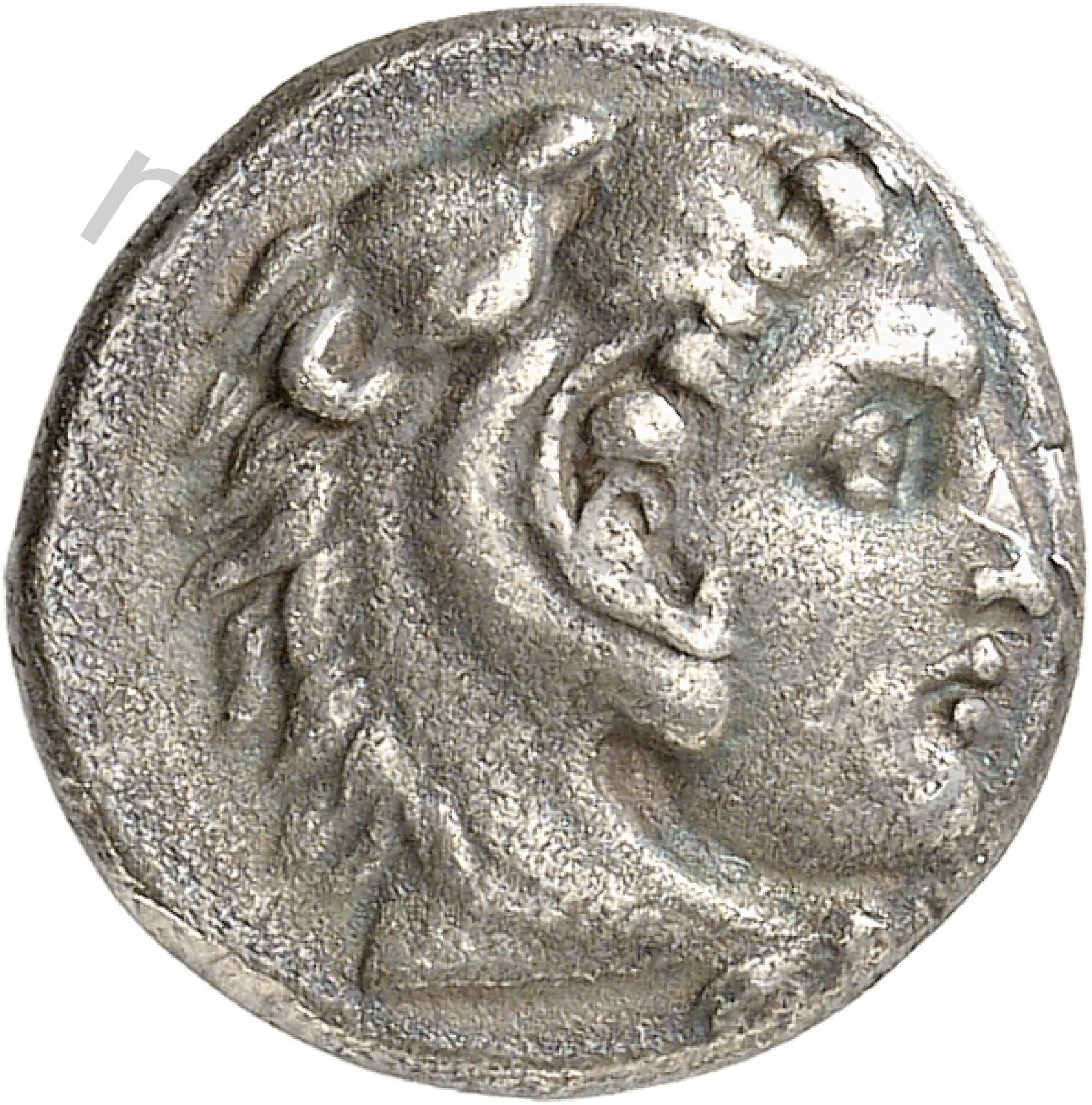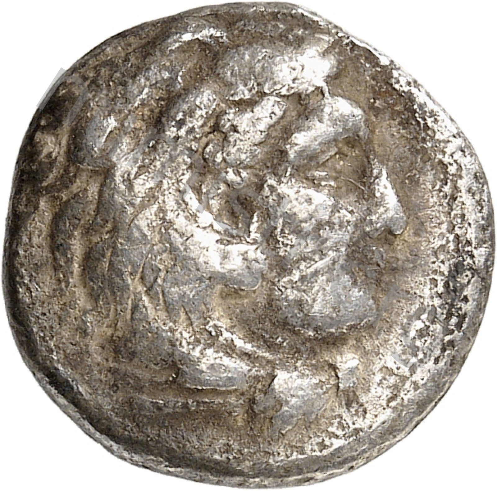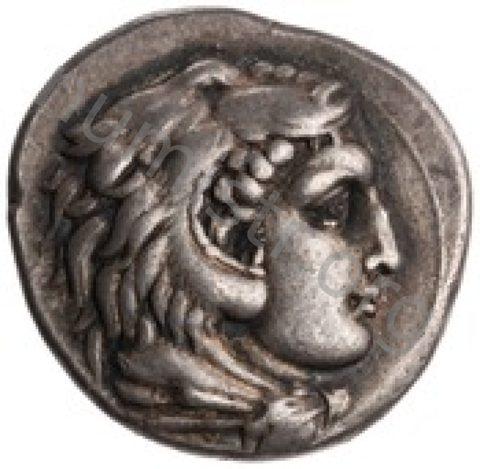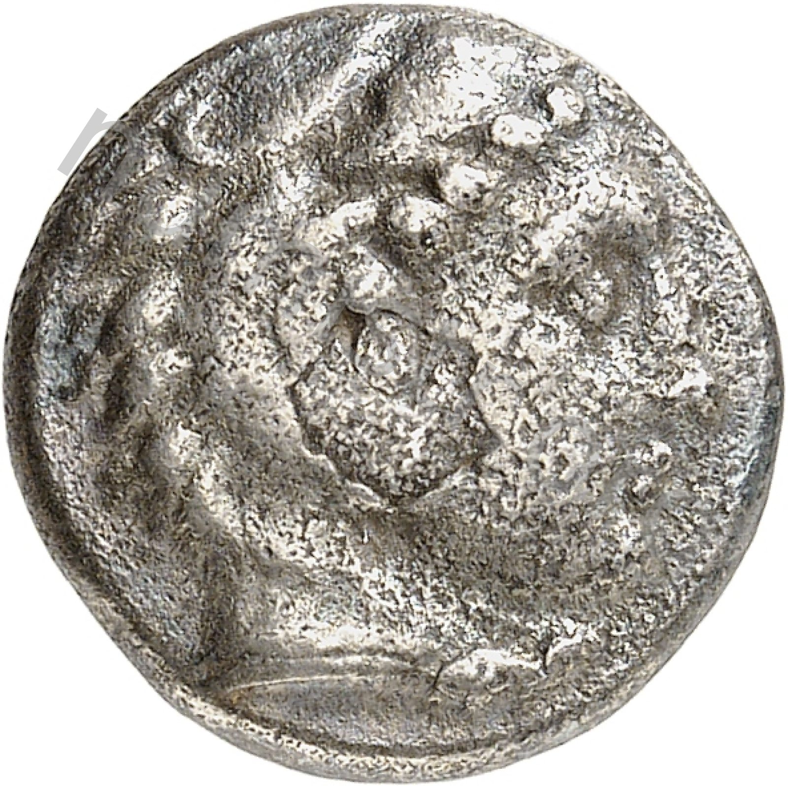 Head of beardless Heracles right wearing lion skin headdress -[en]