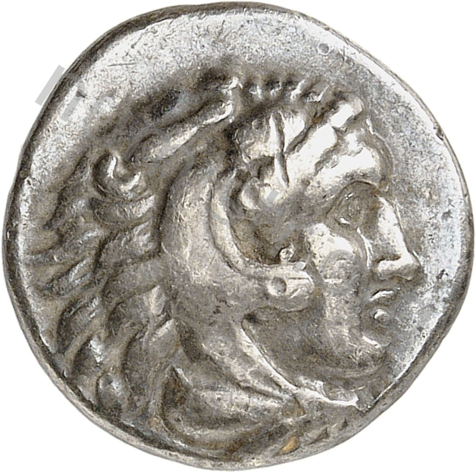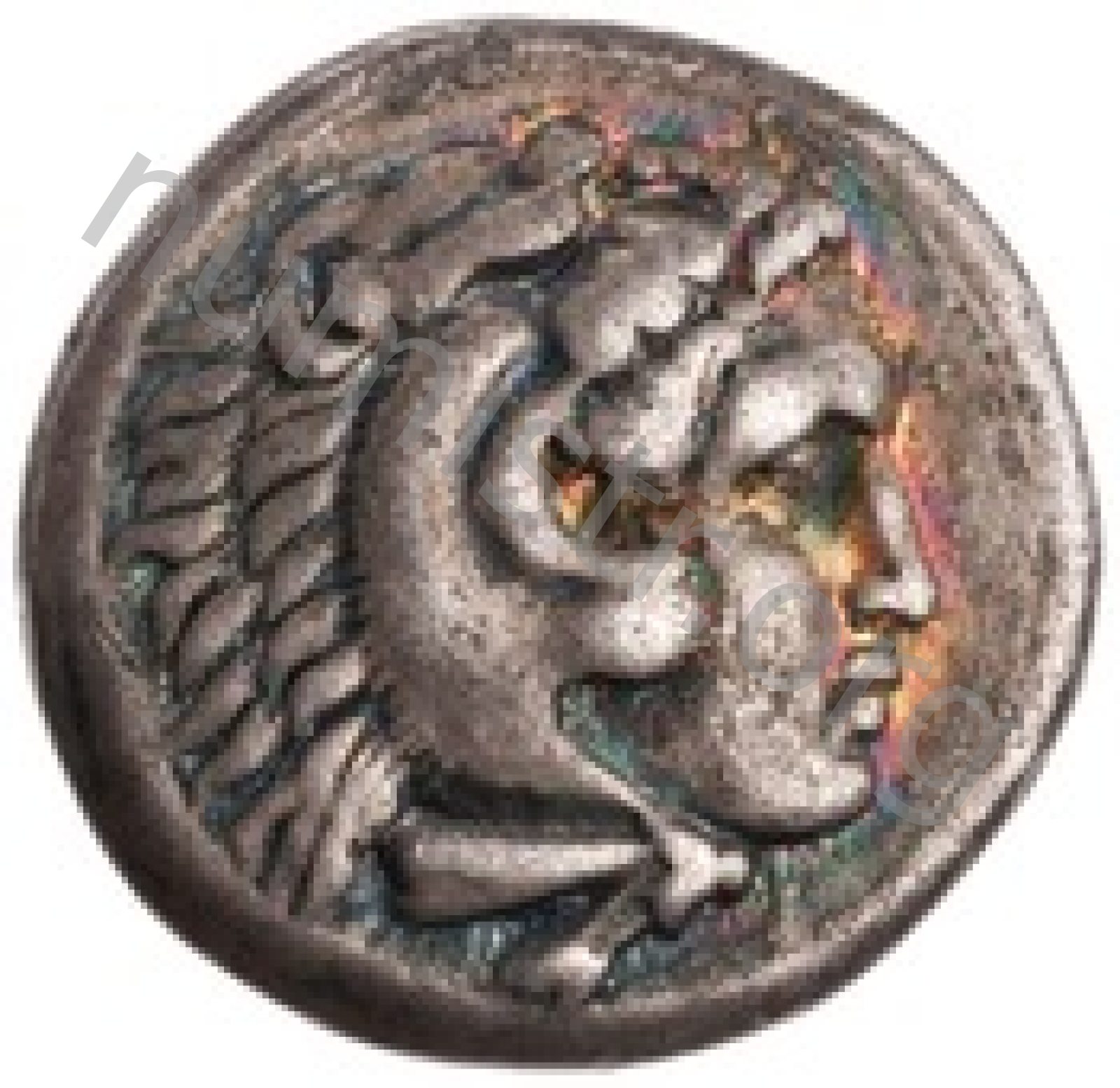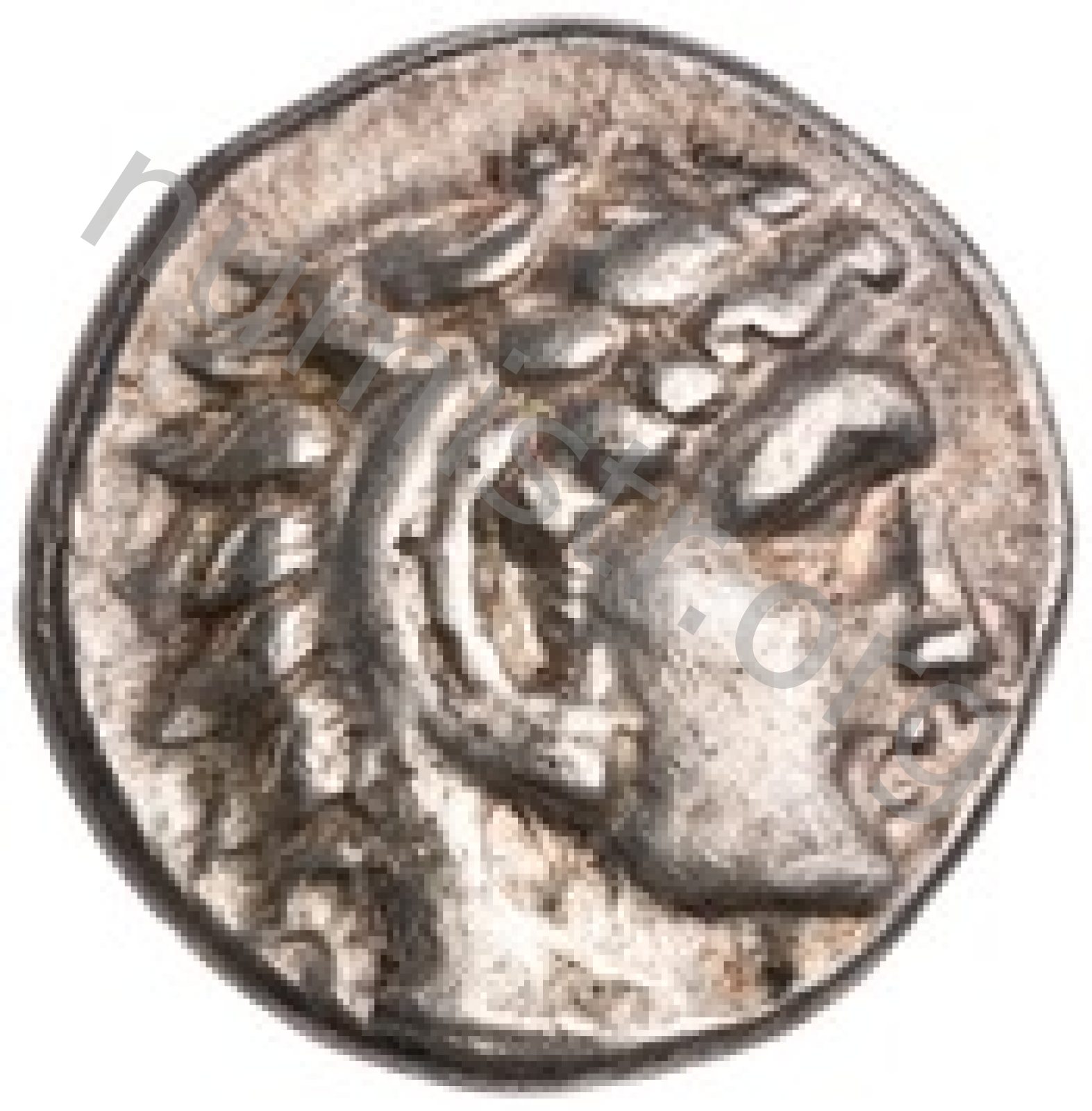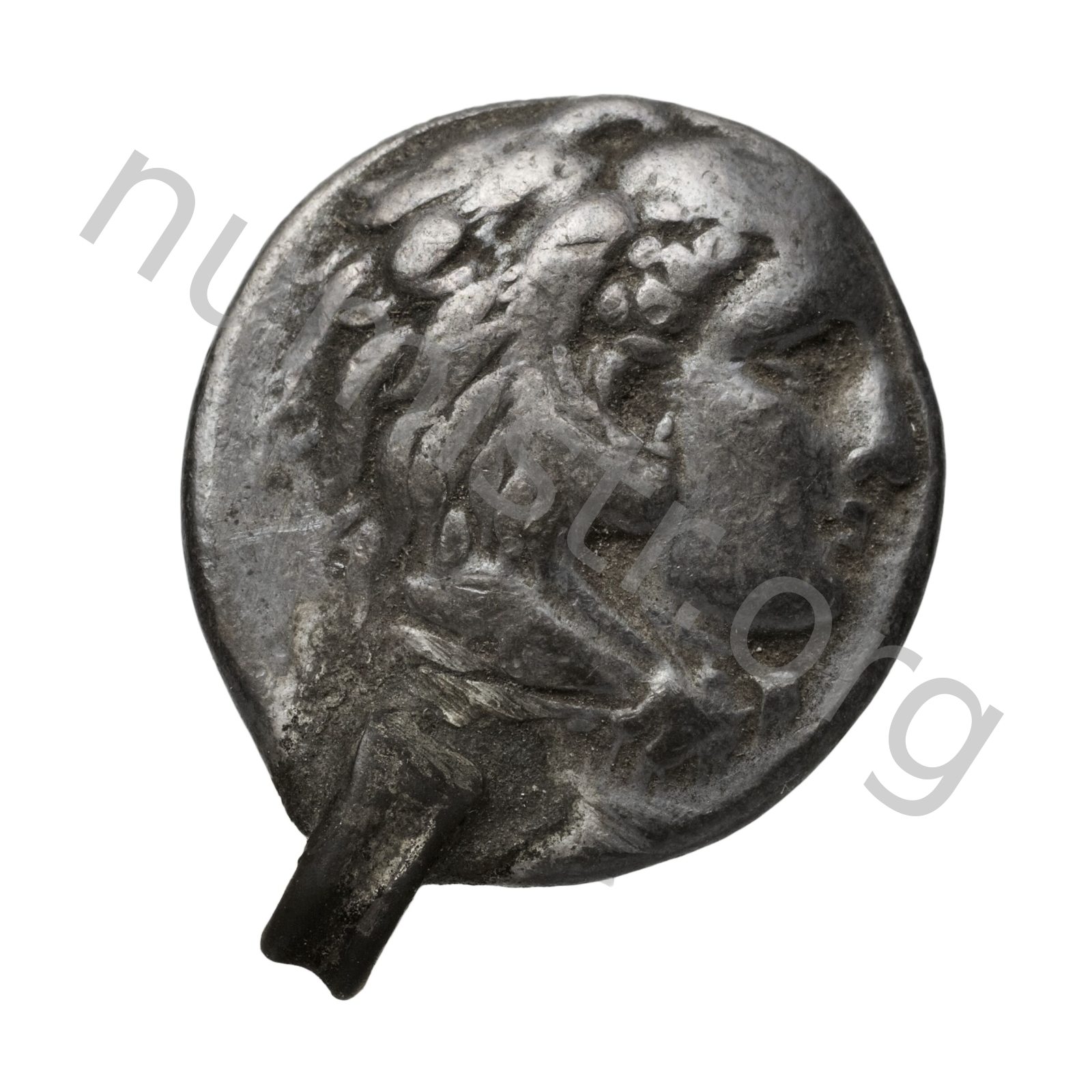 Head of beardless Heracles right wearing lion skin headdress -[en]