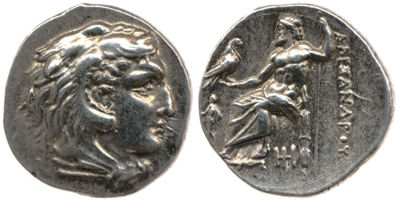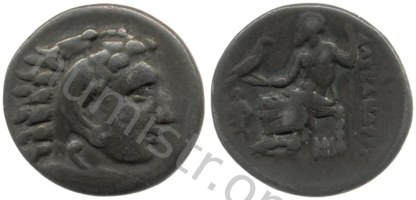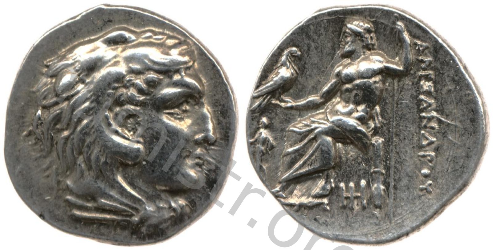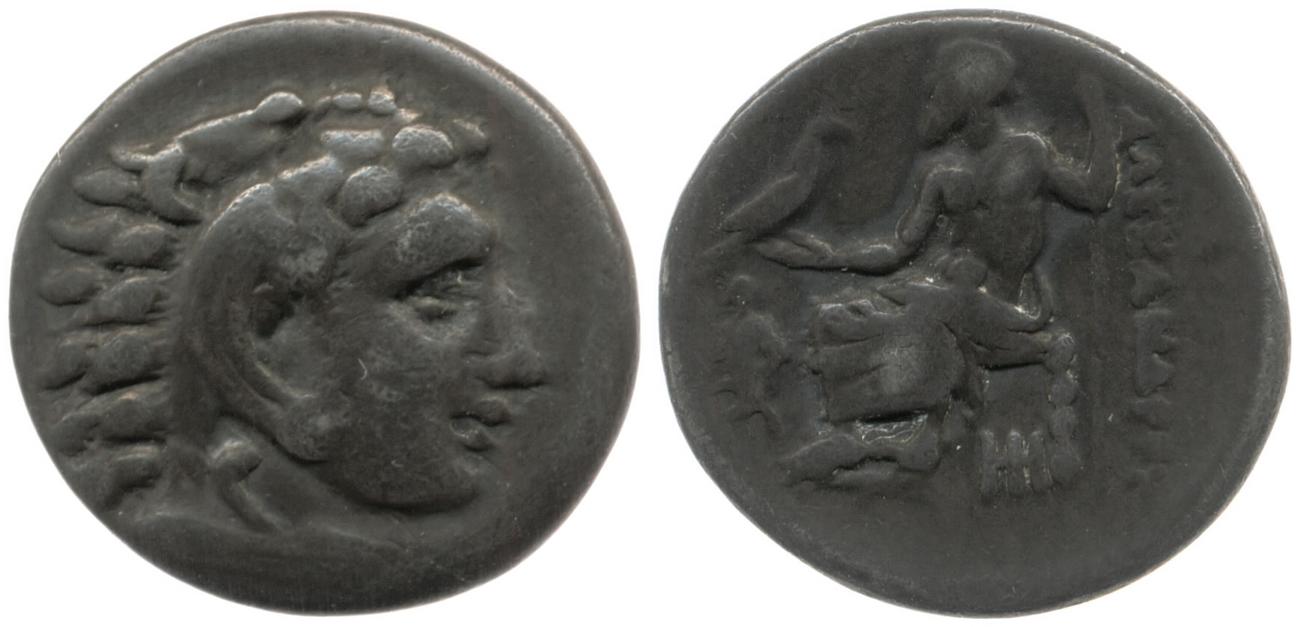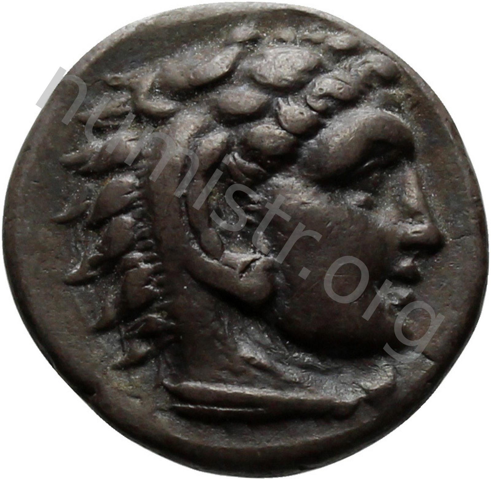 Head of beardless Heracles right wearing lion skin headdress -[en]