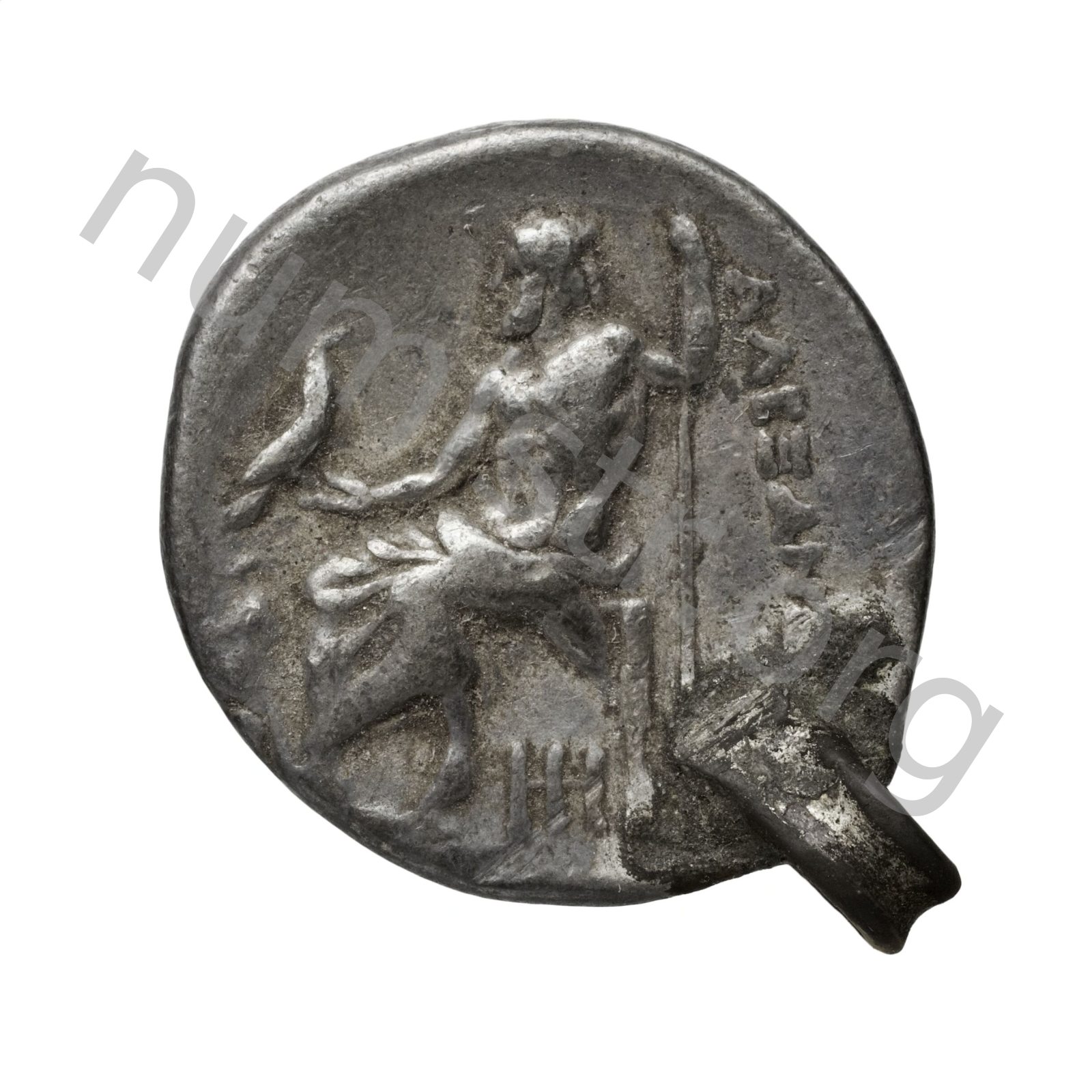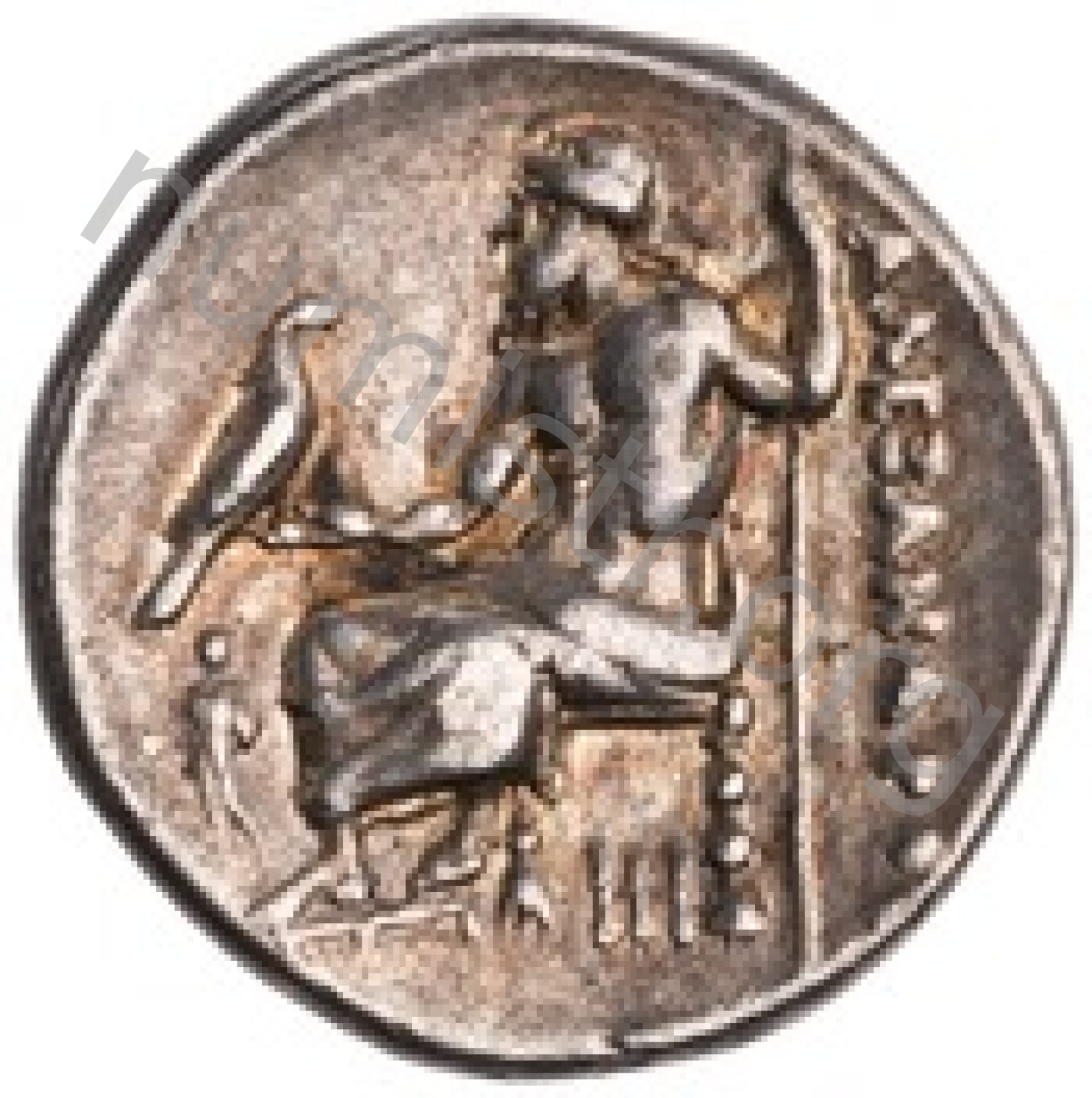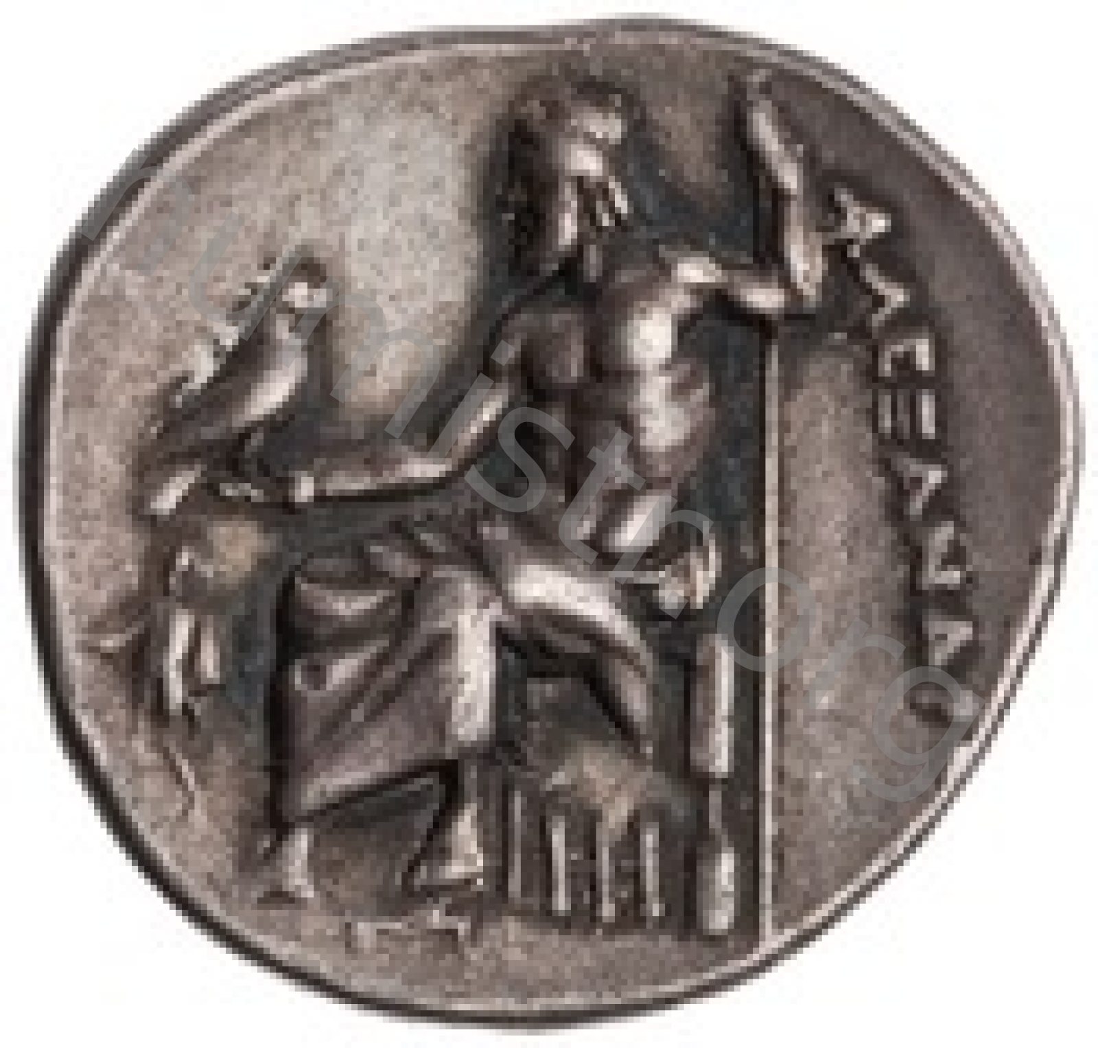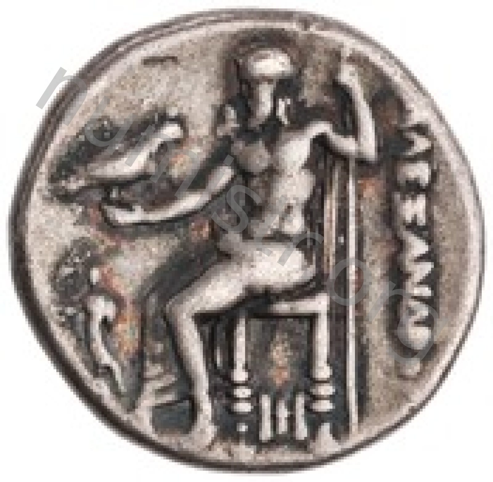 Zeus tabure-tahtta oturuyor sol elinde kartal sağ elinde asa var.