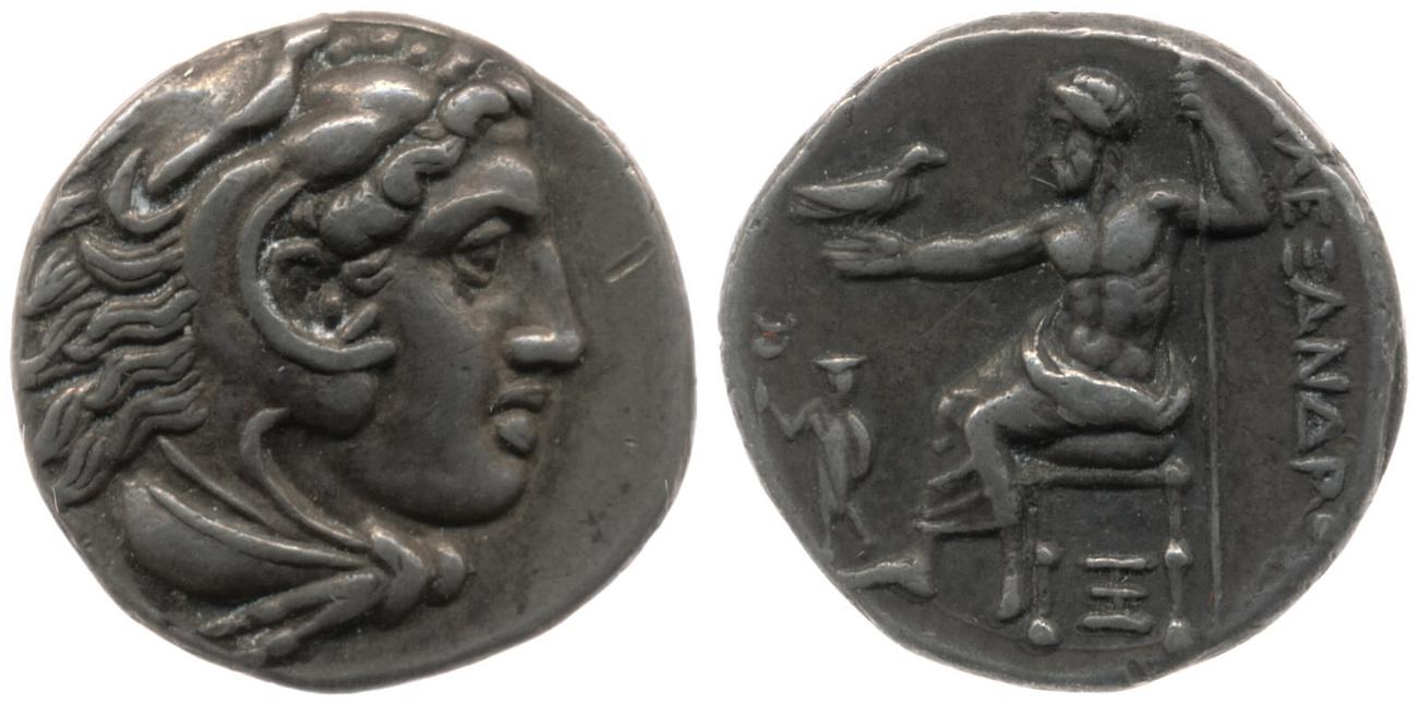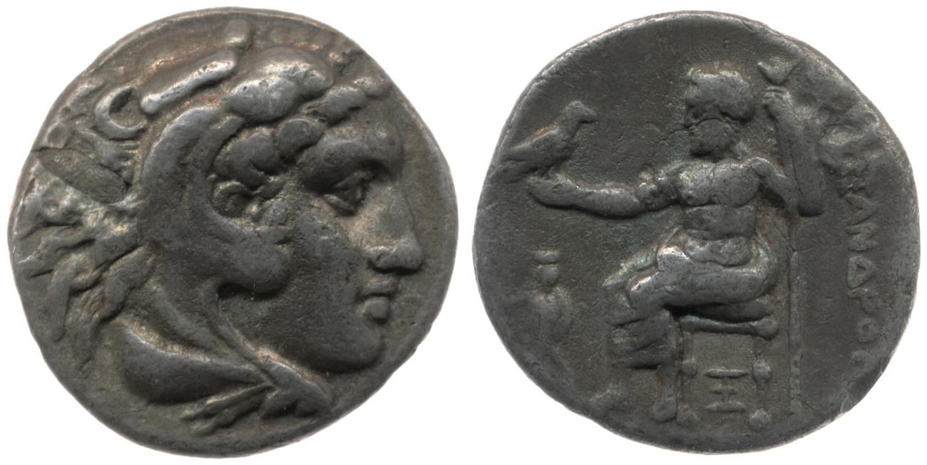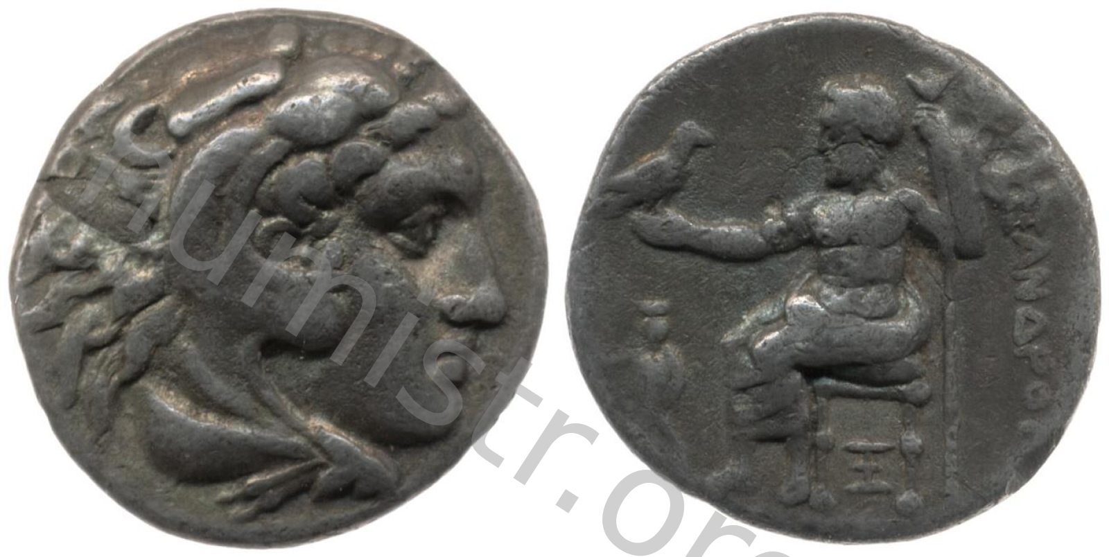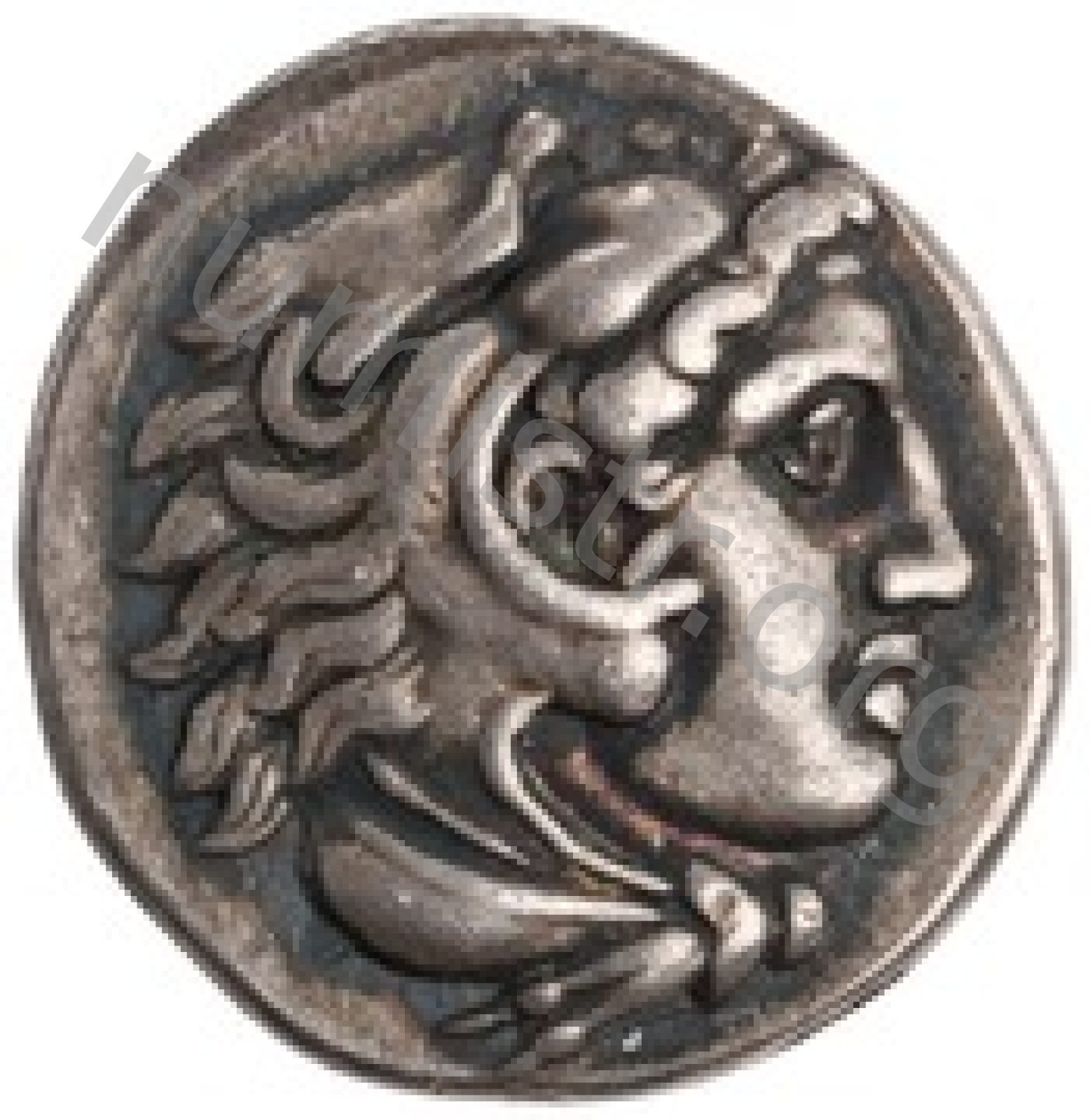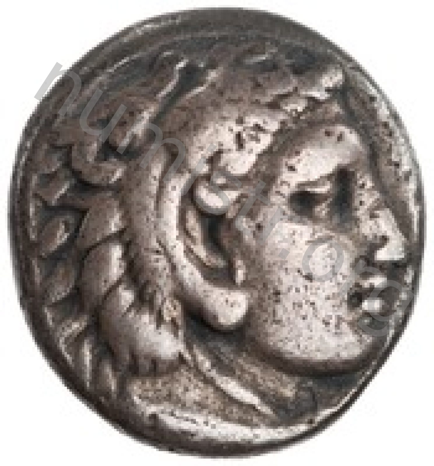 Head of beardless Heracles right wearing lion skin headdress -[en]
