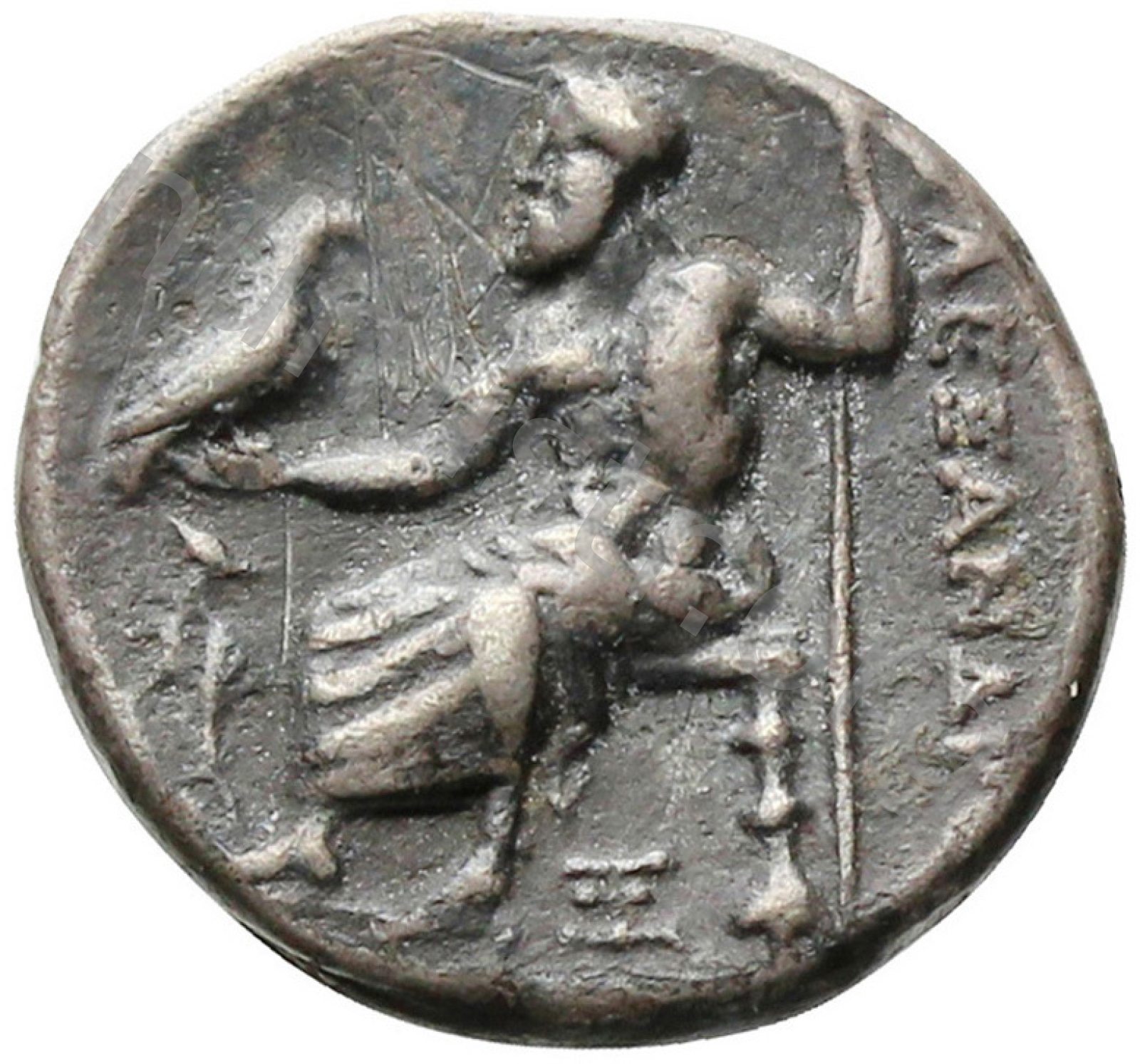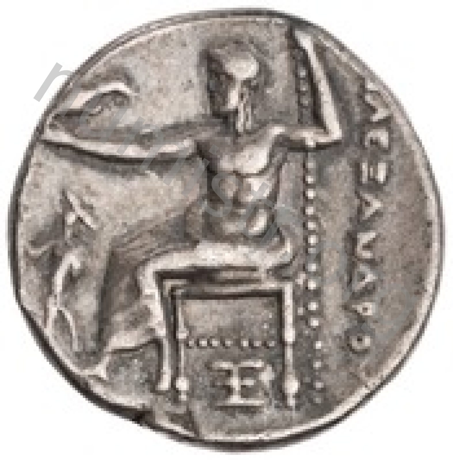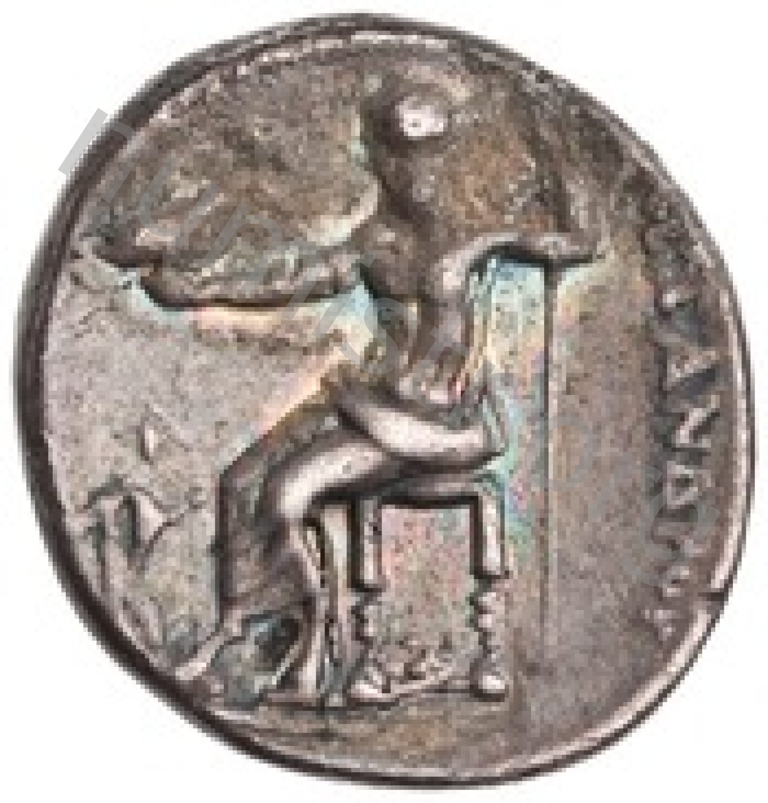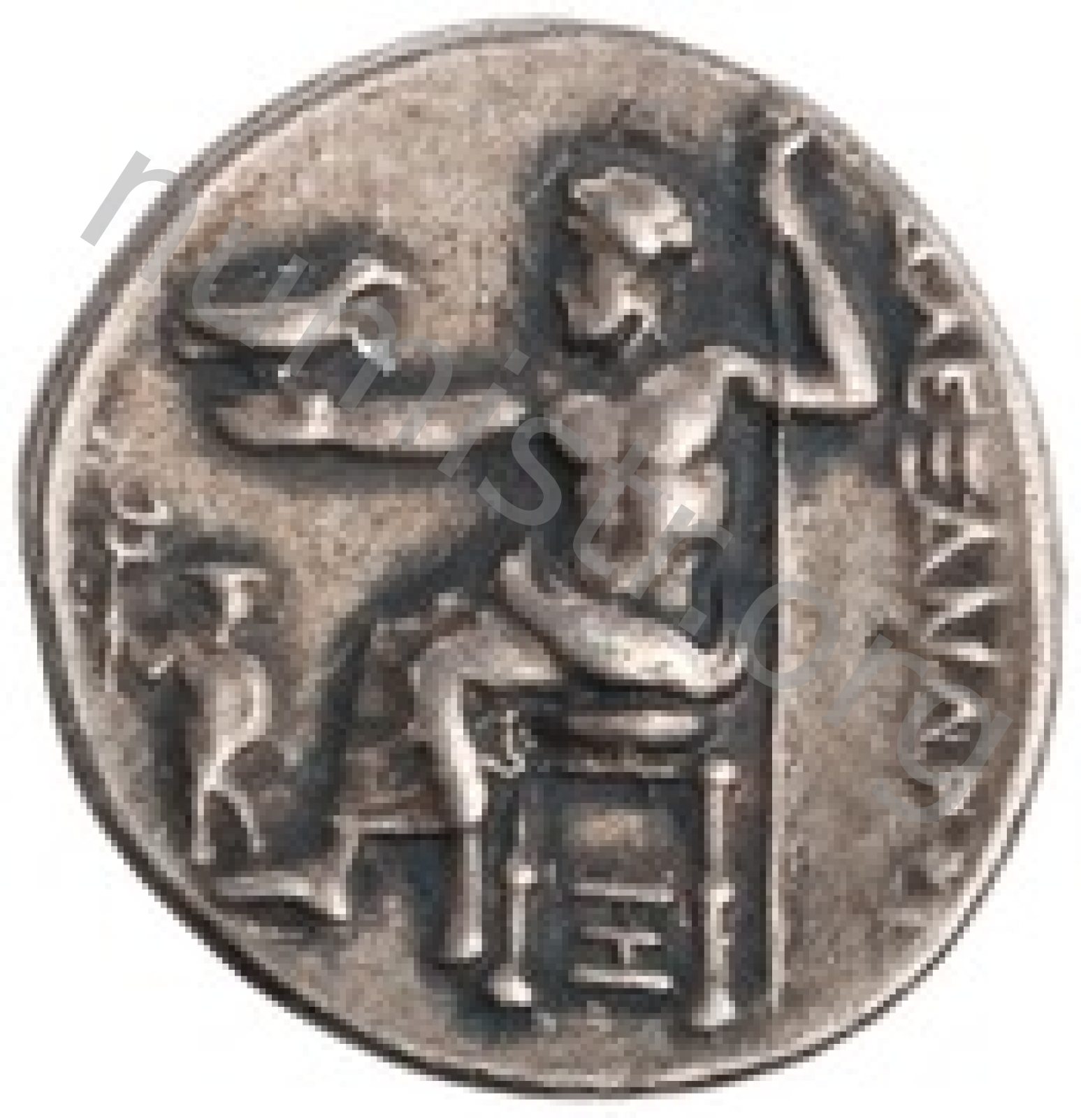 Zeus tabure-tahtta oturuyor sol elinde kartal sağ elinde asa var.