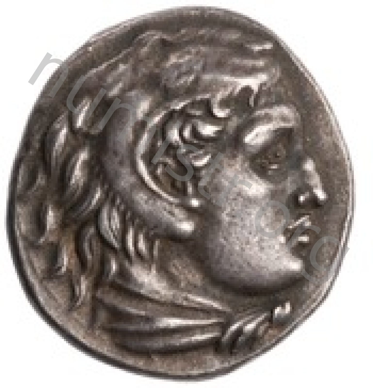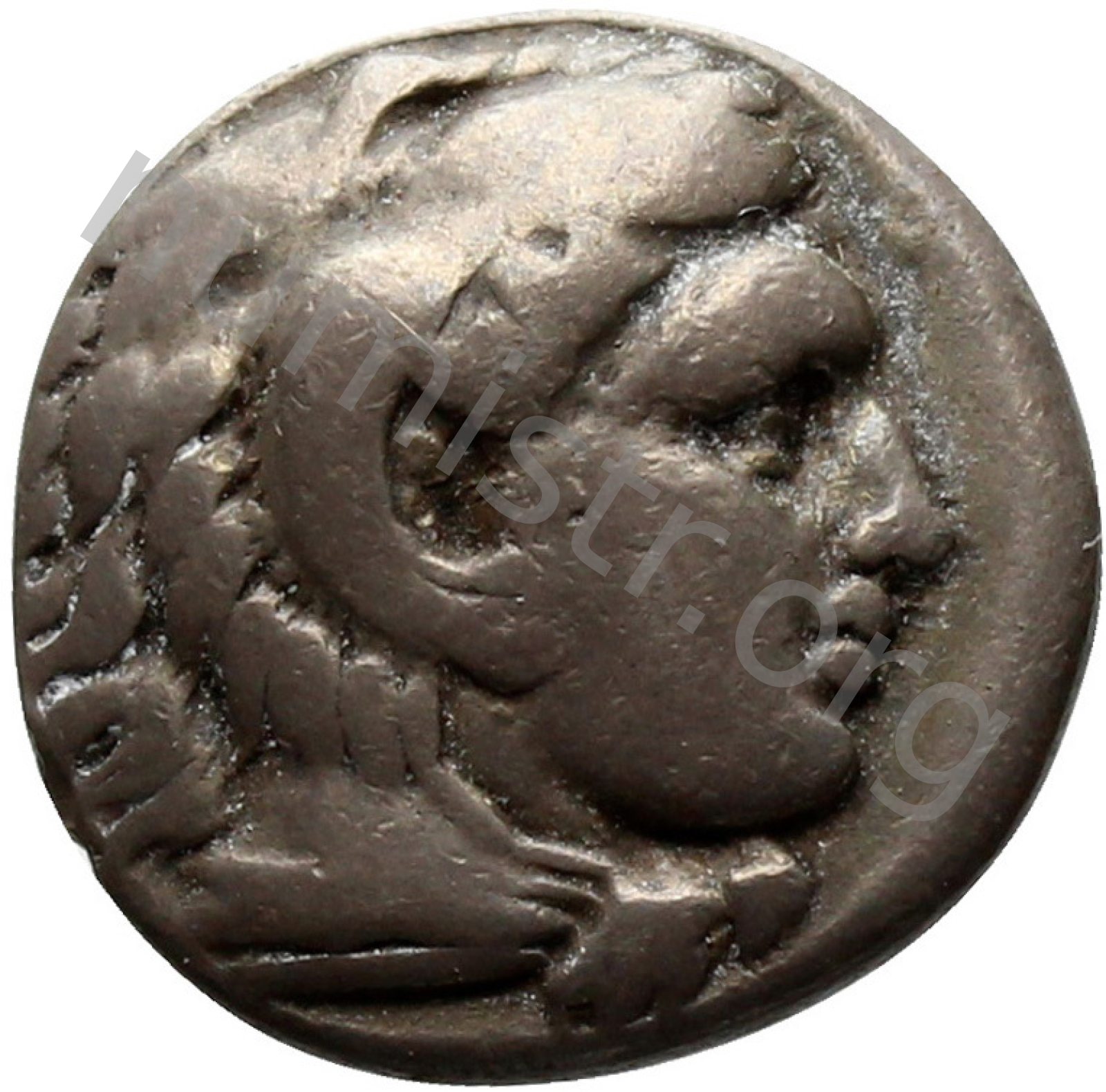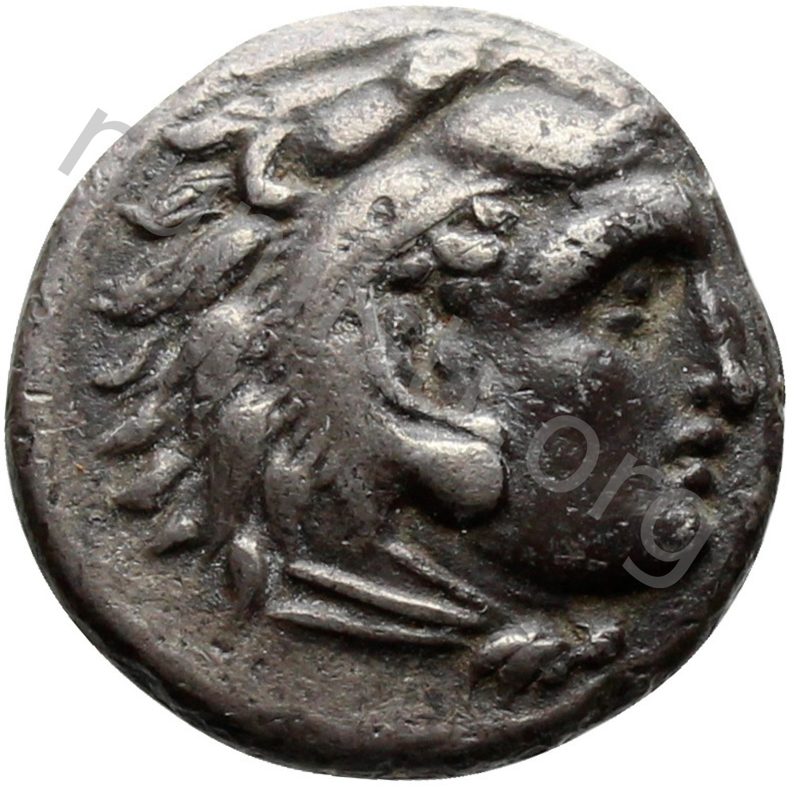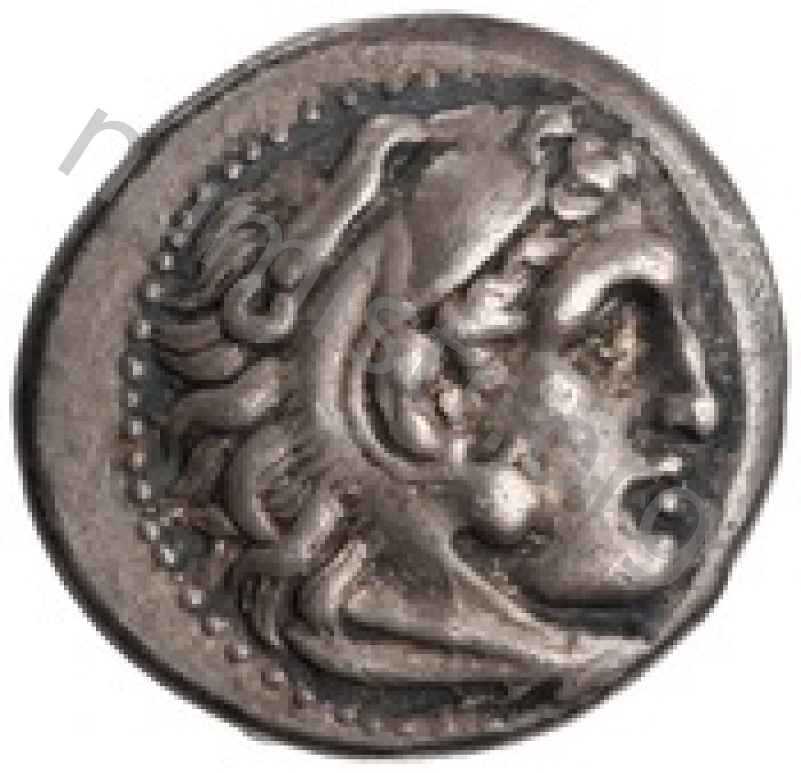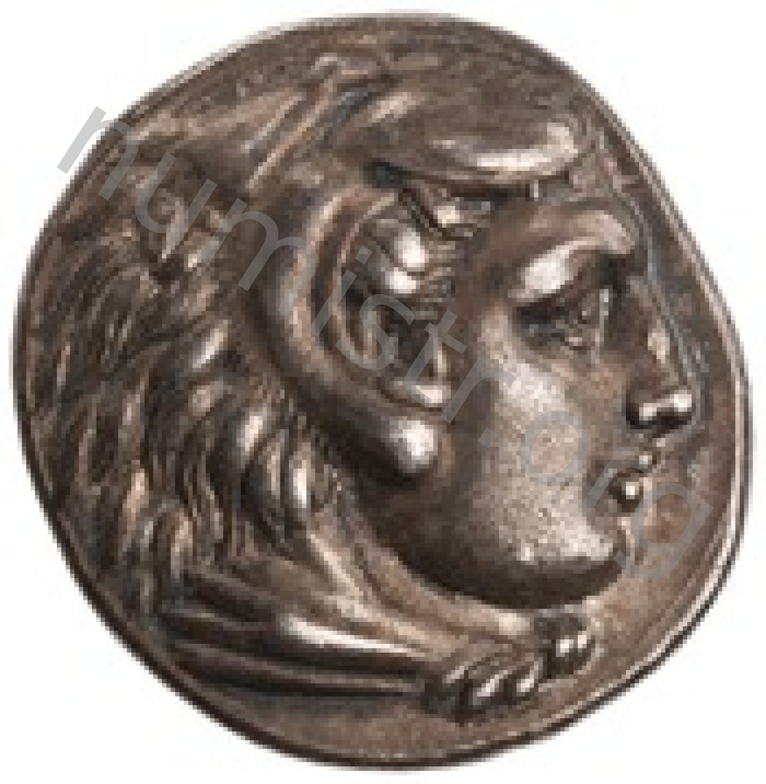 Head of beardless Heracles right wearing lion skin headdress -[en]