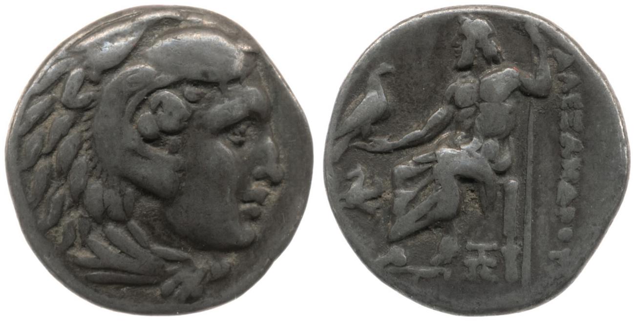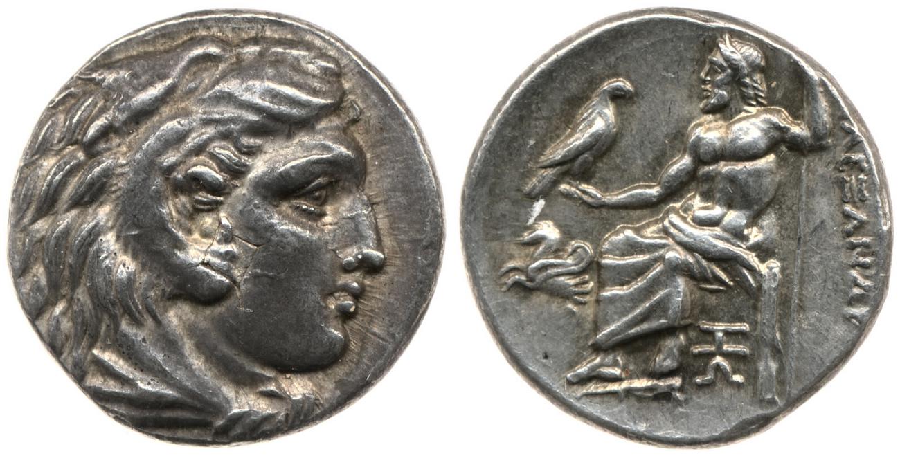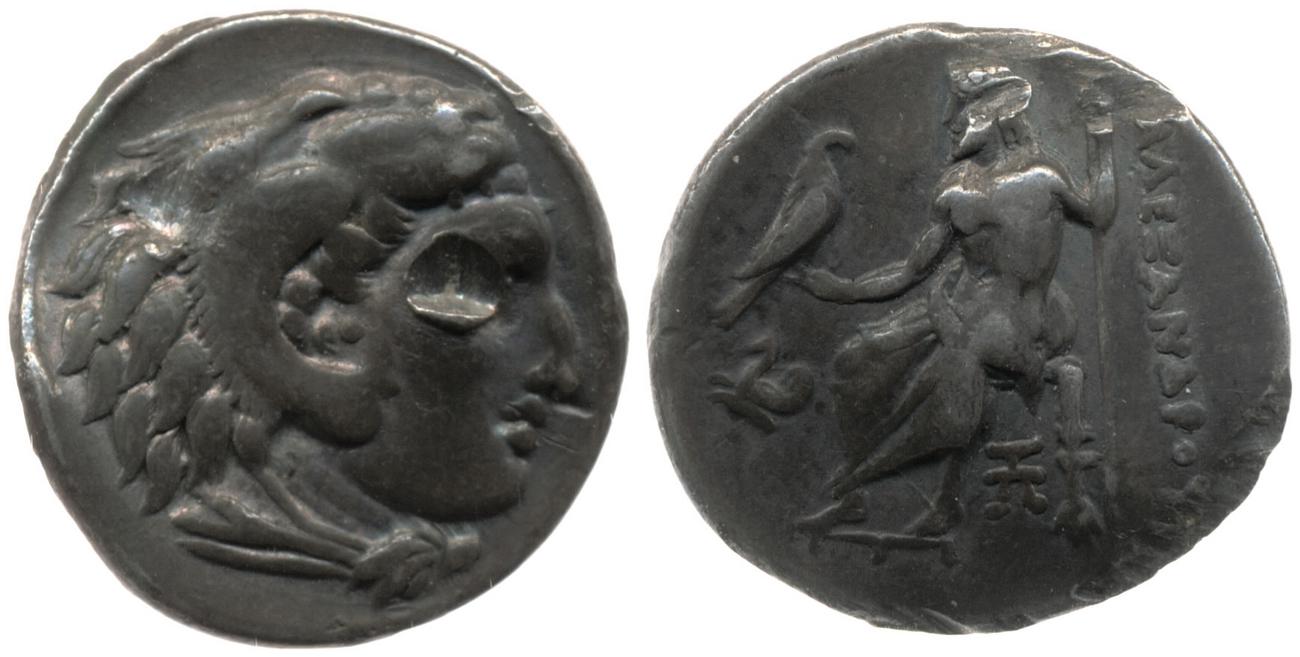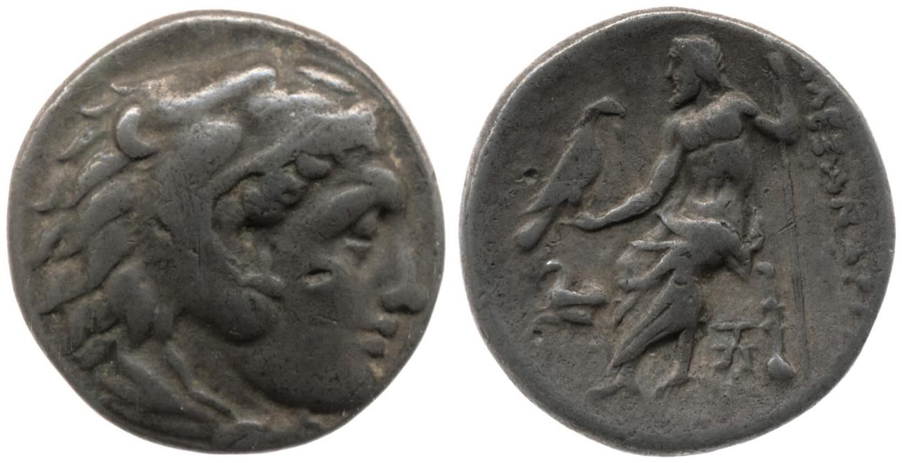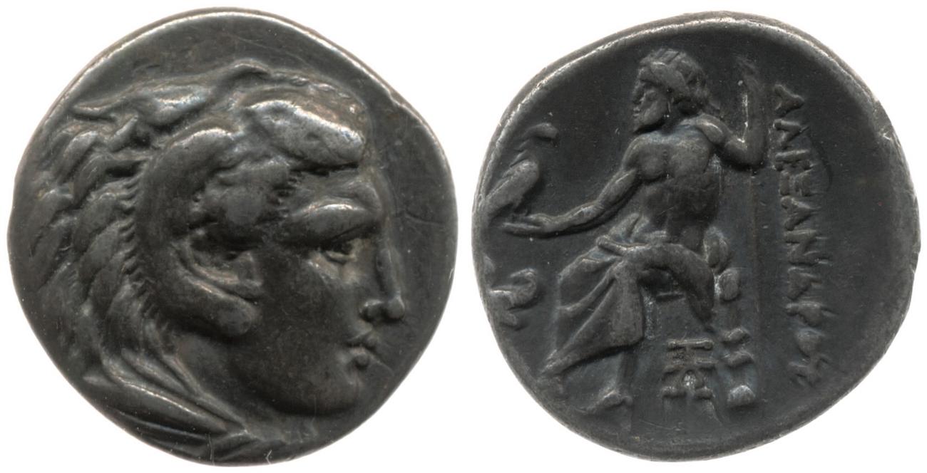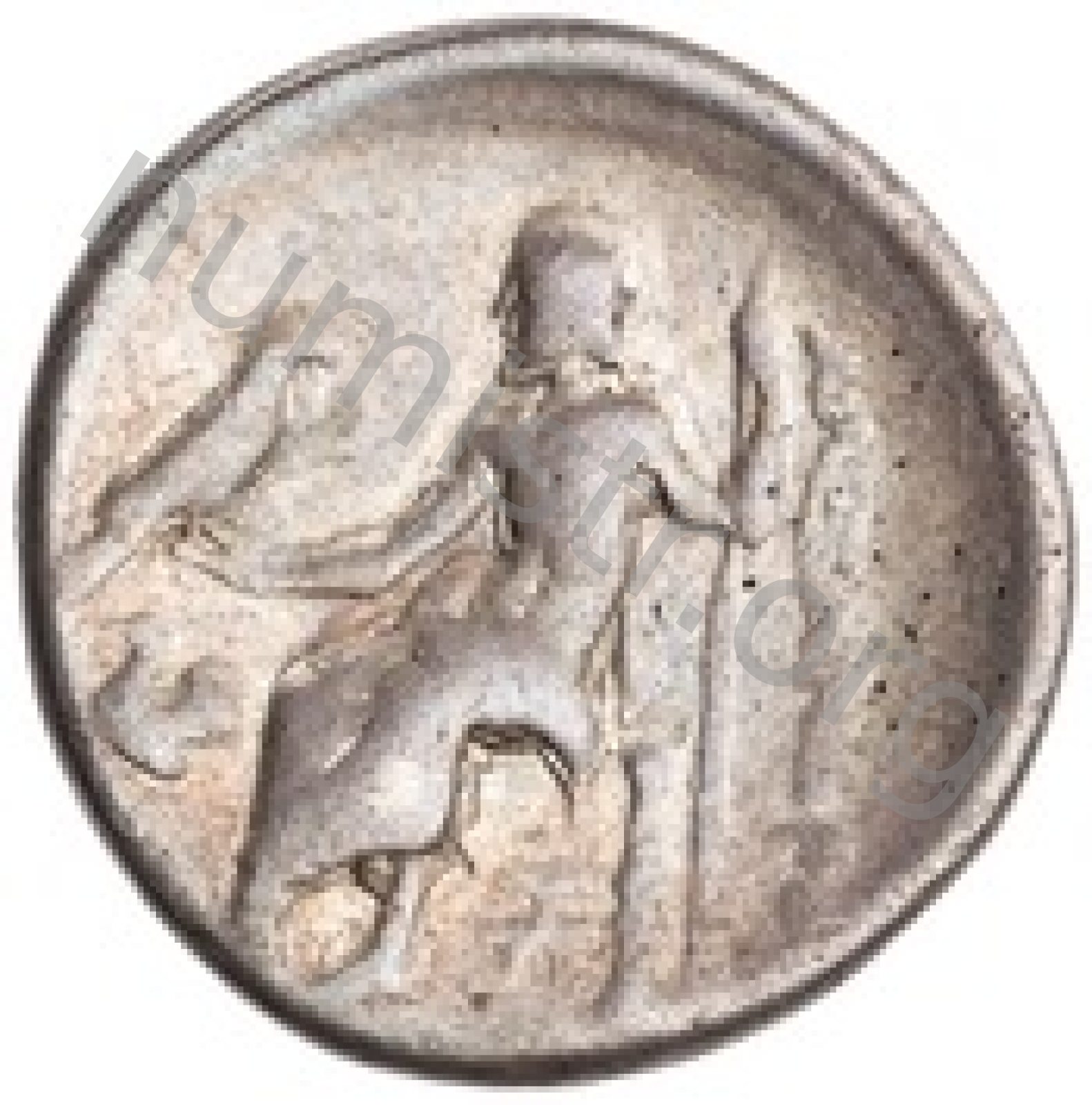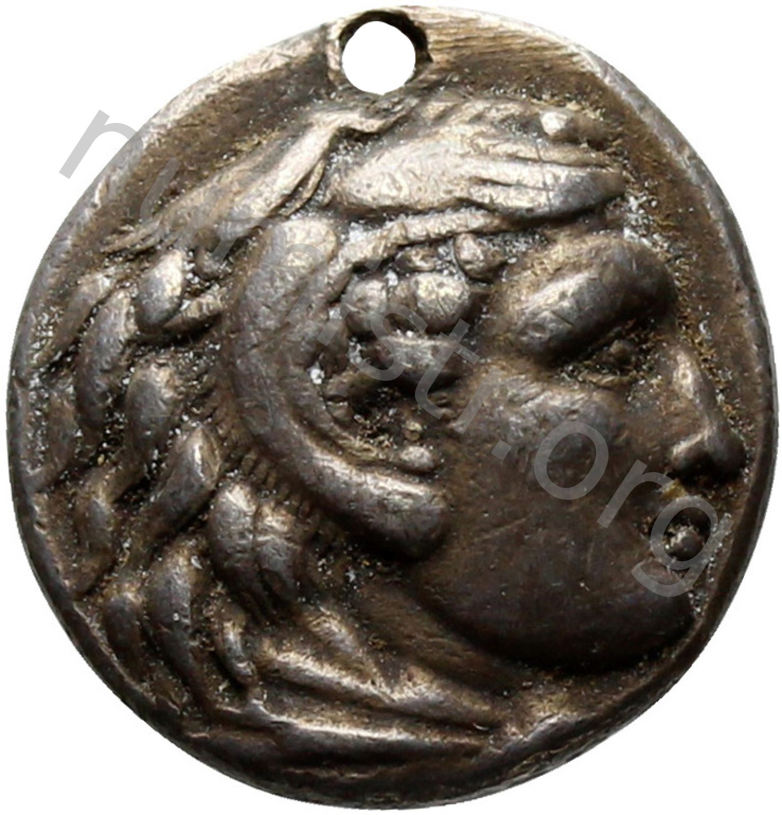 Head of beardless Heracles right wearing lion skin headdress -[en]