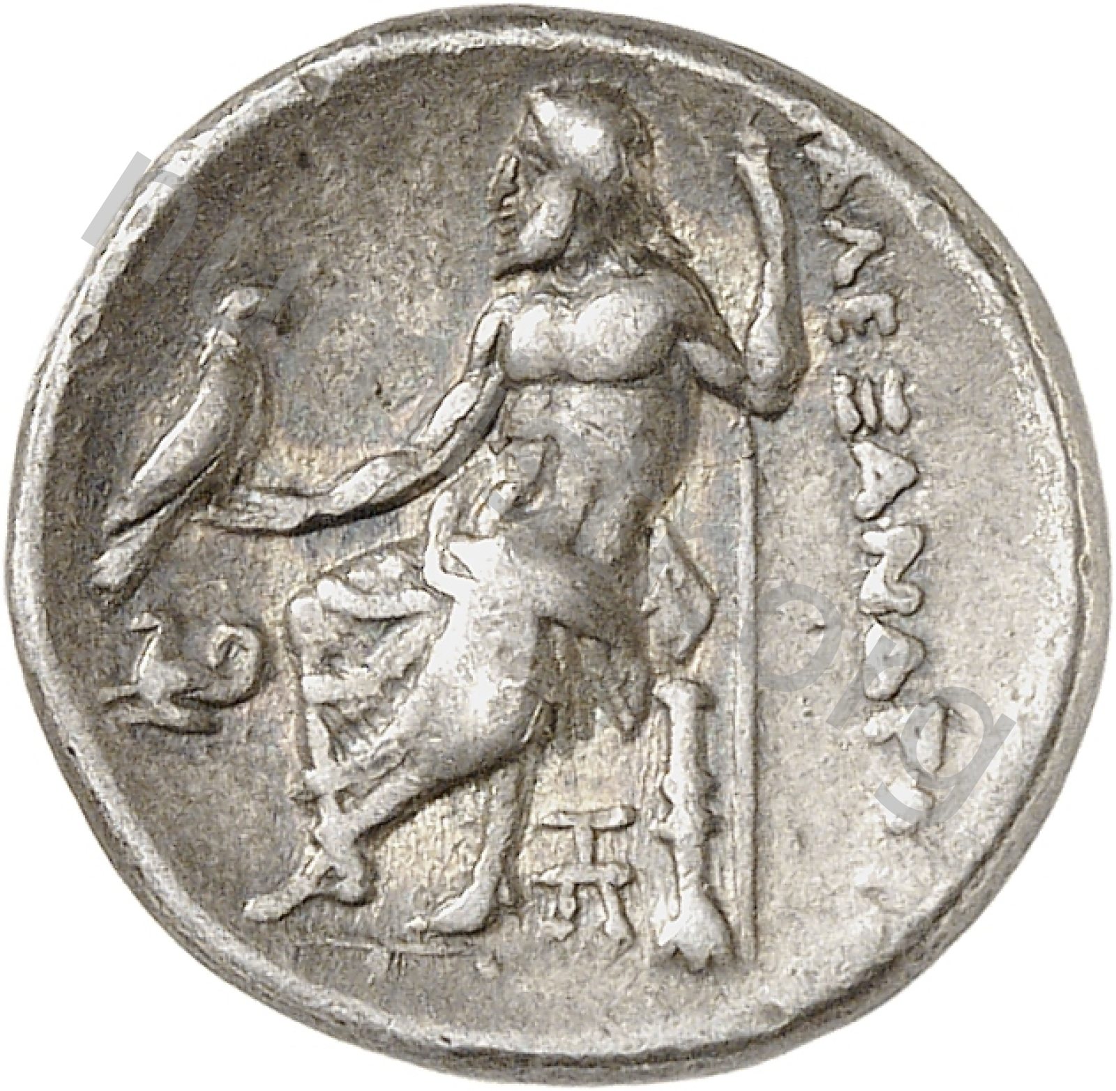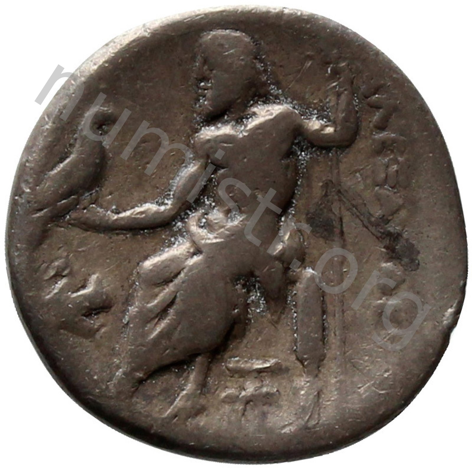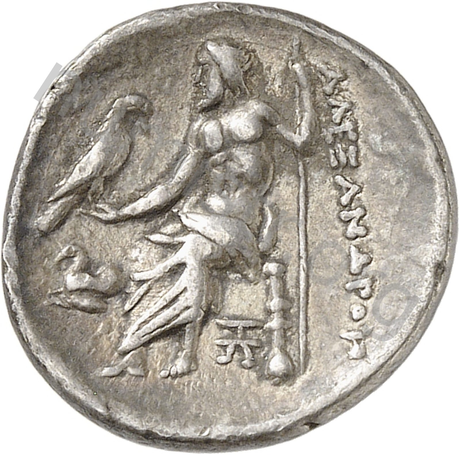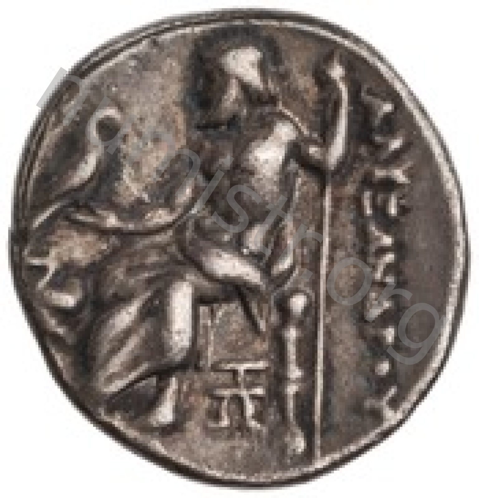 Zeus seated on stool-throne left eagle on outstretched right hand sceptre in left hand -[en]