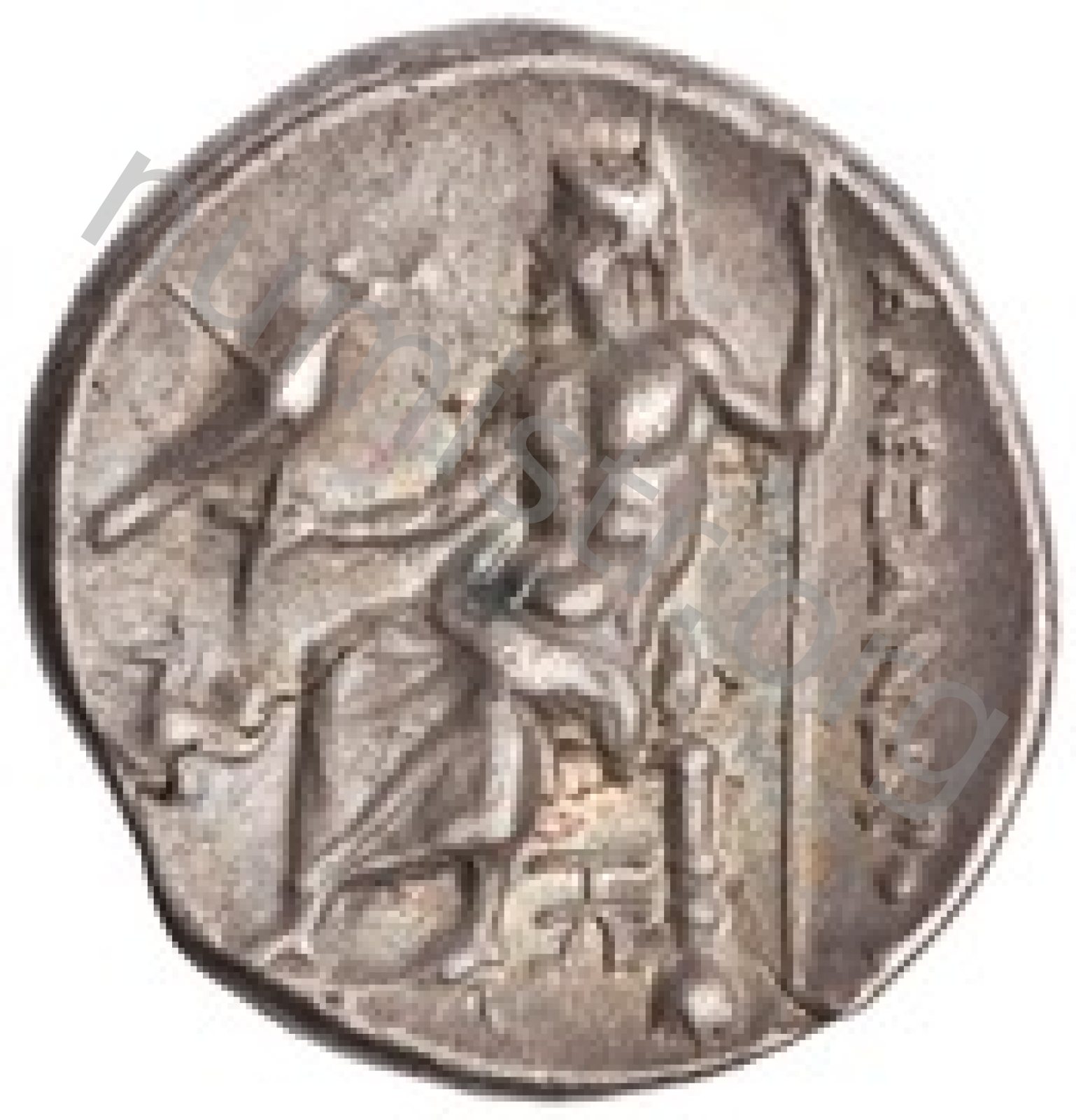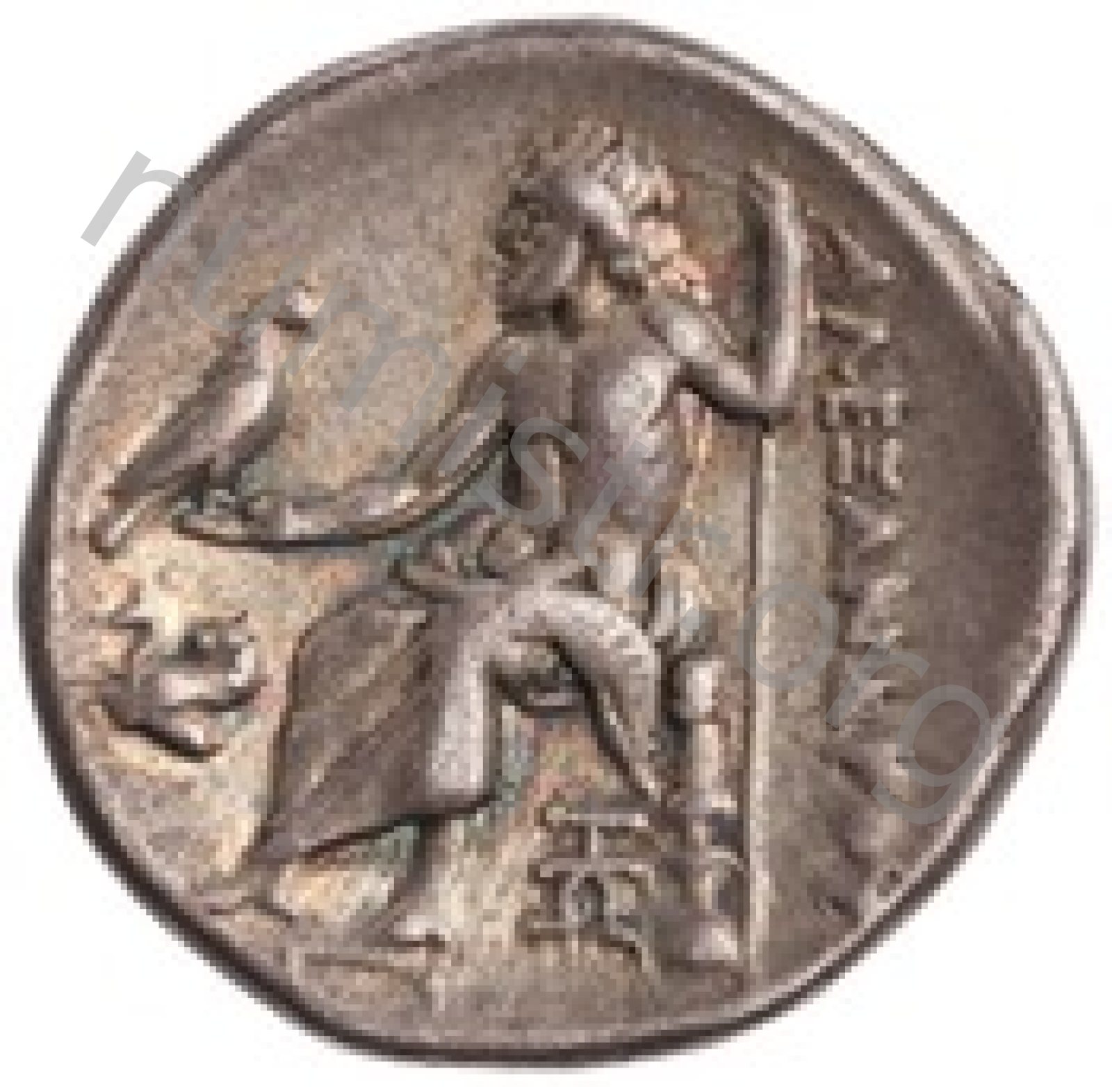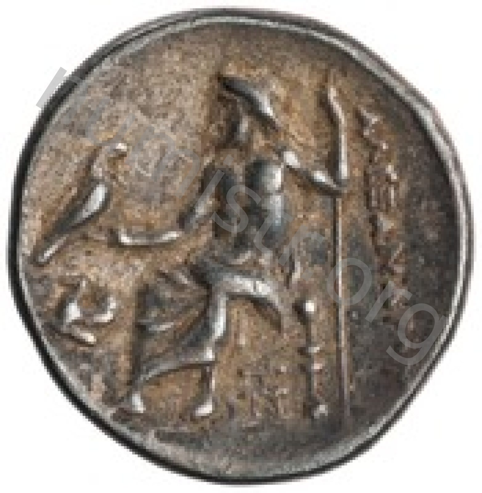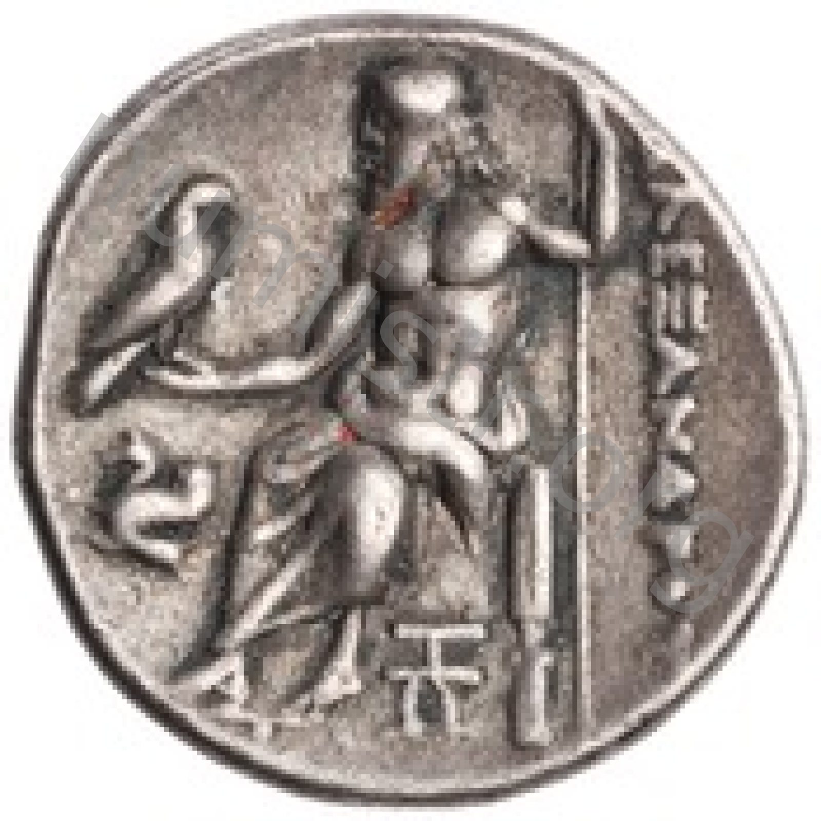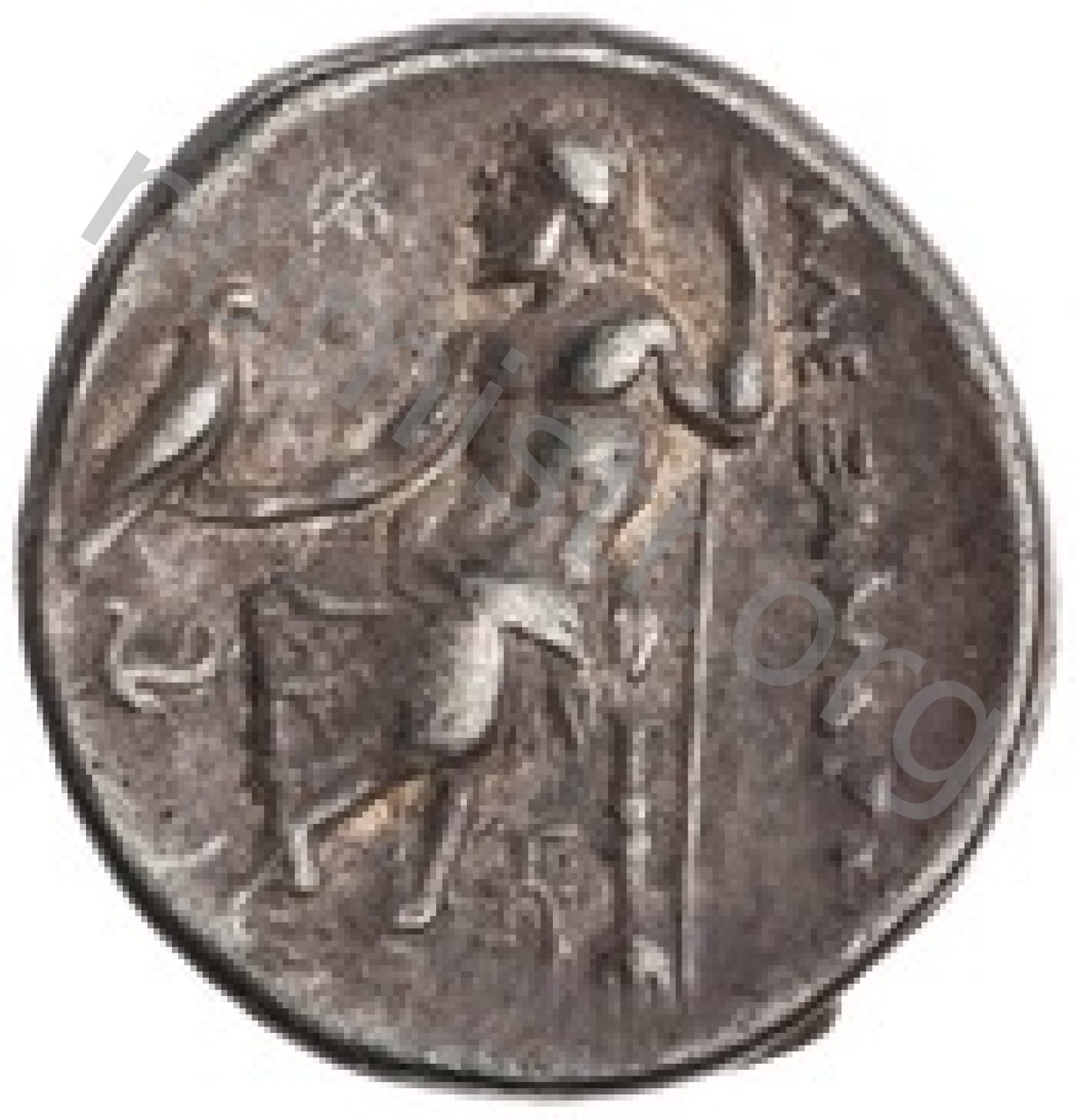 Zeus tabure-tahtta oturuyor sol elinde kartal sağ elinde asa var.