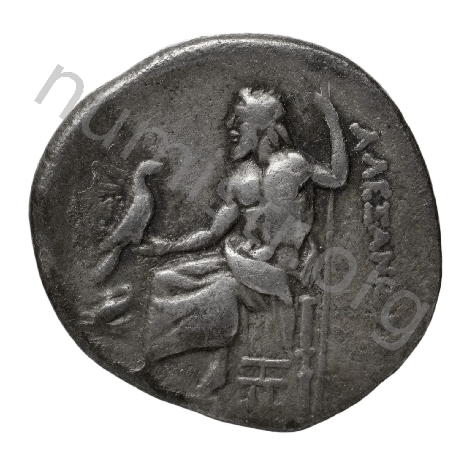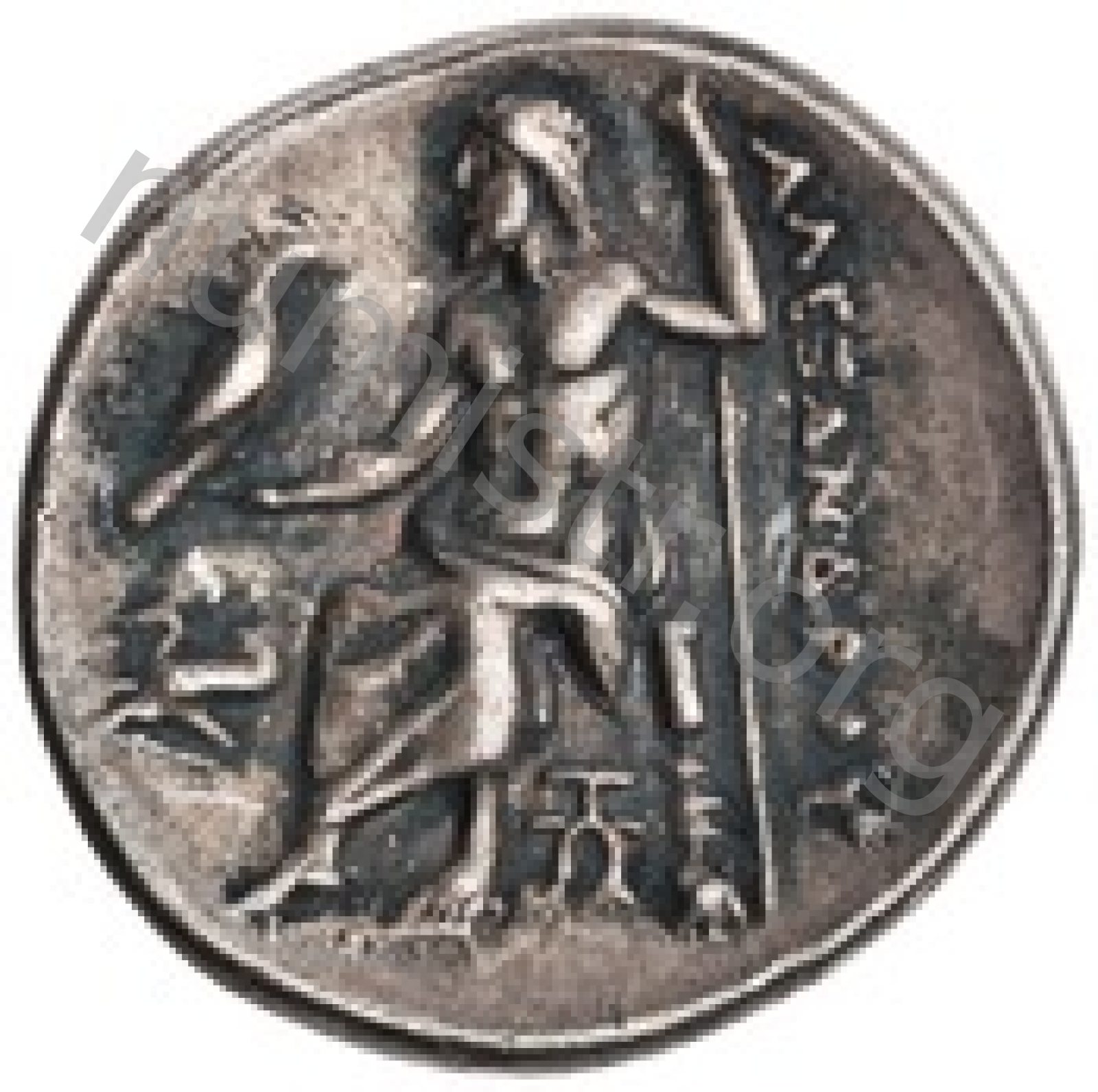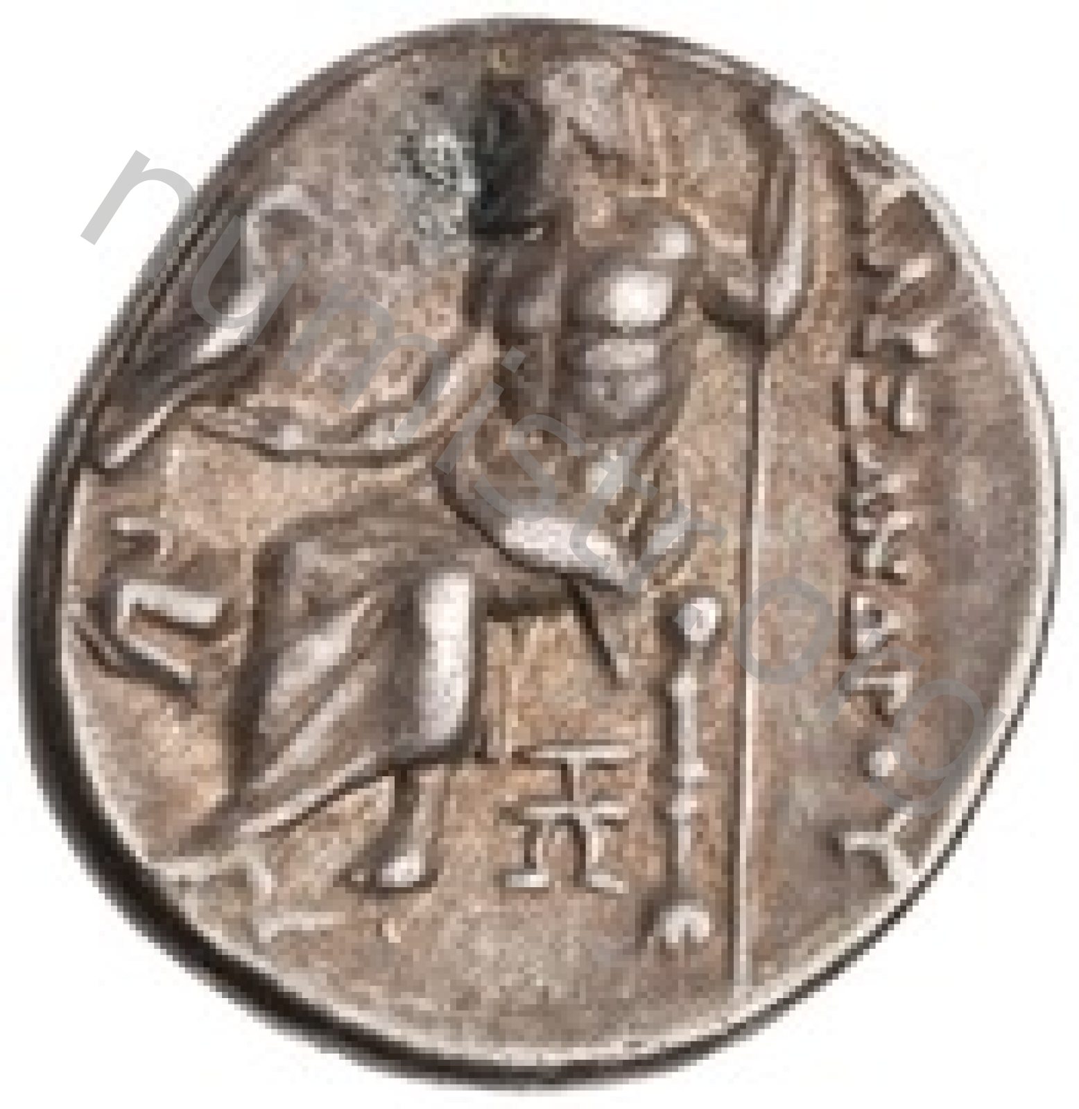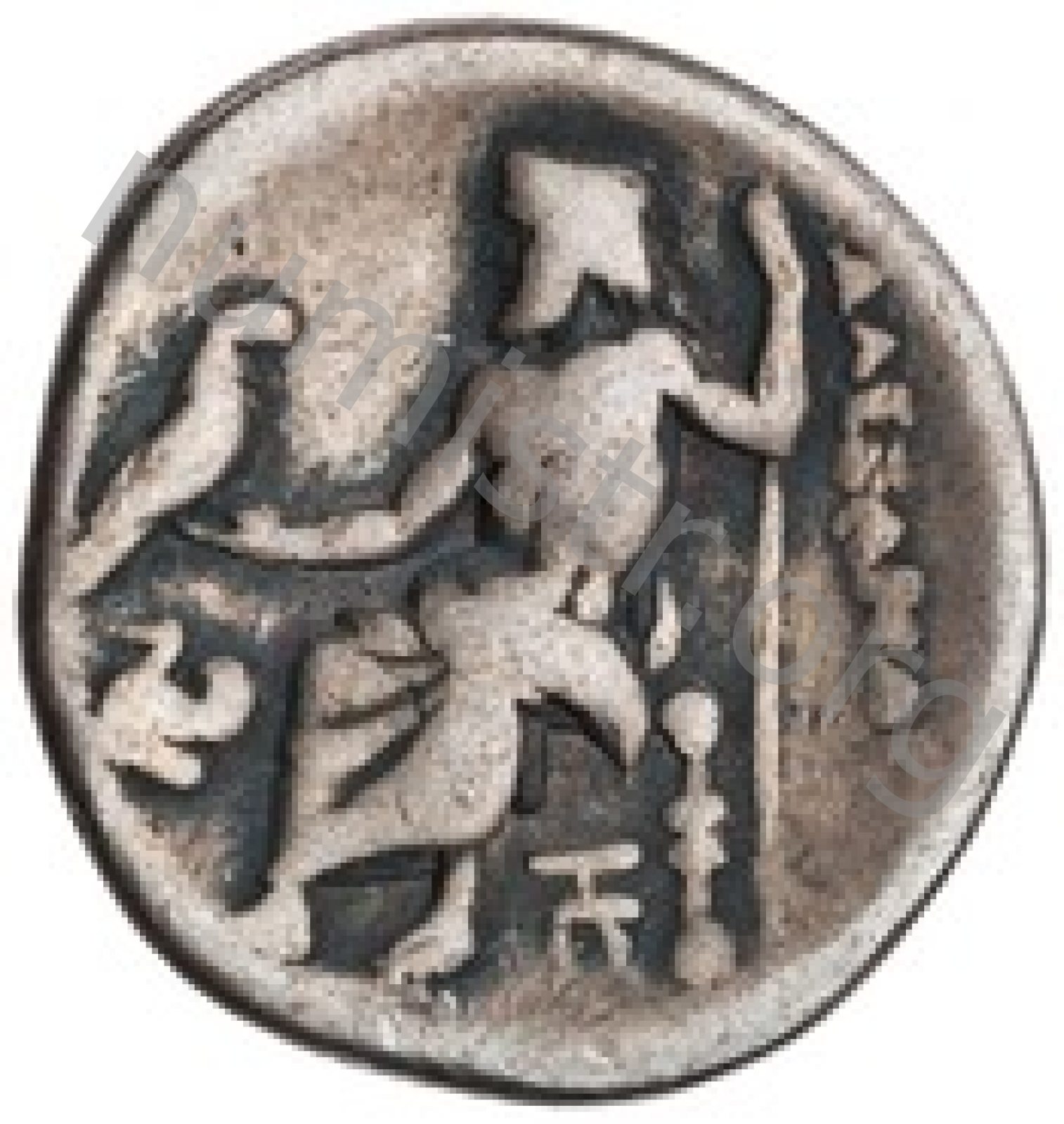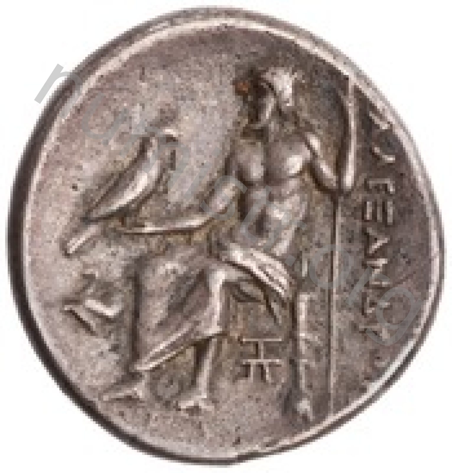 Zeus tabure-tahtta oturuyor sol elinde kartal sağ elinde asa var.