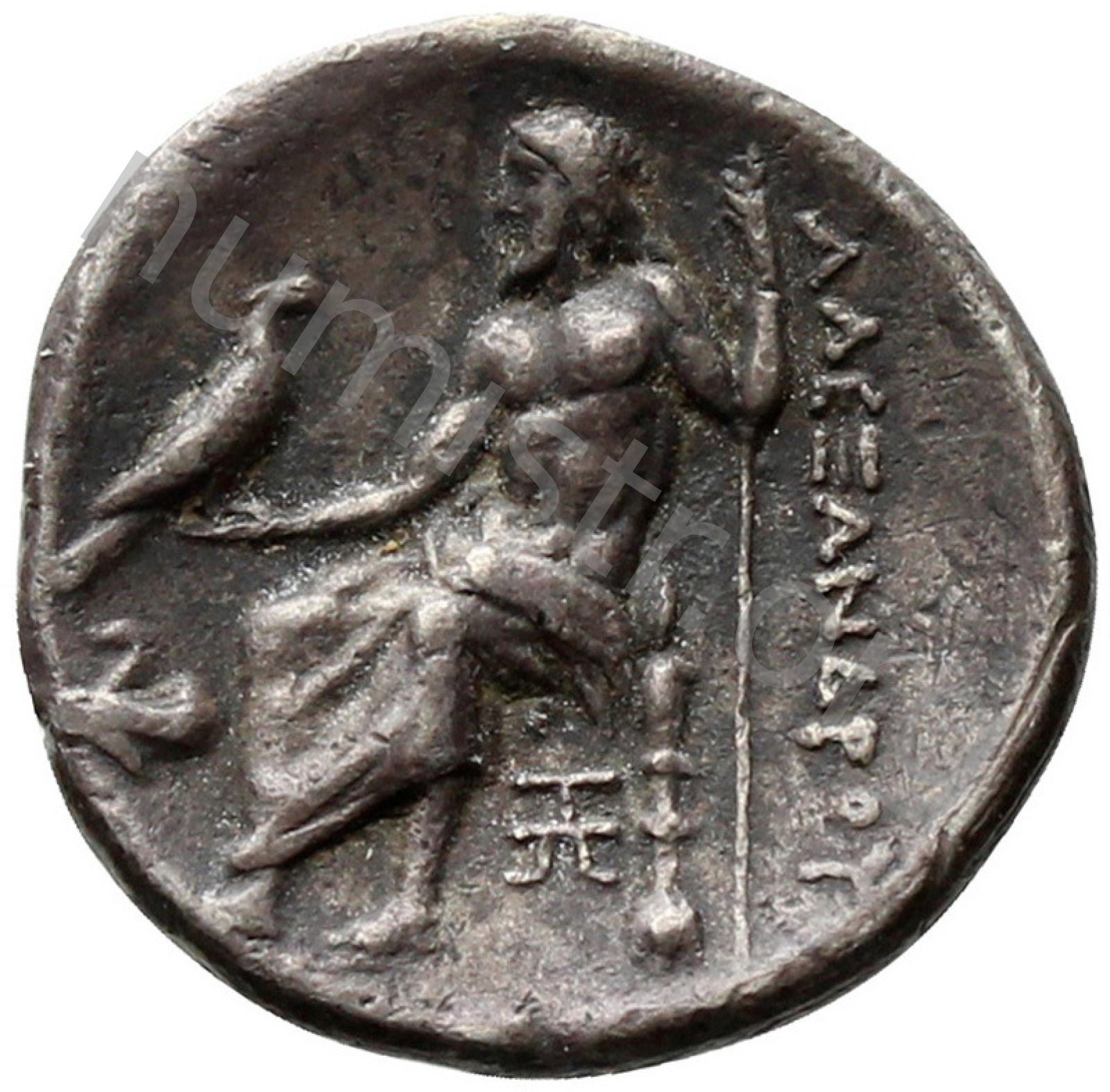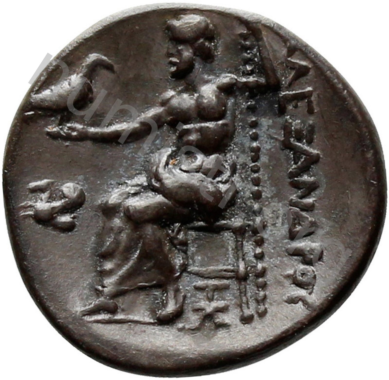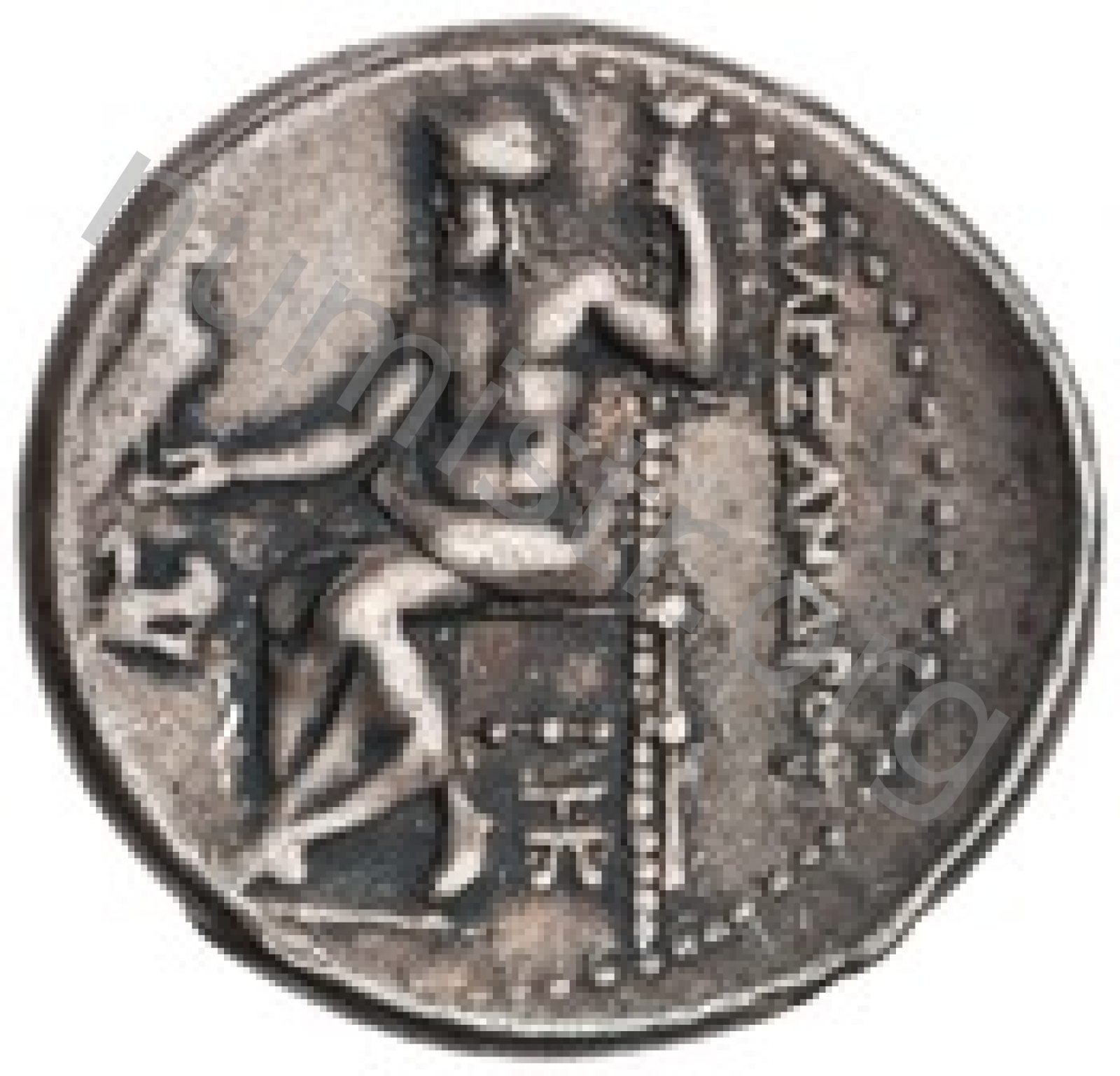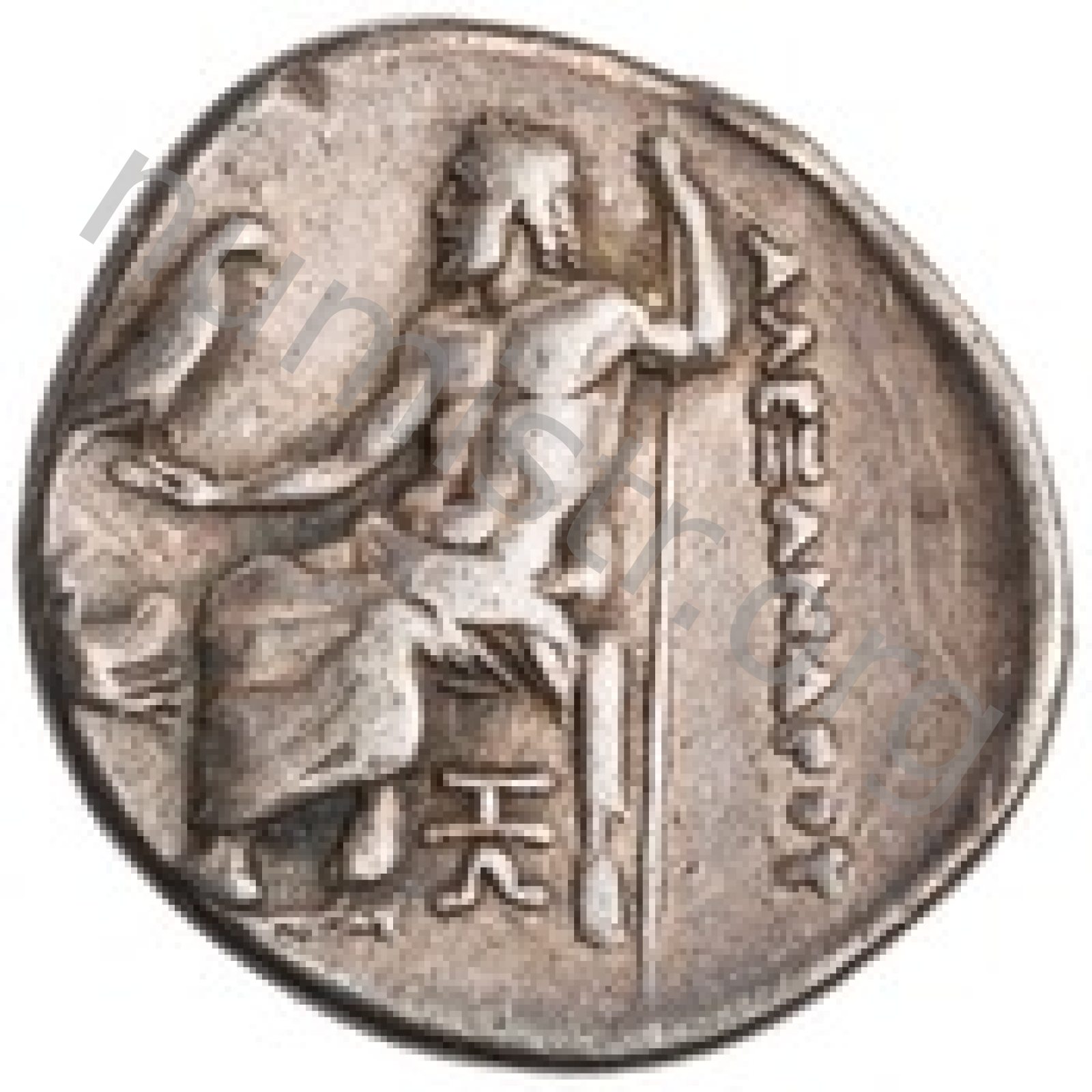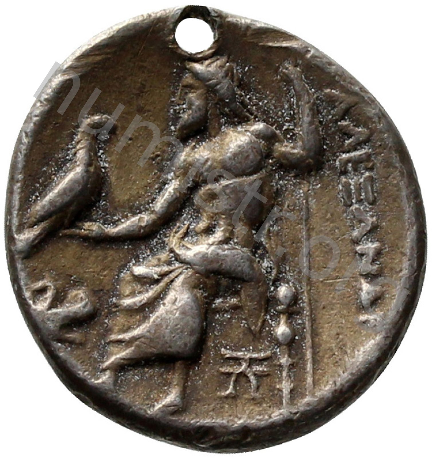 Zeus tabure-tahtta oturuyor sol elinde kartal sağ elinde asa var.