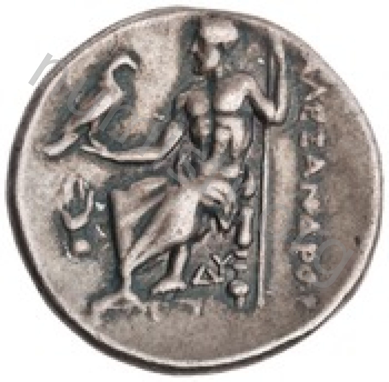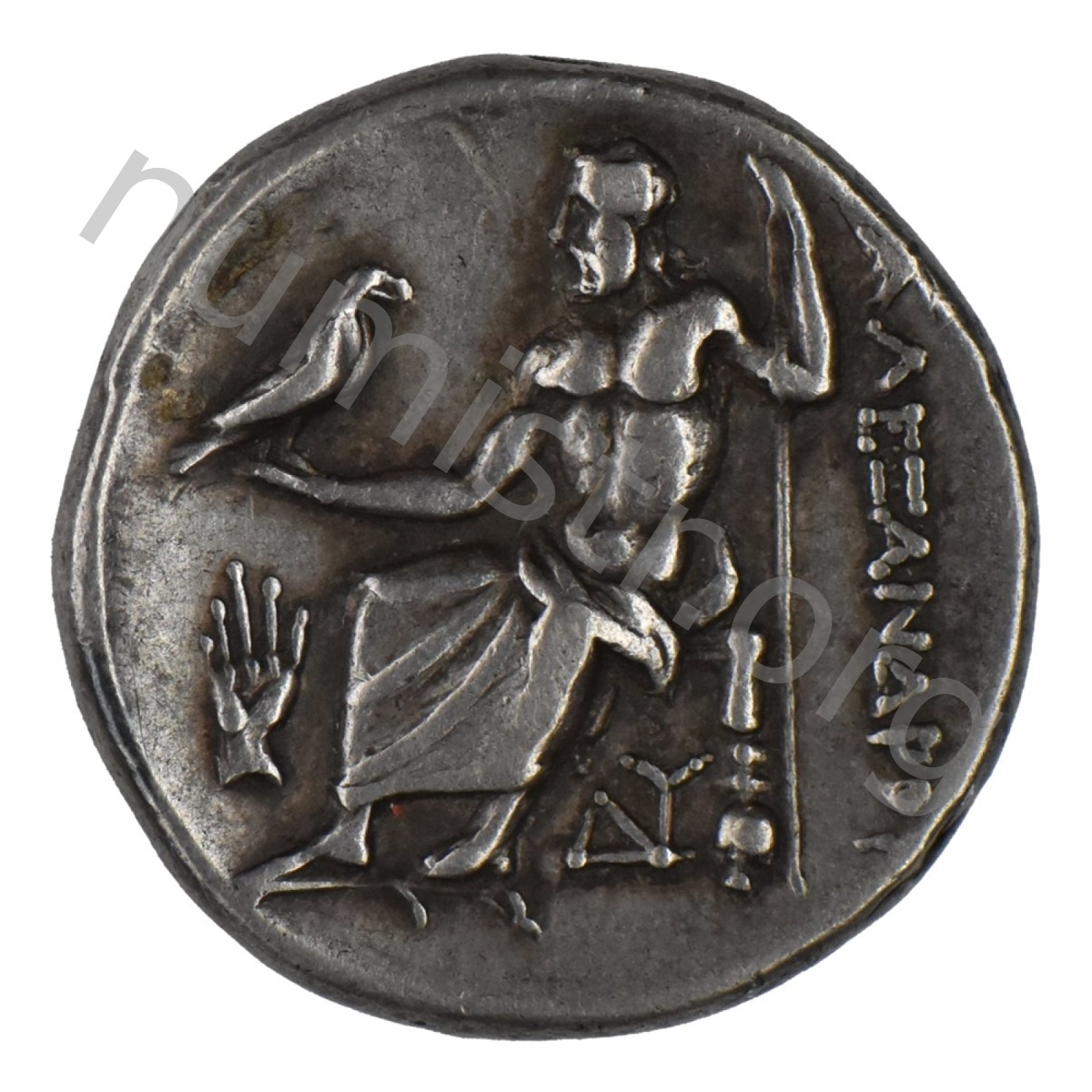 Zeus tabure-tahtta oturuyor sol elinde kartal sağ elinde asa var.