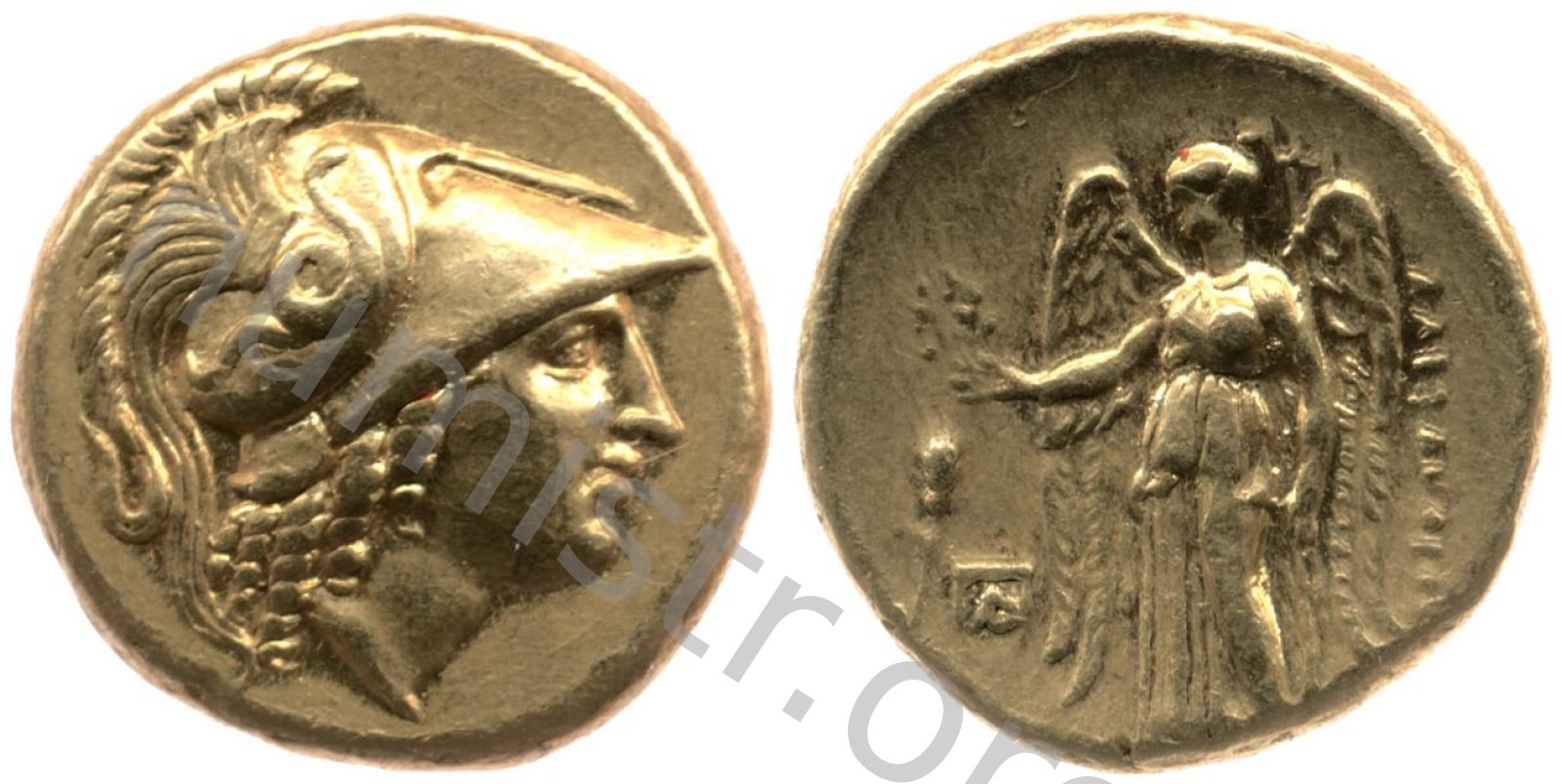Head of Athena right wearing Corinthian helmet with crest -[en]