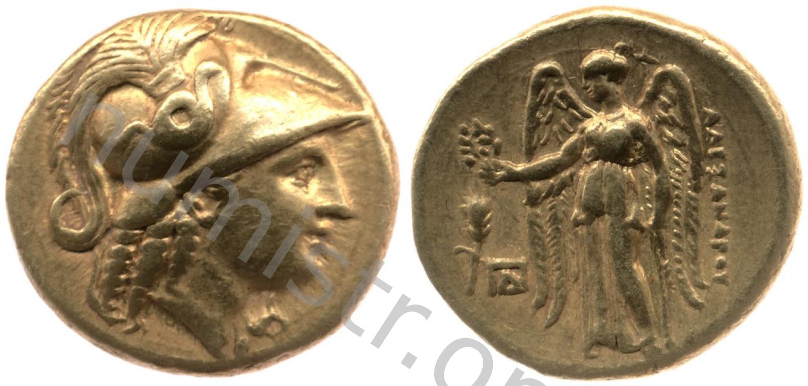 Nike standing left holding wreath in right hand and stylis in her left hand -[en]