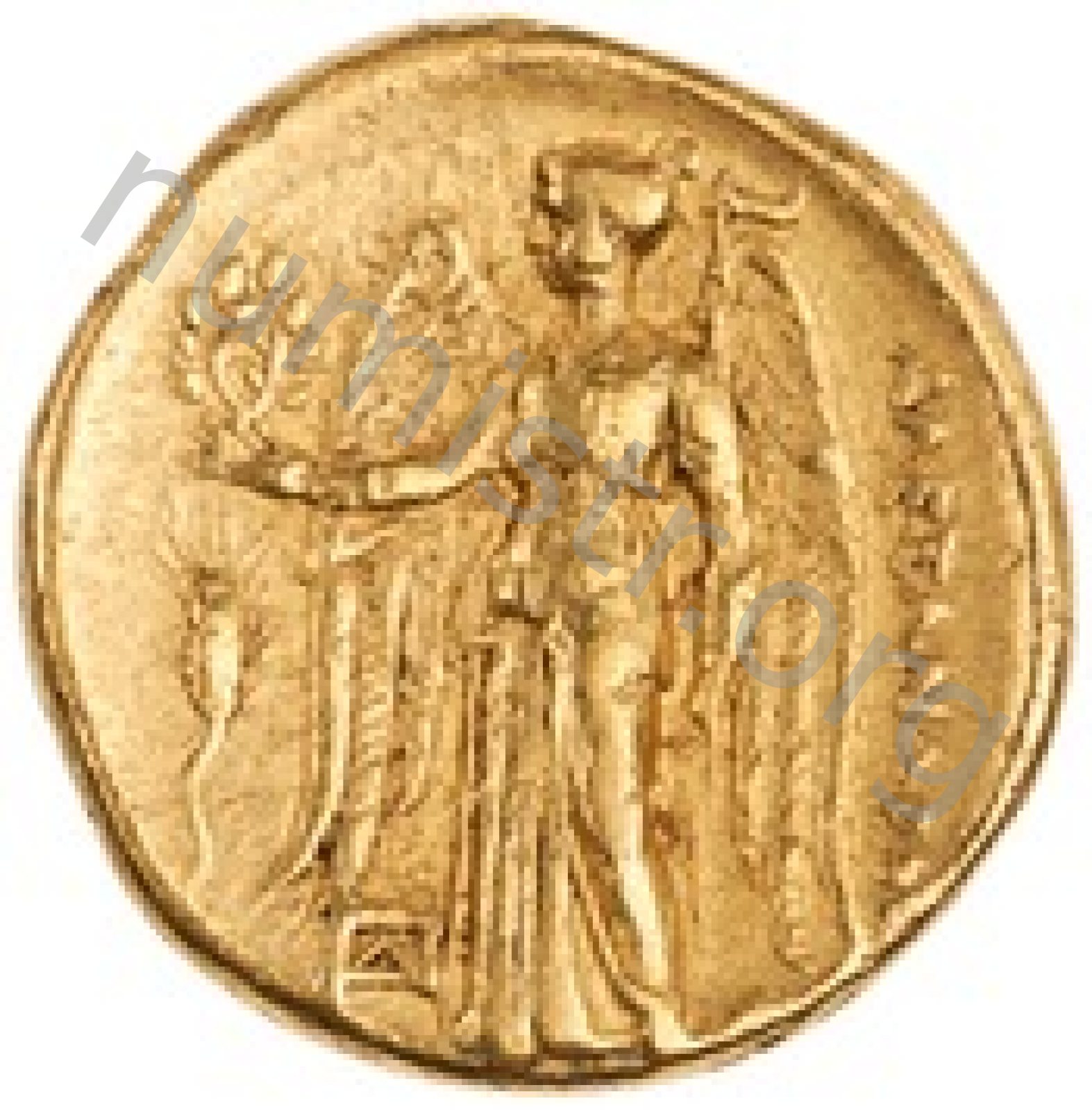Nike standing left holding wreath in right hand and stylis in her left hand -[en]