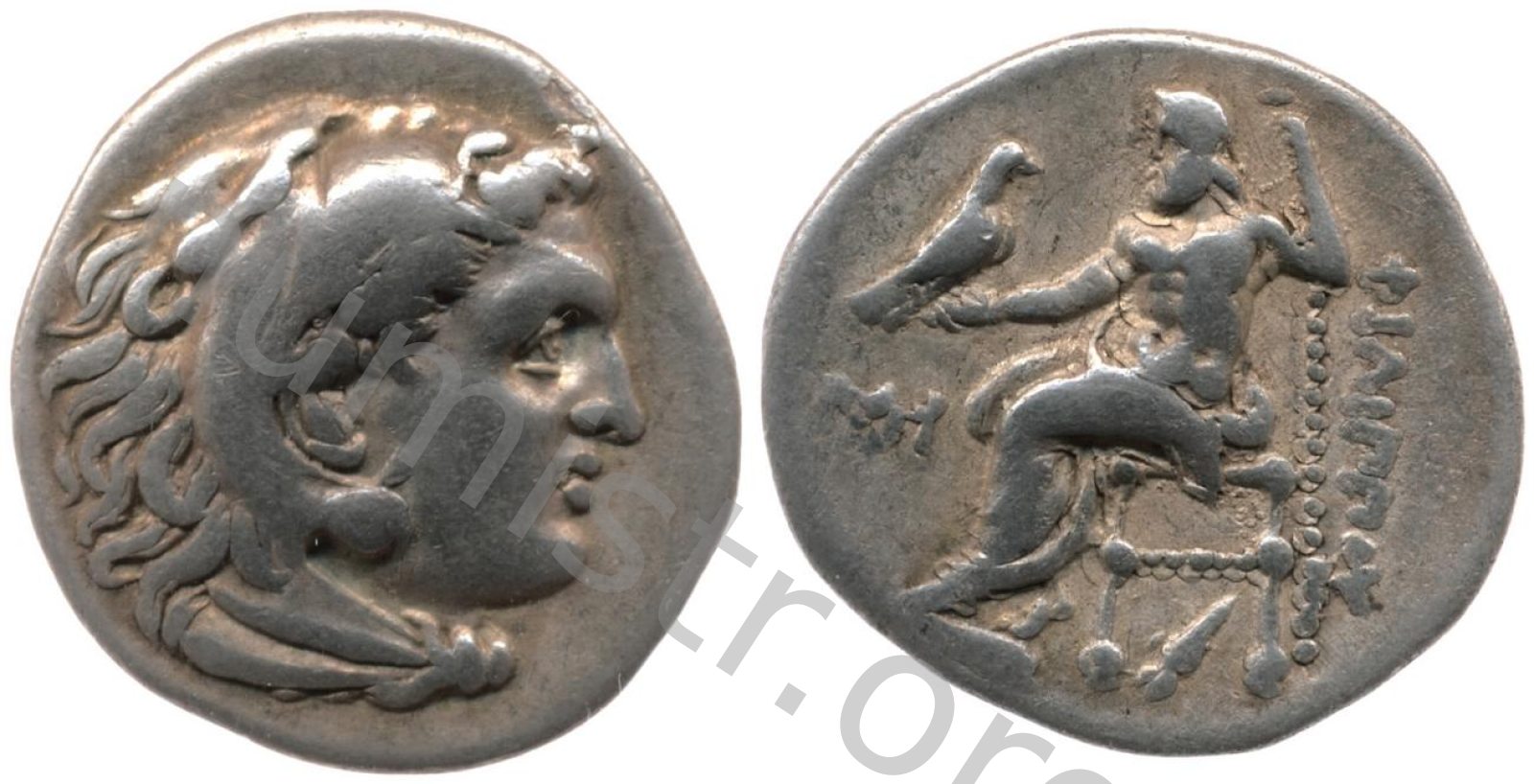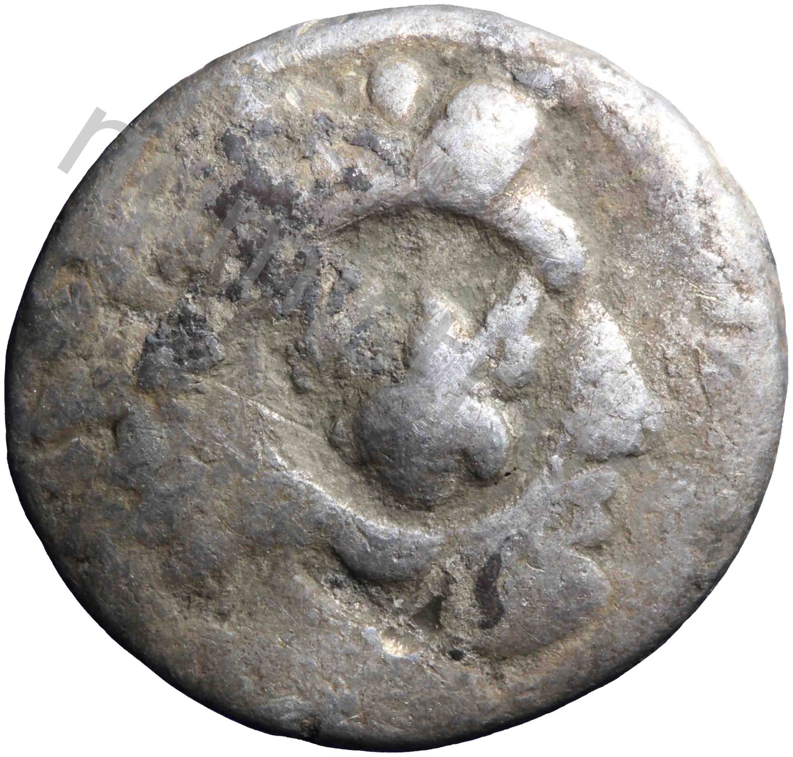 Head of beardless Heracles right wearing lion skin headdress -[en]