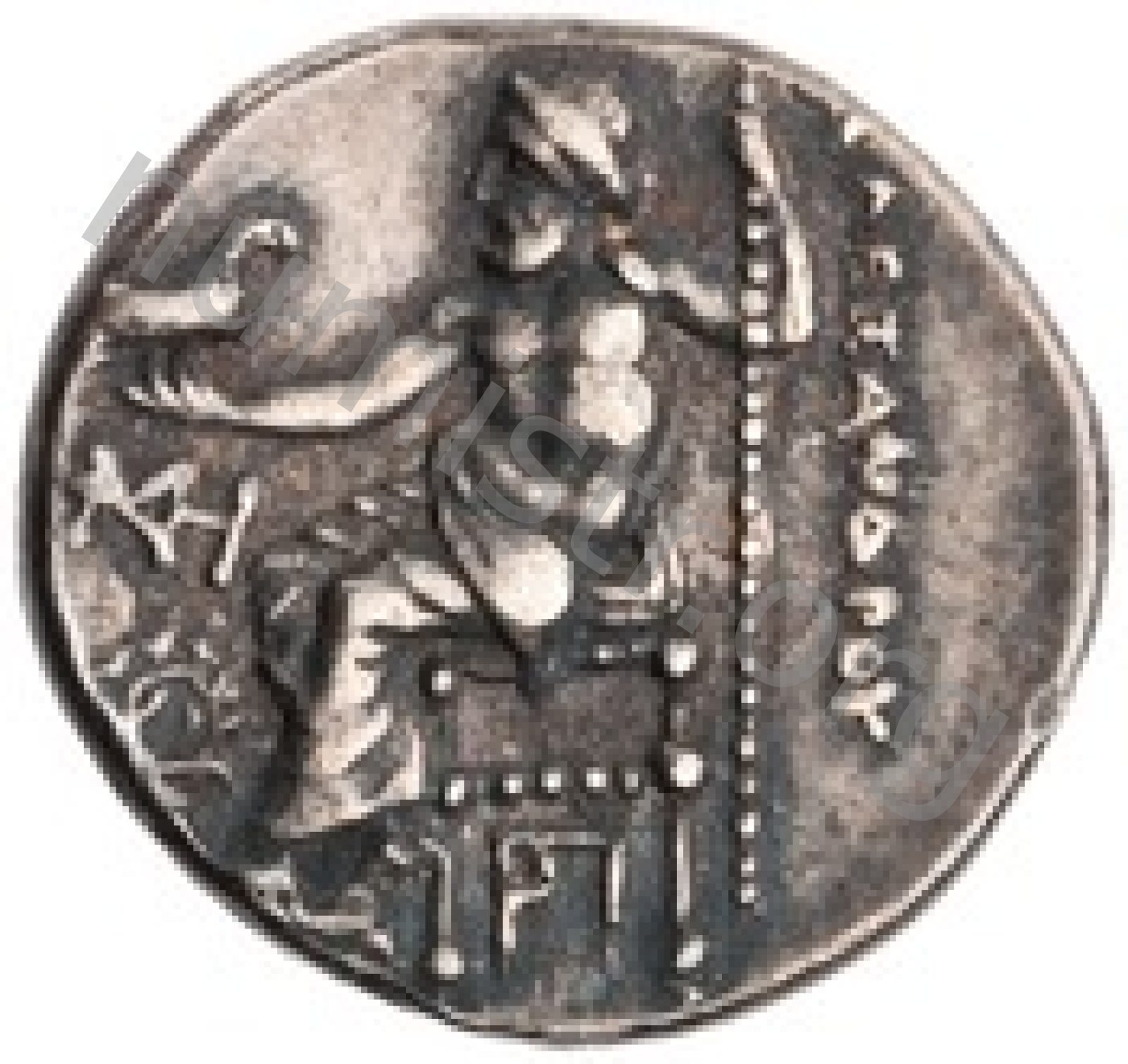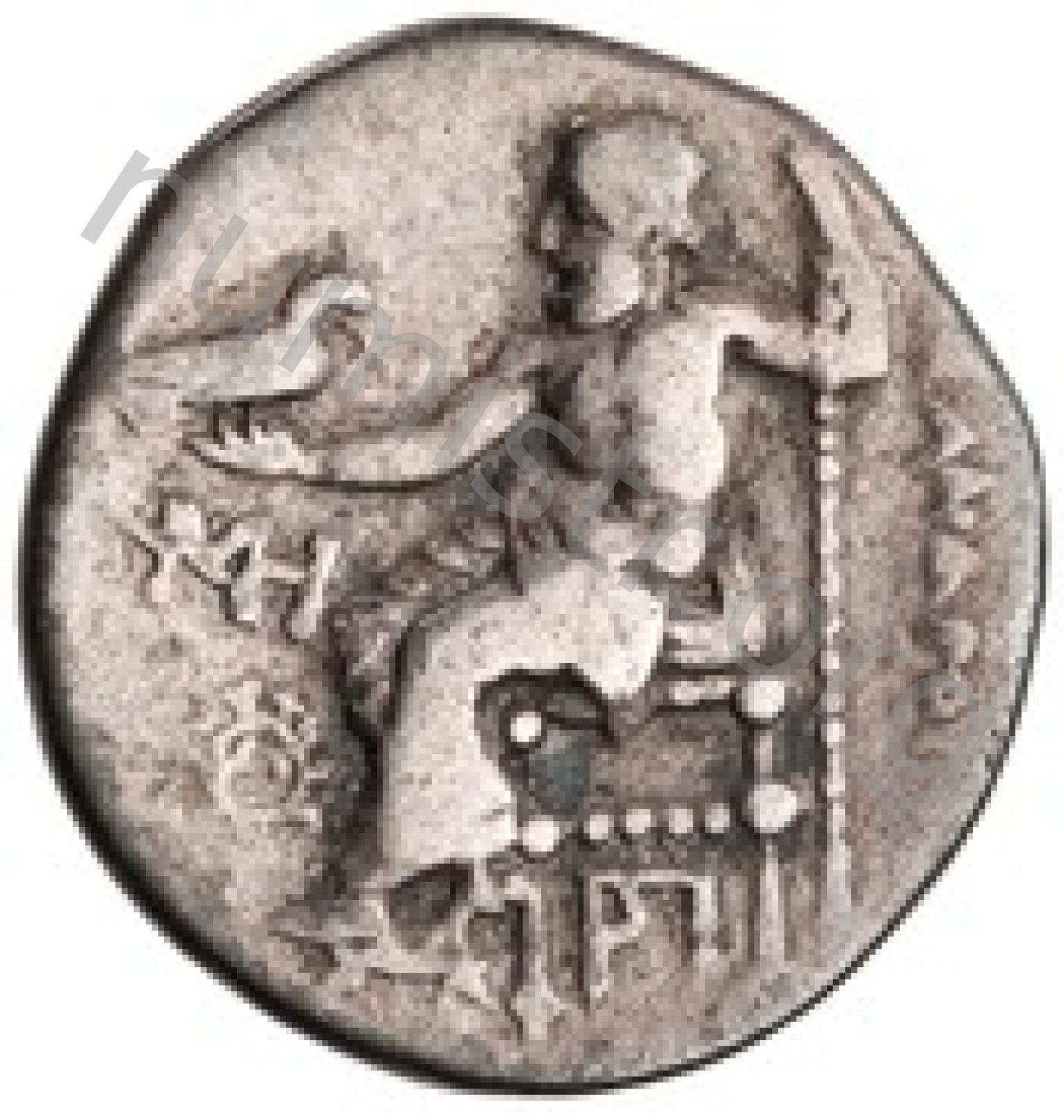 Zeus tabure-tahtta oturuyor sol elinde kartal sağ elinde asa var.