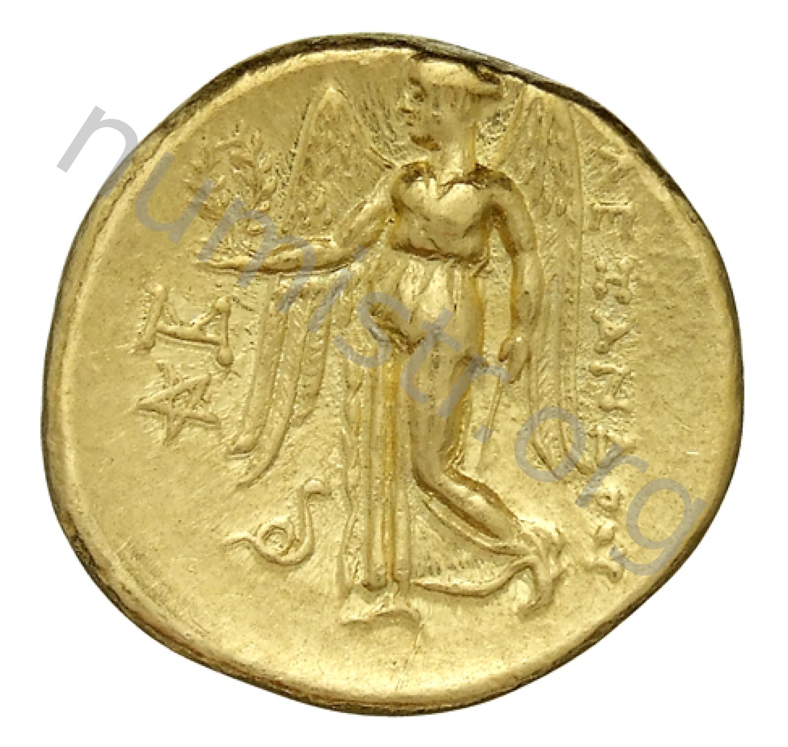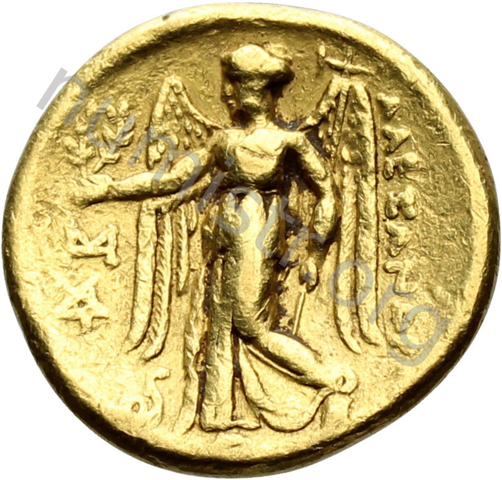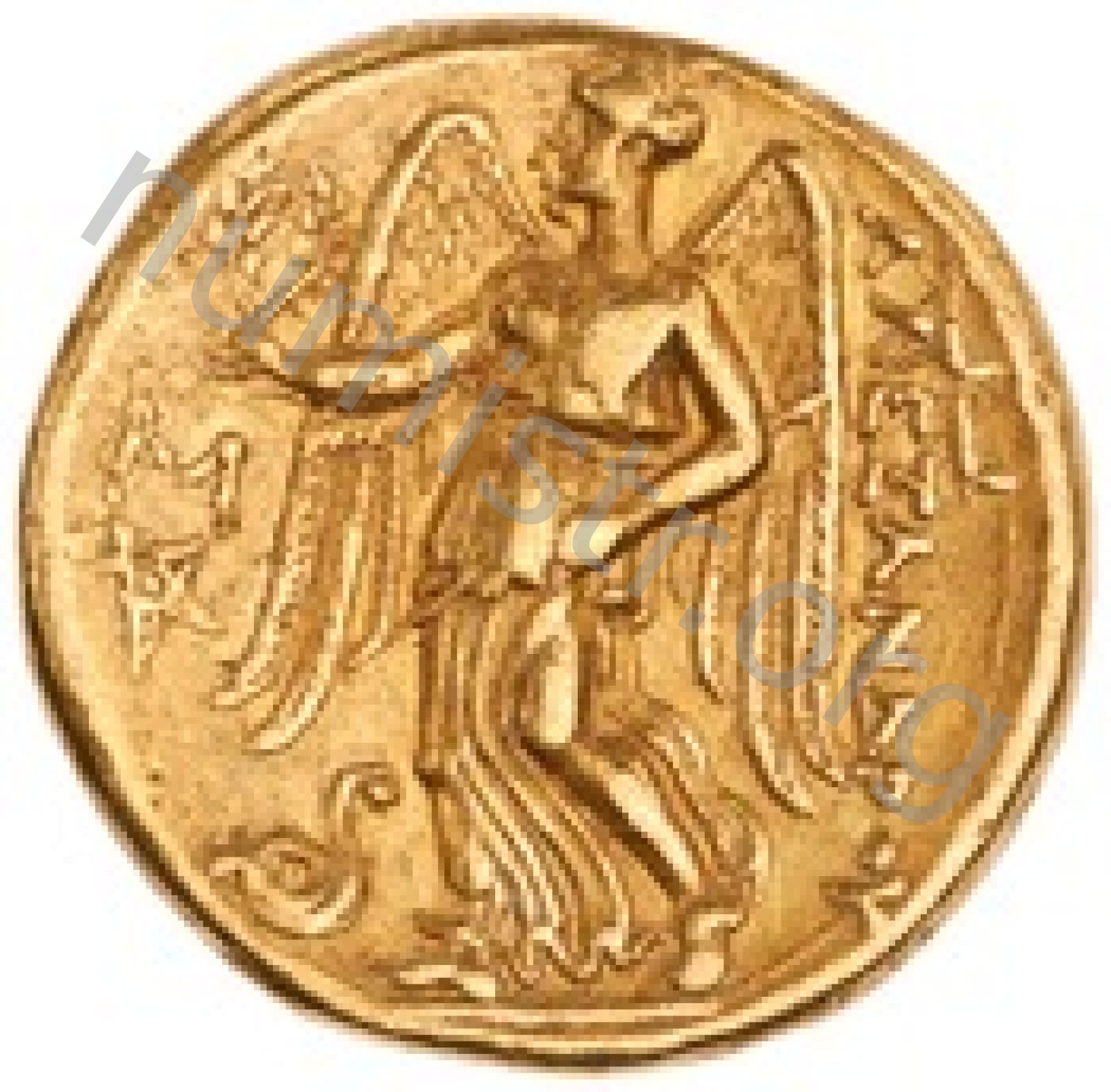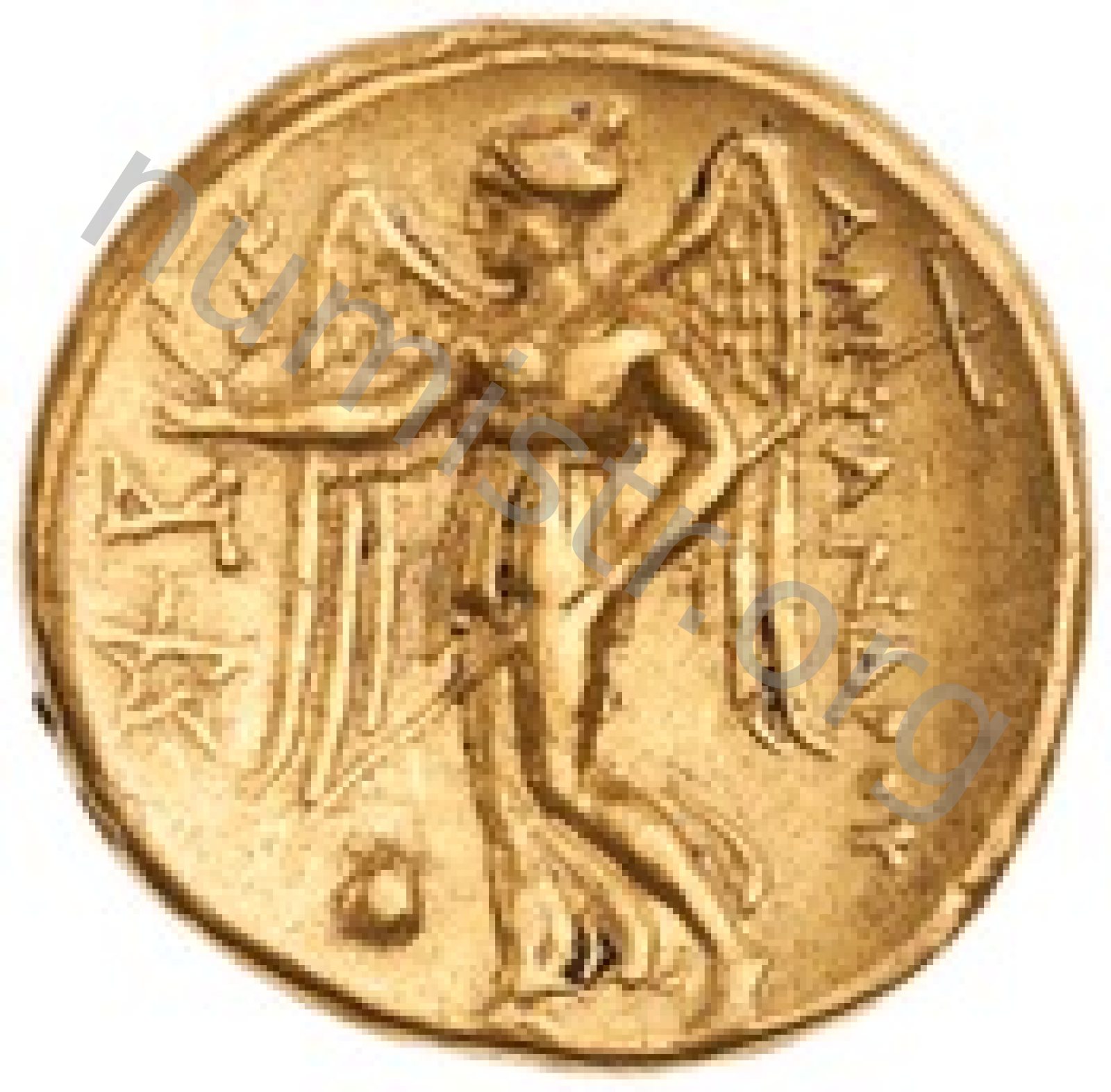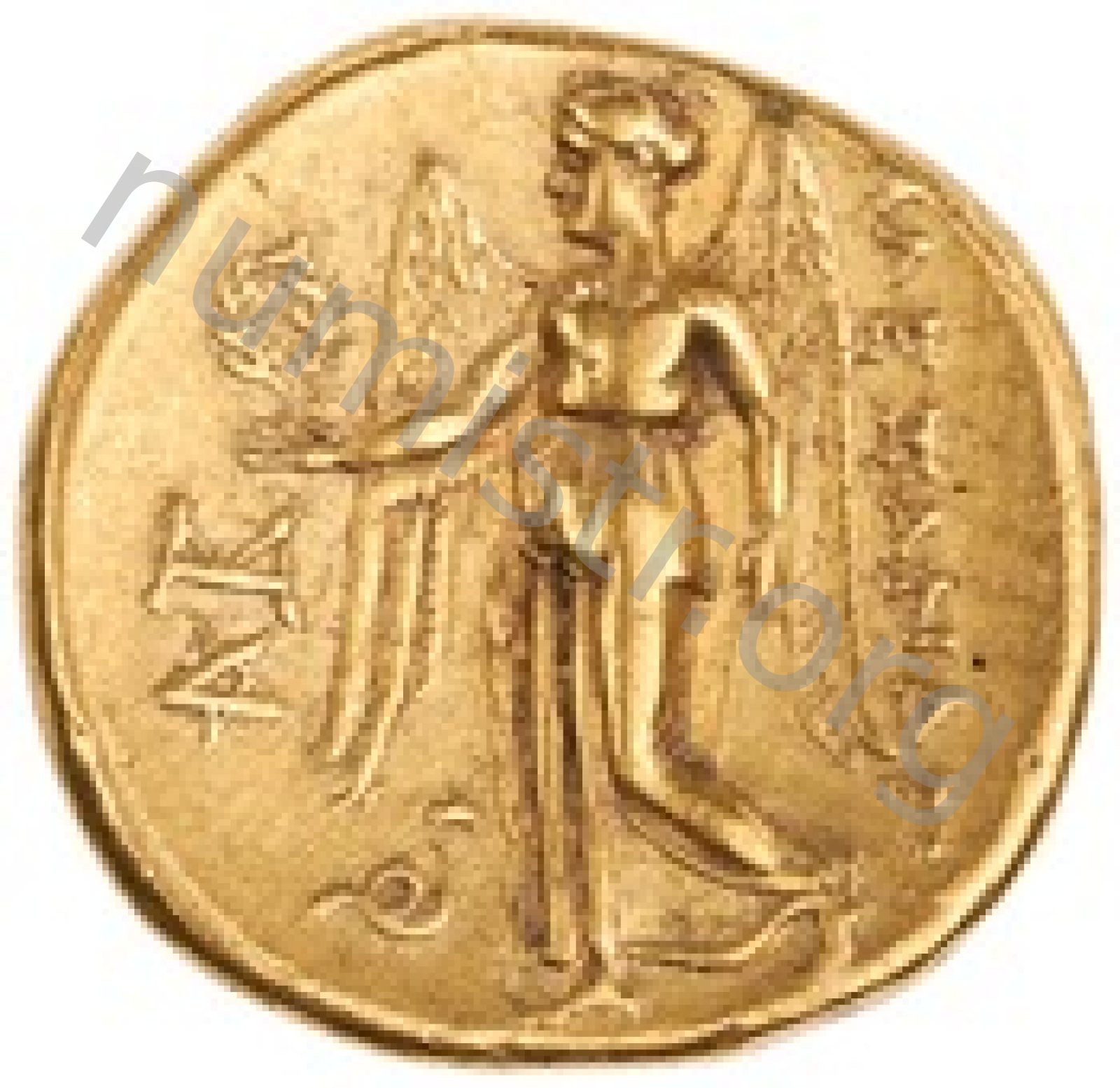 Nike standing left holding wreath in right hand and stylis in her left hand -[en]
