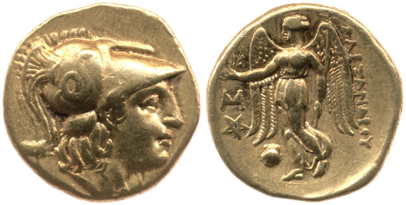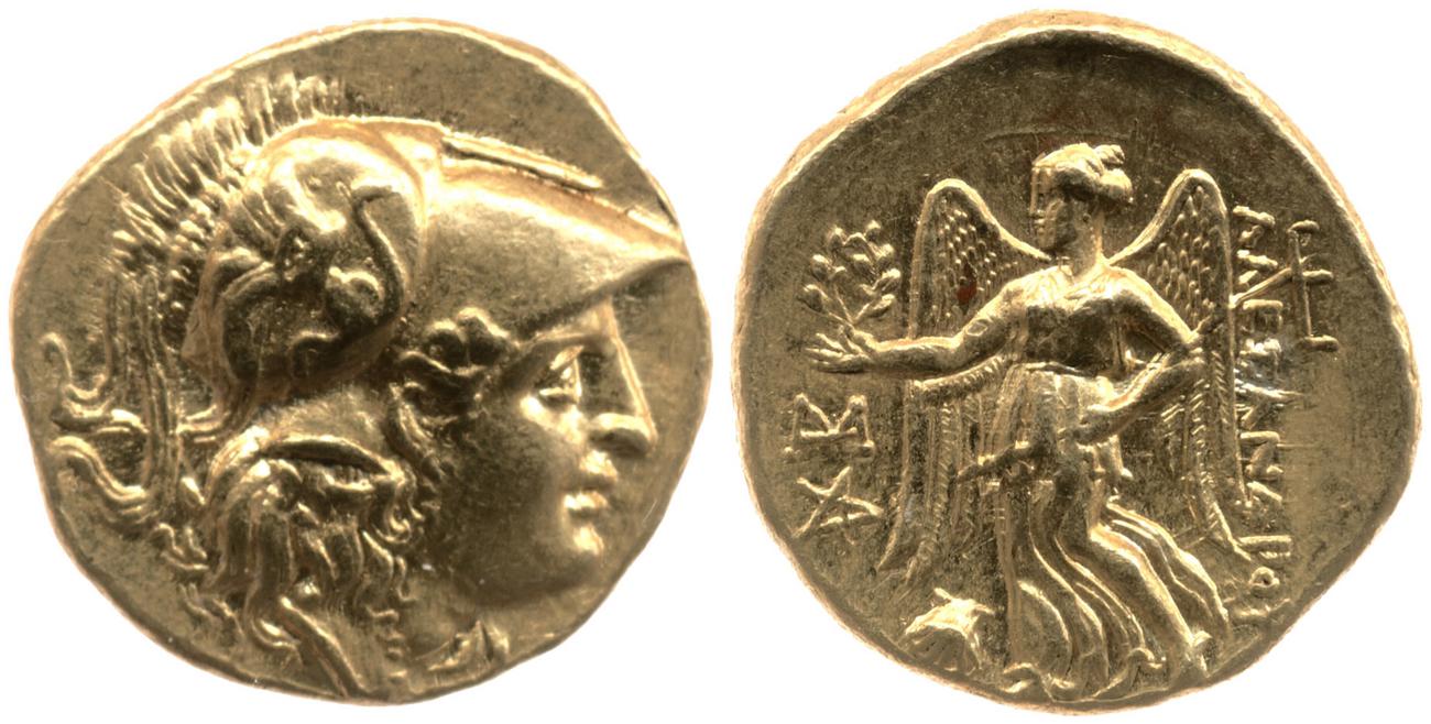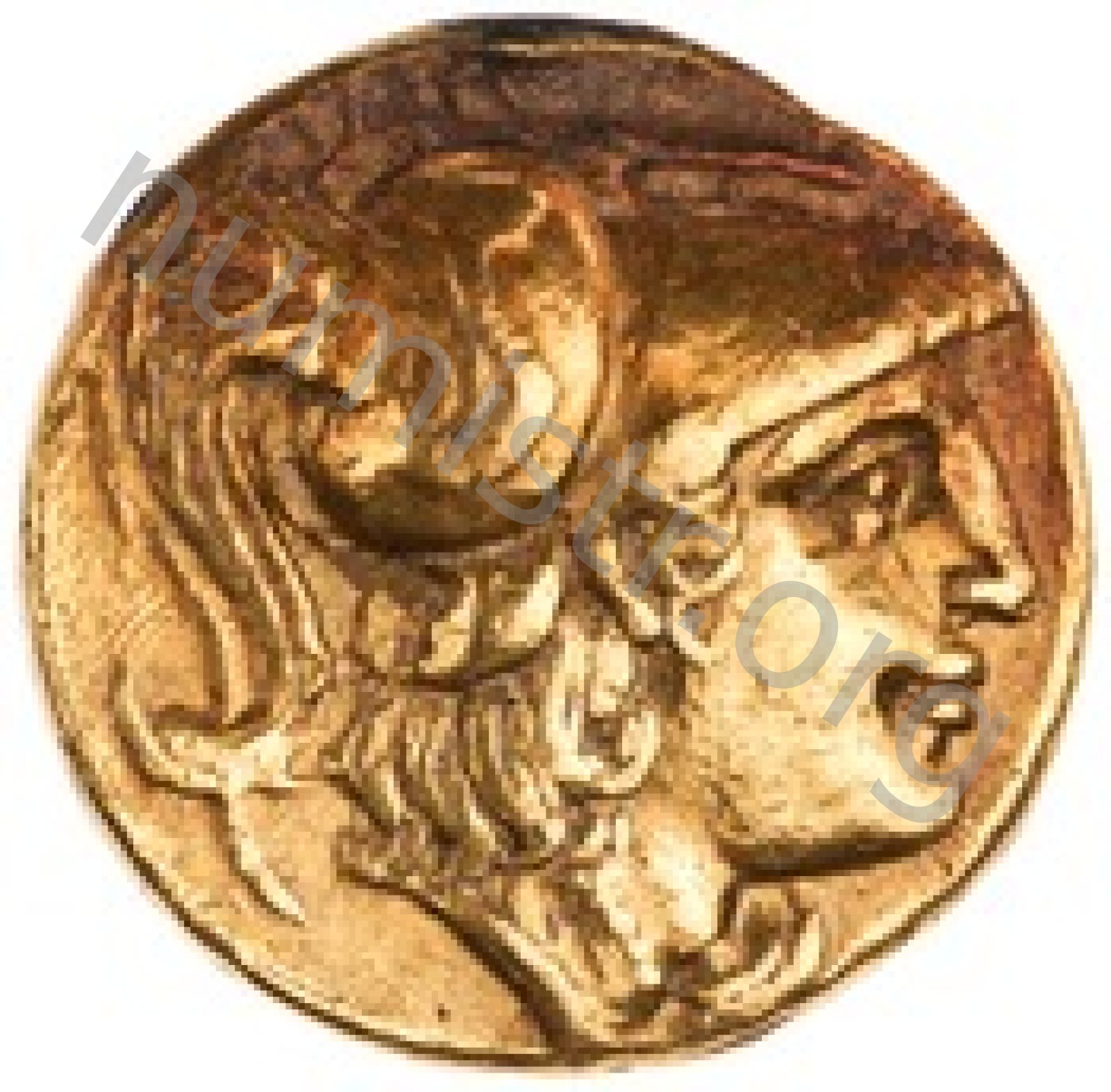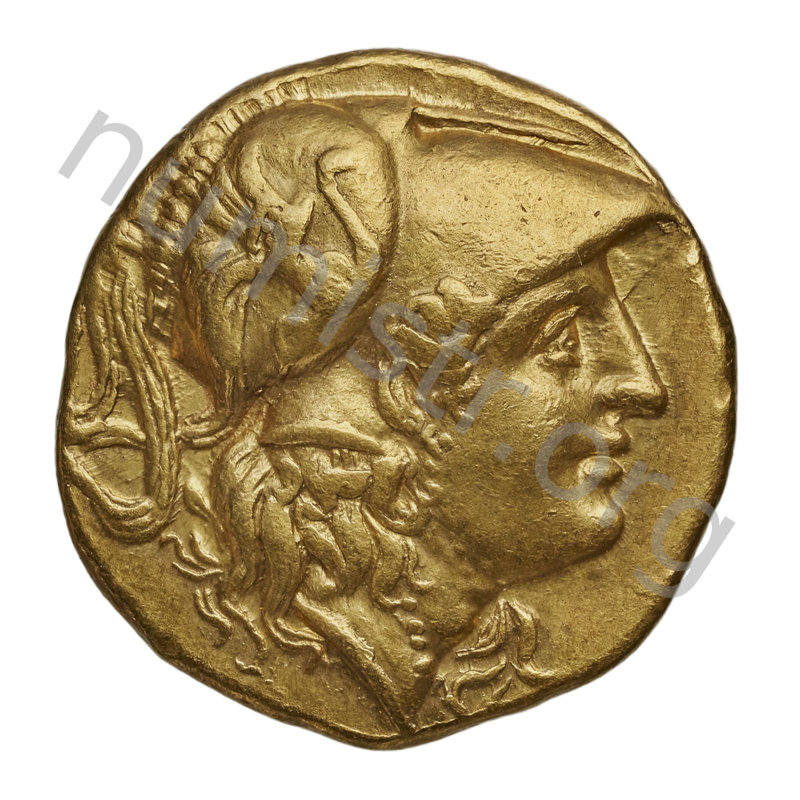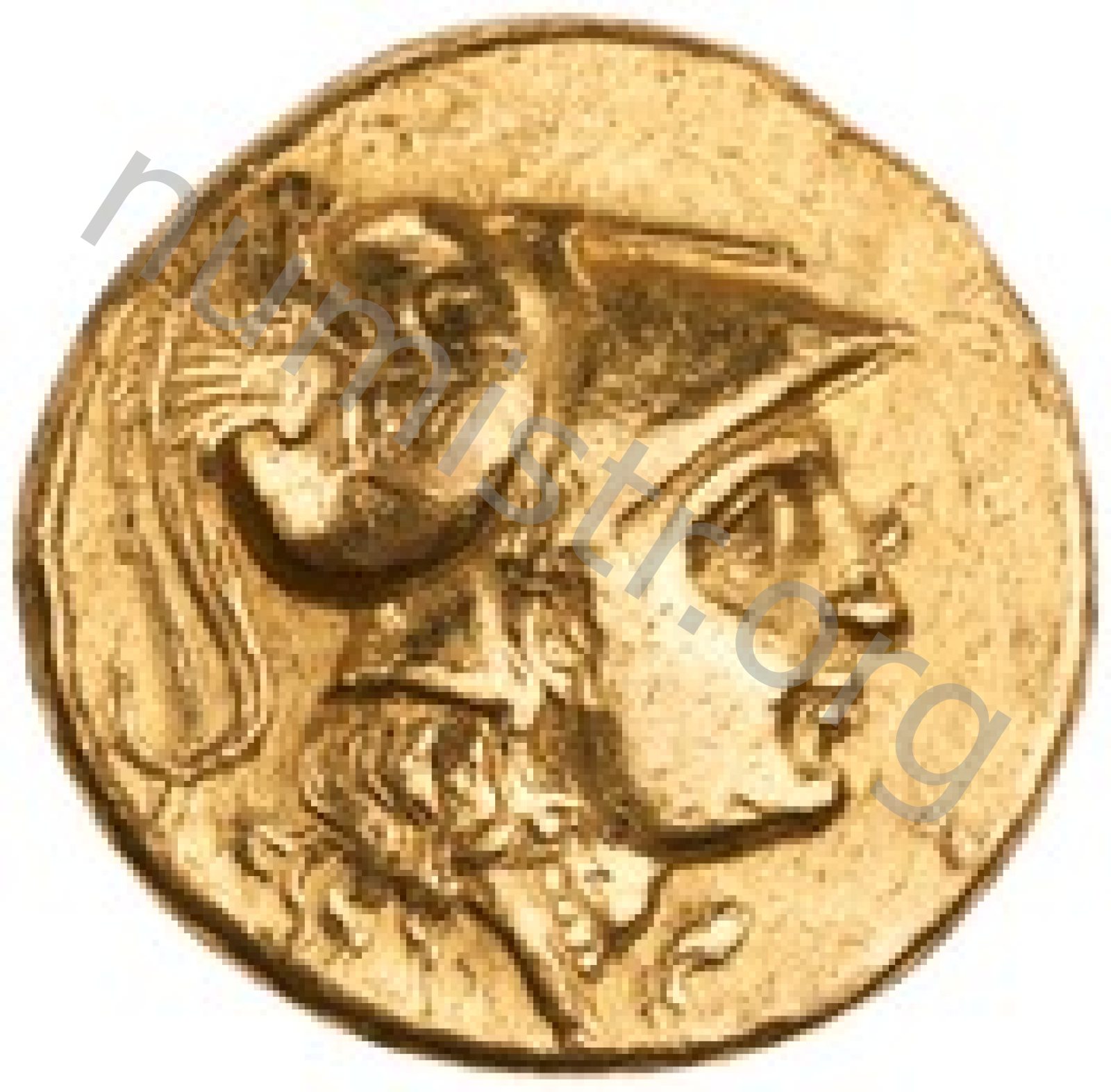 Sağda armalı Korint miğferi takan Athena başı