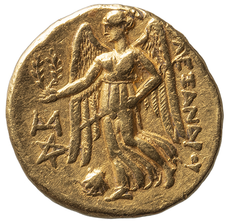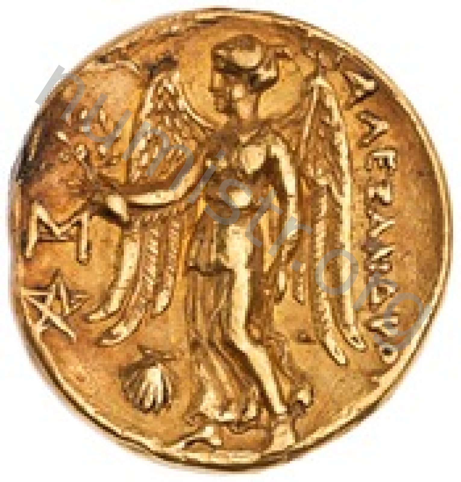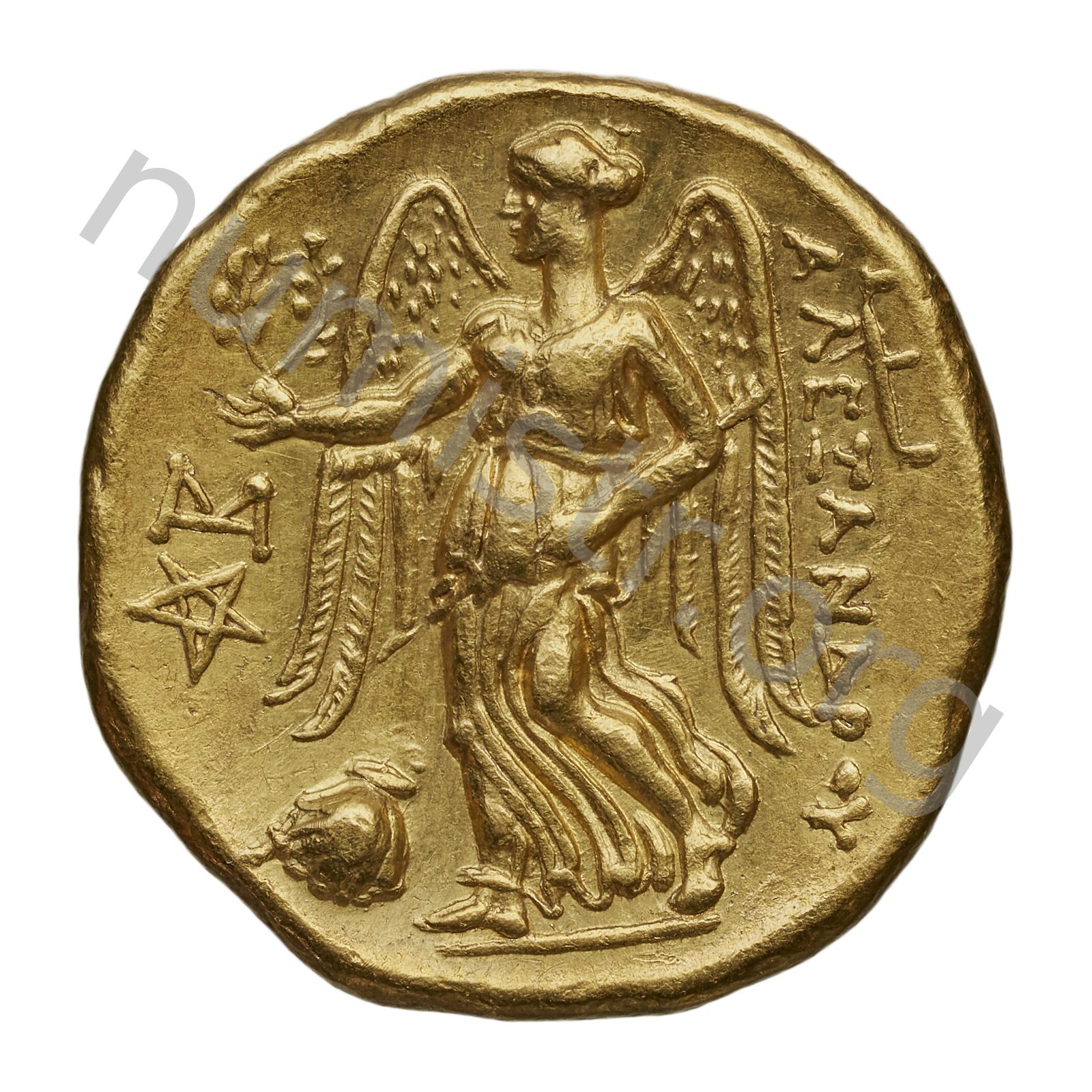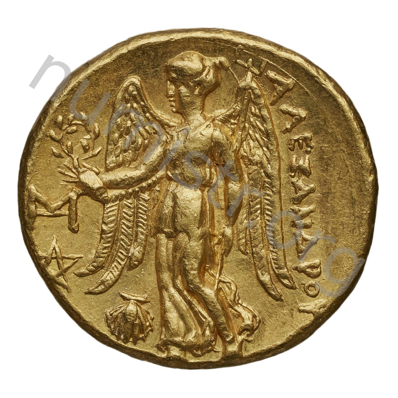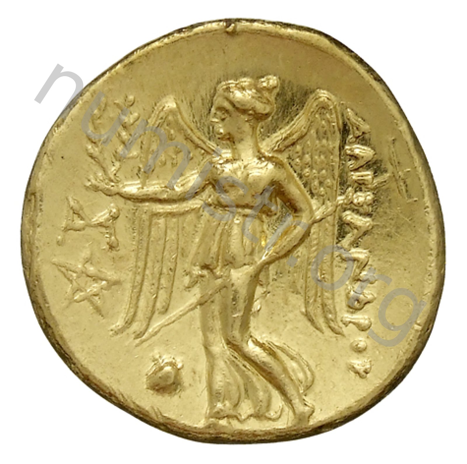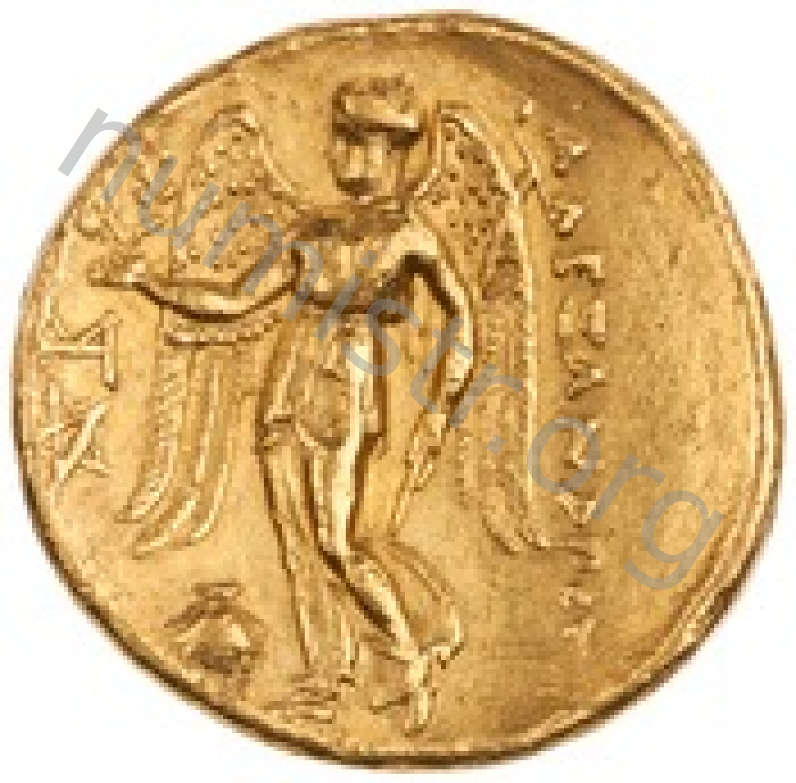Nike standing left holding wreath in right hand and stylis in her left hand -[en]