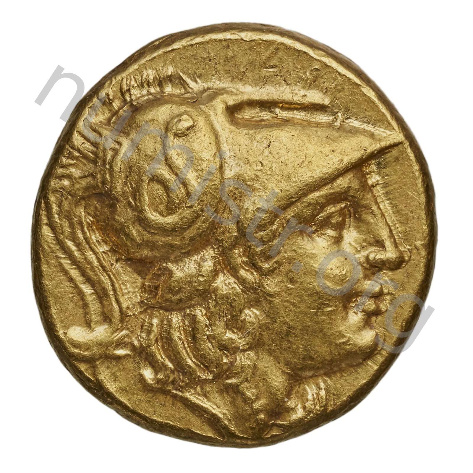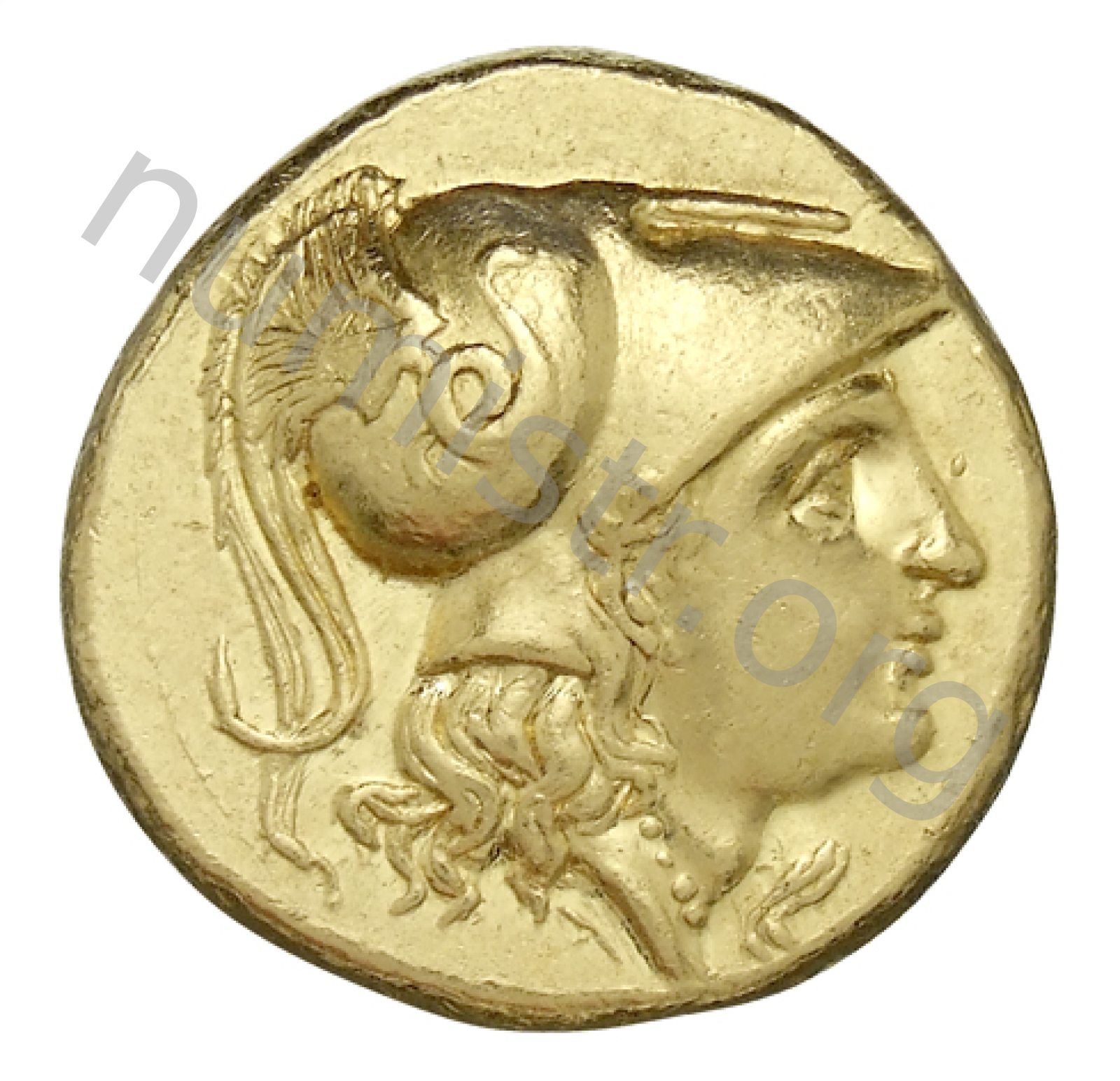 Head of Athena right wearing Corinthian helmet with crest -[en]