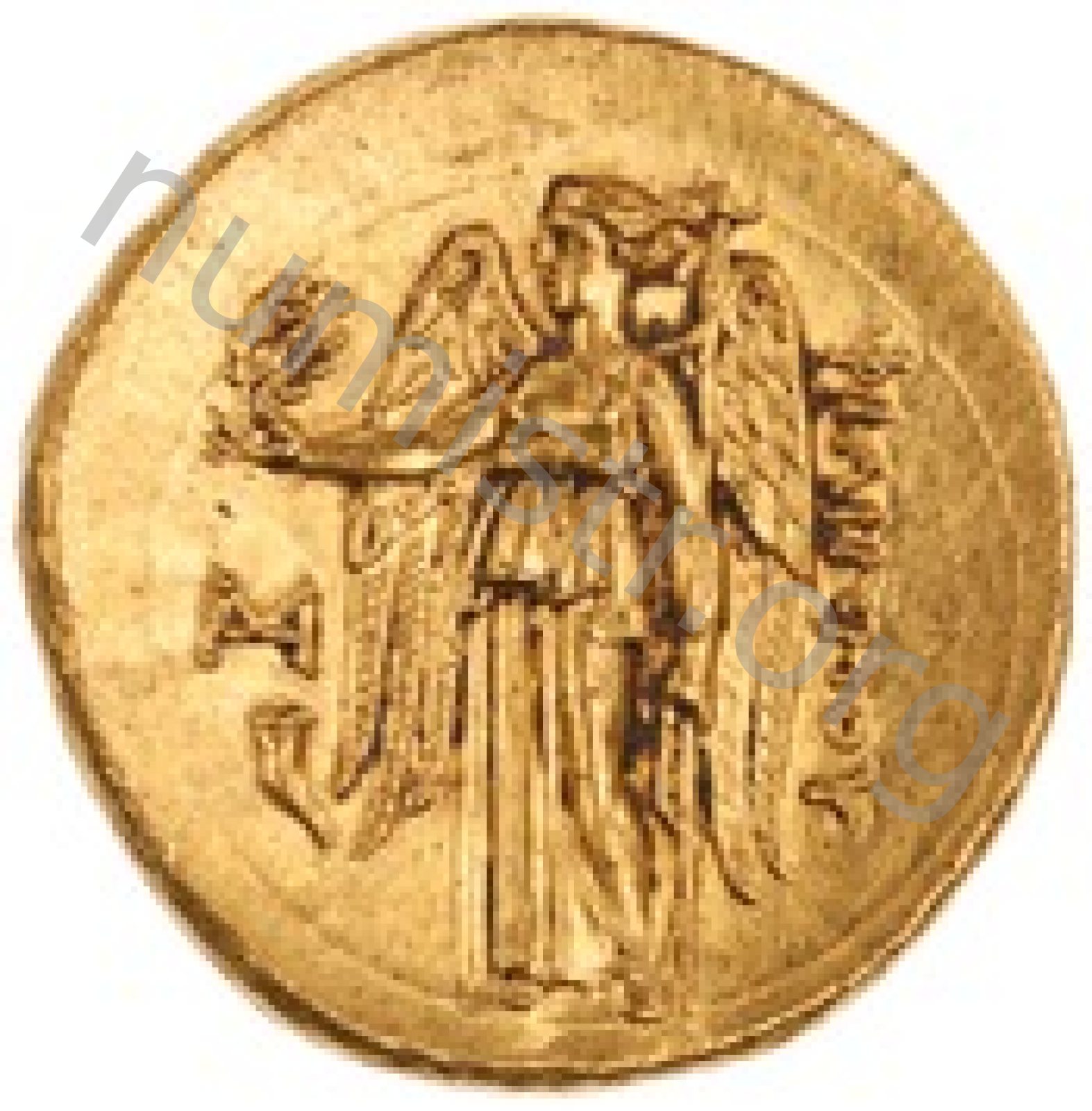 Nike standing left holding wreath in right hand and stylis in her left hand -[en]